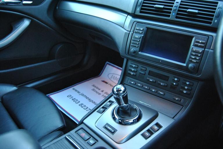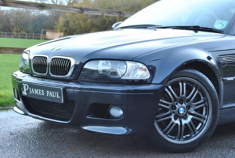 Stunning 2003 E46 M3 SMG Coupe finished in Carbon Black with Black Leather Sport Seats. 1 Owner from new covering only 65.000 miles along with a comprehensive service history. Dynamic stability control Multifunction function steering wheel Alarm system Windscreen, green-tinted upper strip Warning triangle and first aid kit Interior mirror with automatic-dip Seat adjustment, electric, with memory Armrest front Backrest width adjustment for driver and front passenger Seat heating driver/passenger Headlight cleaning system Park Distance Control (PDC) Fog lights Rain sensor Xenon Light Automatic air conditioning On-board computer TV function Navigation system Professional Hi-Fi system Harman Kardon Preparation, BMW 6-CD changer I-bus M Leather steering wheel Headlining anthracite White direction indicator lights Sequential M Gearbox Drive logic Great Britain/Ireland version Dummy-SALAPA Dealer List Europe This vehicle also benefits from our workshops recently carrying out a BMW Major Inspection II Service, 4 New Tyres, Professional Wheel Refurbishment, New Front Brake Discs and Pads, Interior Door Trim Replacement, Full Interior and Exterior Detail, Underside Vehicle Inspection, New BMW Wing Vents, New M Door Sill Plates, Front Bumper Repaint. A superb rare 1 owner example with low mileage which represents its self extremely well with very limited running expenses coming up any time soon with all the recent common items addressed. ULEZ COMPLIANT - NO CHARGE - PRE 2006 Lower car tax model. For all enquiries on this vehicle please call our showroom on 01403 823723 rather than emails. James Paul Car Sales is a family run business in a small village of Bucks Green conveniently situated on the Surrey and Sussex border. Established for over 35 years every car we offer is carefully hand selected and will come with a comprehensive provenance check. All of our vehicles are subject to a thorough pre delivery inspection through our workshops including a fresh MOT and service where required. Please ask us about our extremely competitive finance packages or Visit our website [Website URL removed] to create your own Finance Quote and Apply to help you fund your new car. Part exchanges welcome either way if you are looking to trade up or down. Please note that we do not accept reservations on cars via third party sites, if you wish to put a deposit on a car, please call 01403 823723 and speak to a member of the James Paul Car Sales team.. 18in Alloy Wheels - Light M Double Spoke - 219M Dark Graphite,18in M Double Spoke Style 67 Alloy Wheels,ABS - Anti Lock Braking System,ASC - Automatic Stability Control,Air Conditioning - Automatic - Dual Zone,Airbags - Driver,Airbags - Driver and Front Passenger Side,Airbags - Passenger,Alarm System Thatcham 1 with Remote Control,Armrest - Front Centre,Automatically Dimming Rear View Mirror,Auxiliary Input,BMW Business RDS Radio cassette,BMW Business Radio with single CD player,BMWIndividual door inserts,Bmw Business Radio & single CD player with mp3 decoder,CBC - Cornering Brake Control,CD Changer Preparation,Check Control Warning System,Child Seat ISOFIX Attachment - Front and Rear,Chrome door sill trims,Cruise Control,Cup Holders - Front,DSC - Dynamic Stability Control - Stabilises the Vehicle in Extreme Situations - Controls Traction,DeleteIndividual door sills,Door Mirrors - Electrically Adjustable,Door Mirrors - Heated,EBD - Electronic Brake-Force Distribution,Electric Windows - Front and Rear with Open-Close Fingertip Control,Extended Lighting,Exterior Trim - Matt Black,Floor Mats - Velour,Headlining - Anthracite,High gloss Black Interior,High gloss trim & - Upholstery restrictions,Hill Start Assist,M Aerodynamic Bodystyling,M Drive Manager with Individual Vehicle Set Up Options,M Mobility Tyre Sealing System,M Servotronic Power Steering,M Sports Seats - Front - Electric Adjustment - Memory,M style Rear view mirror,Navigation System - BMW Professional Multimedia,No Rear spoiler,No model inscription,No smoker Package,Non Smokers Pack,OBC - On-Board Computer,On board computer,PDC - Park Distance Control - Rear,Rear Seat Easy Access System,Rear centre armrest,Smokers Package,Smokers kit,Steering Column with Manual Reach and Rake Adjustment,Steering Wheel - M Leather Multifunction,TPWS - Tyre Pressure Warning System,Titanium shadow Interior Trim,Trim - Titanium Shadow,Xenon Headlights,Armrest - Front with Sliding Adjustment,BMW Business RDS & CD,Carbon Black,Front centre armrest,Graduated tinted windscreen,Graduated tinted windscreen with Green stripe,Harman Kardon hi- fi Speaker System,Heated Front Seats,Leather- Nappa- Black,On board monitor with TV,PDC - Park Distance Control - Front and Rear,SatNav Professional,Seats - Front Heated,Speaker System - Harman Kardon,TV Function,Tracker- Horizon