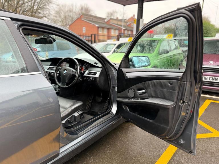 Basford Motors LTD delighted to offer this stunning BMW 5 Series 3.0 525d SE Steptronic Euro 4 4dr The BMW 5 Series 525d SE is a 2007 model that boasts a 3.0L Diesel Engine, providing a reliable and efficient driving experience. With a full service history, you can have confidence in the vehicle's maintenance and upkeep. The car has had only two owners and has been well cared for, with the last service completed just last year at 194,278 miles. The vehicle's history check is clear, and the MOT is valid until February 2027. This SE trim model comes equipped with a range of desirable features, including an Electric Tilt&Slide Glass Sunroof, Heated Front Seats, and a SatNav Business system. The interior is finished in Leather-Dakota-Black, adding a touch of sophistication to the cabin.This BMW 5 Series 525d SE is a great option for those looking for a reliable and efficient vehicle. Its impressive fuel economy of up to 44 mpg makes it an attractive choice for those who want to save on fuel costs. The large boot space is also a major advantage, making it perfect for families or those who need to transport bulky items. Additionally, the low CO2 emissions make it a more environmentally friendly option. With its low insurance group, you can also enjoy lower premiums. Overall, this 2007 BMW 5 Series 525d SE is a great value for money, offering a perfect blend of performance, efficiency, and practicality.