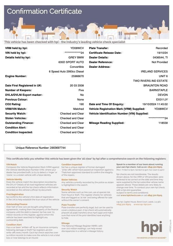 Buy the full report for guaranteed data accuracy, outstanding finance, valuation, milage check & VIN match for £9.99 (normally £19.99)