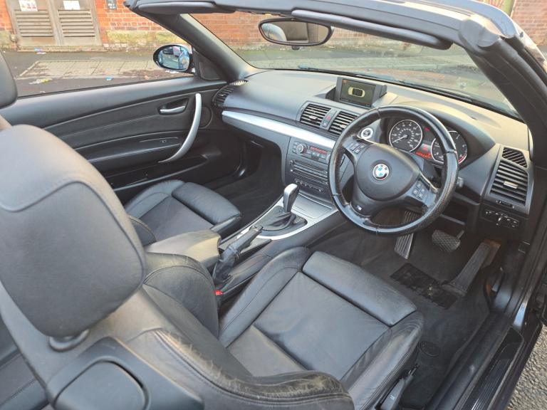 Here At Birks Motors Ltd We Offer You For sale is a 2008 BMW 1 Series 2.0 120d M Sport Convertible with a Diesel engine and an automatic Step tronic Euro 4 transmission. This stylish 2-door convertible has a mileage of 110000 and comes with an MOT that doesn't expire until 17/02/2026. With 4 seats, this car offers both practicality and luxury, allowing for a comfortable and enjoyable driving experience. The powerful 177 ps engine delivers a dynamic and responsive performance, making it a great choice for those who love driving. Its sleek and sporty design, coupled with its convertible feature, makes it a perfect choice for those who want to enjoy the open road. Don't miss the chance to own this impressive, I have driven this vehicle myself and she runs like an absolute gem very smooth and pulls in each gear with no unwanted knocks or bangs !!! This vehicle is equipped with , AC, remote central locking system ,FM/AM/ Aux , Bluetooth , Multimedia, sat nav , Black Leather interior, heated front , electric seats ,Climate Control, Electric Windows ,iso fix ,trip computerised and reliable vehicle. OPEN 6 DAYS - APPOINTMENT BASE ONLY SO PLEASE CALL US IN ADVANCE AND WE WILL DO OUR BEST TO BE AS FLEXIBLE AS POSSIBLE AROUND YOUR ARRANGEMENTS. HAPPY TO ACCOMODATE A VIDEO CALL IF YOU WANTED TO VIEW THE VEHICLE PRIOR TO MAKING AN APPOINTMENT. WE PRIDE OURSELVES ON QUALITY CUSTOMER CARE SO PLEASE CONTACT US Tel