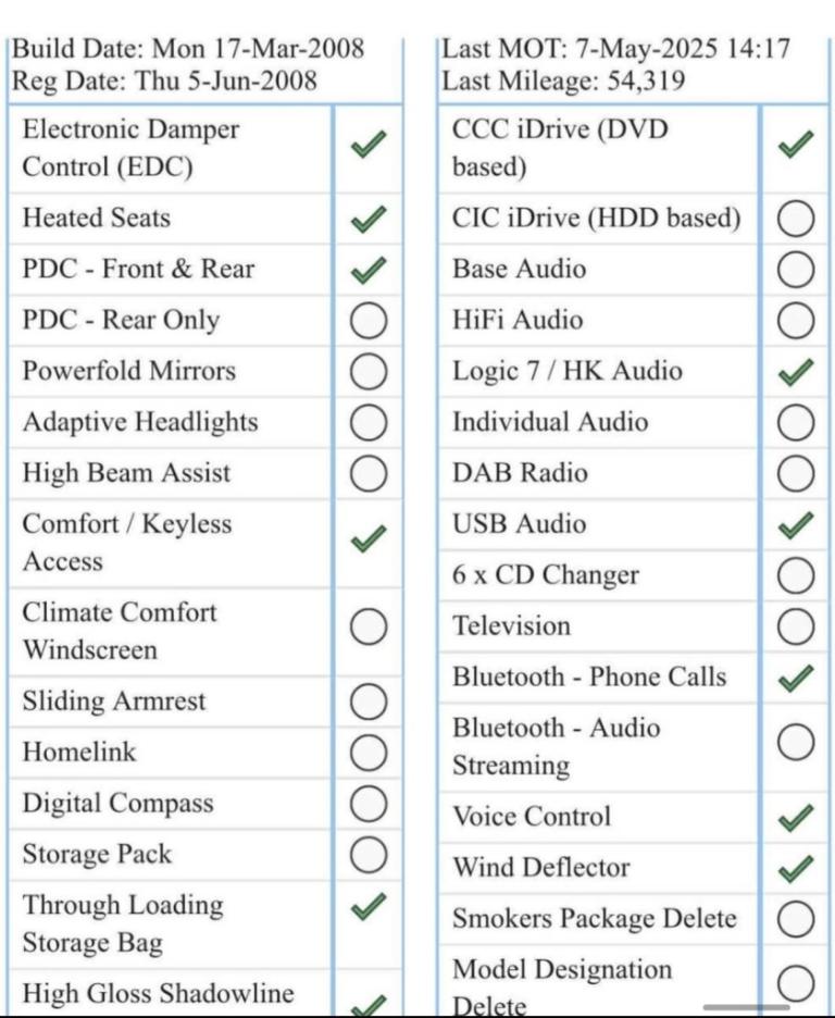 59000 miles. JUST IN PRE PREP OFFER PRICE PX SWAP PART EXCHANGE EX 2008 BMW M3 · Convertible · Driven 59,000 kilometres beautiful low mileage E93 BMW M3. The car has a great spec (below) and is a dream to drive. With zero faults and great condition with full service history, this is sure to be a great car for many years to come; and one that will most likely never lose any value going forward. Spec: Heated seats Pro nav Logic 7 surround sound (was then rebranded to Harmon Kardon in LCI models) Front and Rear sensors Comfort access Apple car play EDC (Adaptive suspension) 7-speed DCT Strom 359m Competition Wheels Modstock 2-Pipe exhaust (sounds incredible whilst still being liveable, no drone etc) Cruise control, Navigation system, PAS, Rear parking sensor, Reverse parking aid, Service indicator, Steering wheel mounted controls, Trip computer, Air conditioning, Audio remote control, Auxiliary input socket, Electrically adjustable drivers seat, Electrically adjustable passenger seat, Folding rear seats, Front armrest, Front electric windows, Front head restraints, Height adjustable drivers seat, Lumbar support, Radio/CD, Rear headrests, Sports seats, Steering wheel rake adjustment, Steering wheel reach adjustment, Body coloured bumpers, Electric door mirrors, Headlight washers, Heated door mirrors, Sport suspension, Windscreen wash-nozzle heated, Xenon headlights, 3x3 point rear seat belts, ABS, Curtain airbags, Drivers airbag, ESP, Isofix child seat anchor points, Passenger airbag, Rear airbags, Side airbags, Traction control, Tyre pressure monitor, Alarm, Immobiliser, Remote central locking, Leather seat trim, Metallic Paint, Solid Paint, Alloy wheels, Tyre repair kit.