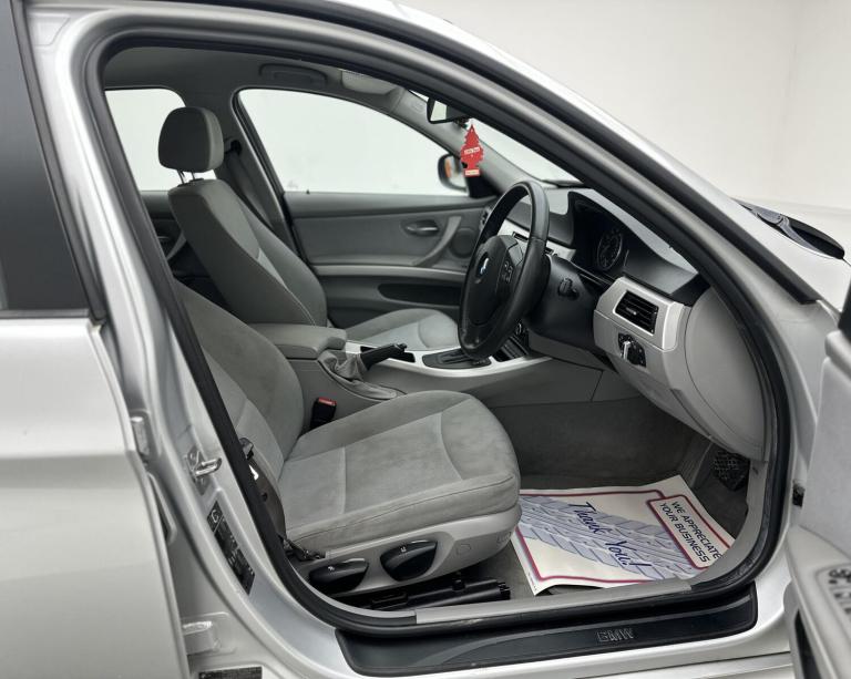 The 2009 BMW 3 Series 320i SE Saloon is a part of the sixth generation of the BMW 3 Series, which was produced from 2005 to 2012. The 320i SE is a petrol-powered version of the saloon, offering a combination of sporty performance, comfort, and luxury features typical of BMW. Here are some key details about the 2009 BMW 3 Series 320i SE Saloon: Engine and Performance: Engine: 2.0-liter 4-cylinder petrol engine Power Output: Around 154 horsepower (115 kW) Transmission: 6-speed Steptronic automatic transmission Performance: The 320i accelerates from 0-60 mph in about 8.4 seconds. Fuel Economy: Typically, it offers around 30-35 mpg, depending on driving conditions. CO2 Emissions: Around 180-190 g/km, which means it complies with Euro 4 emissions standards. Design and Features: Body Style: 4-door saloon Interior: Luxurious leather upholstery, automatic climate control, and a high-quality sound system. The SE trim level offers a good balance of comfort and technology. Technology: It comes equipped with BMW's iDrive system, a high-definition navigation system, and Bluetooth connectivity. Wheels: 16-inch alloy wheels standard for the SE trim. Safety: Features include multiple airbags, anti-lock braking system (ABS), electronic stability control (ESC), and traction control. Handling: Suspension: The 320i is known for its precise handling and smooth driving experience, with rear-wheel drive providing excellent road feedback and balance. Driving Experience: It combines comfort with sportiness, providing a dynamic driving experience, especially on highways or twisty roads.
