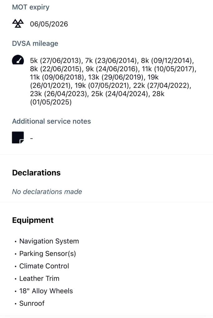 Our vehicle history check is provided for guidance only. Please check all the details with the seller before purchasing