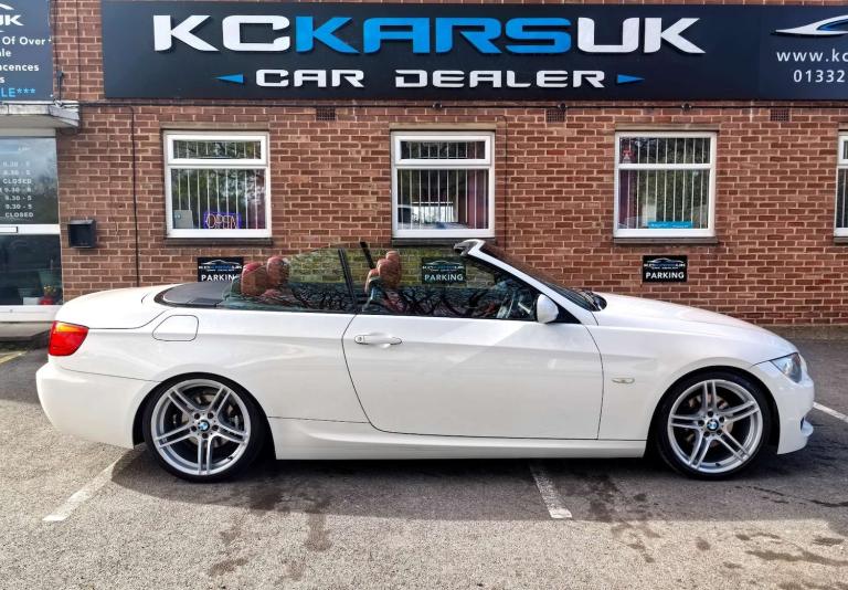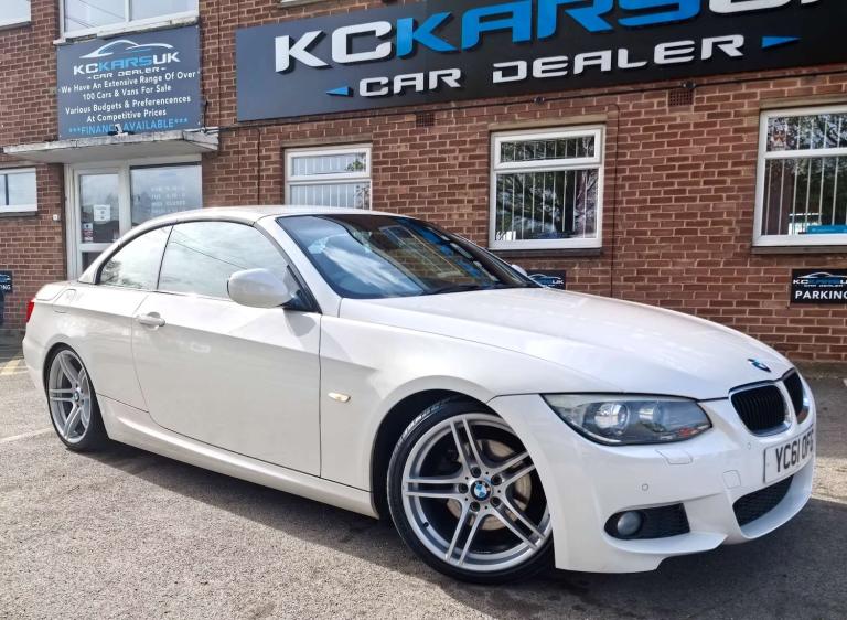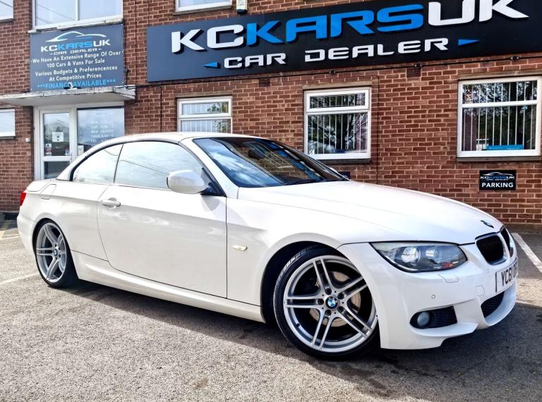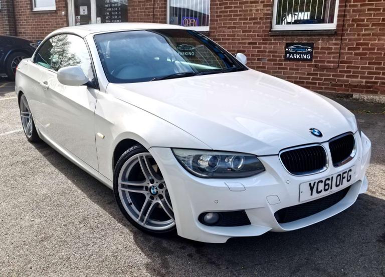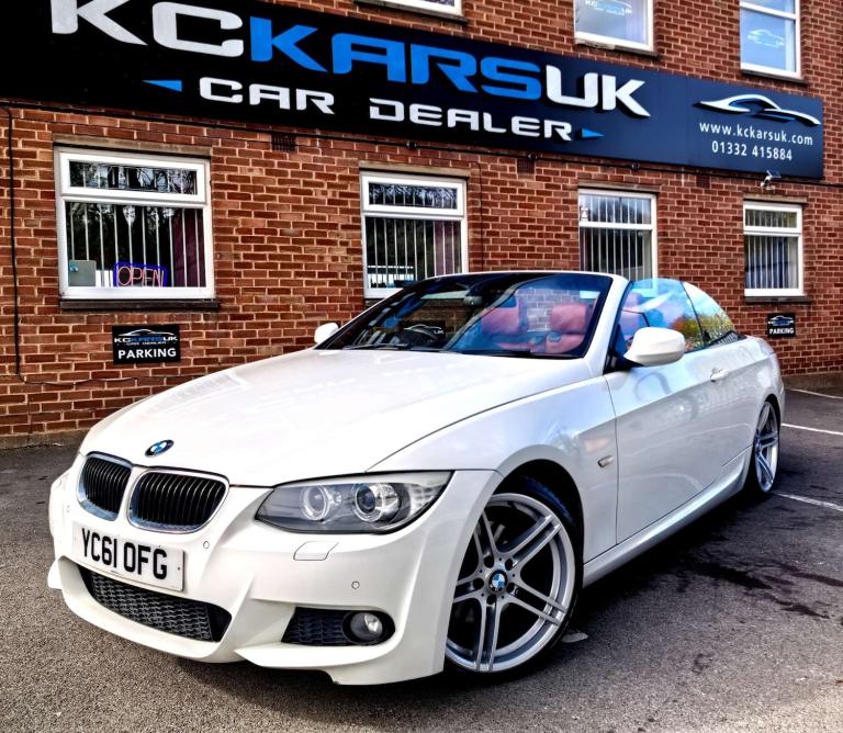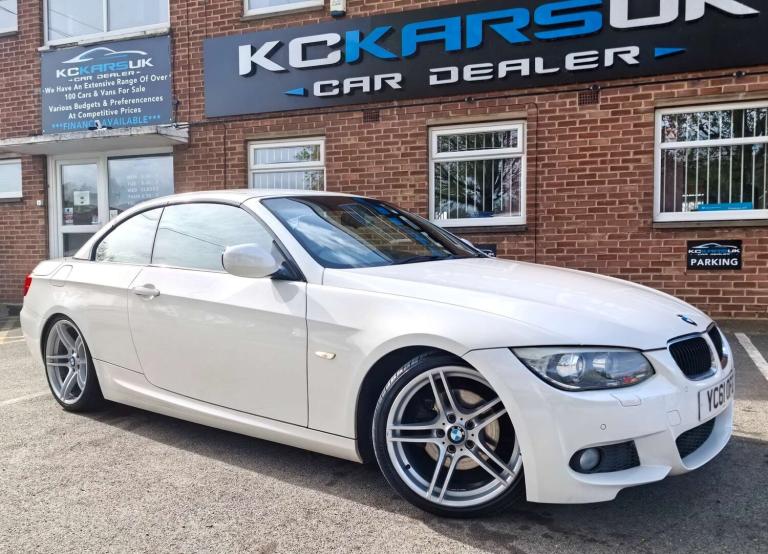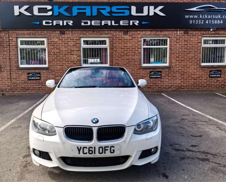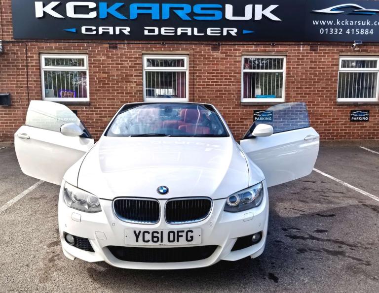 ****For more details, including 'walk around videos' of our vehicles visit our website KC KARS UK*******ALPINE WHITE - 2.0 DIESEL ENGINE (181 BHP) – POWERFUL AND EFFICIENT - CONVERTIBLE – OPEN-TOP DRIVING - MANUAL TRANSMISSION - M SPORT TRIM – SPORTY STYLING - SERVICE HISTORY (8 SERVICES, 5 MAIN DEALER) - RED LEATHER INTERIOR - CLIMATE CONTROL - INFOTAINMENT SYSTEM - BLUETOOTH CONNECTIVITY - CRUISE CONTROL - PARKING SENSORS - ALLOY WHEELS – M SPORT STYLING - ELECTRIC WINDOWS & MIRRORS - ISOFIX CHILD SEAT MOUNTS - SPLIT-FOLDING REAR SEATS - COMPETITIVE PRICE - GOOD CONDITION – MANUAL – MOT UNTIL MAY 2026 - SUPPLIED WITH A 12-MONTH MOT – SERVICE HISTORY WITH 8 SERVICES (5 MAIN DEALER) – INCLUDES UP-TO-DATE OIL & FILTER CHANGE SERVICE – LOW MILEAGE FOR AGE – ROAD TAX JUST £200 PER YEAR – 2 KEYS – 3-MONTH 'BACK TO BASE' WARRANTY – FINANCE OPTIONS AVAILABLE! WE WORK WITH FINANCE COMPANIES TO ASSIST CUSTOMERS WITH CREDIT SCORES FROM EXCELLENT TO POOR, OFFERING COMPETITIVE RATES – NATIONWIDE DELIVERY AVAILABLE - CONTACT US FOR A DELIVERY QUOTE***BMW 3 Series 2.0 320d M Sport Convertible 2dr – YC61 OFGEngine: 2.0 Diesel (181 bhp) Transmission: ManualDoors: 2 Body Style: Convertible Seating: 4Convertible • Red Leather • Service History (8 Services, 5 Main Dealer)This BMW 320d M Sport Convertible is a stylish and sporty premium car, offering the perfect blend of performance, efficiency, and open-top driving. Finished in Alpine White with striking red leather interior, it delivers both visual impact and driving enjoyment.Powered by the 2.0 diesel engine producing 181 bhp, it offers strong performance while remaining economical. The manual gearbox provides an engaging driving experience, making it ideal for those who enjoy being behind the wheel.With service history consisting of 8 services, including 5 main dealer, this vehicle has been well maintained. The standout red leather interior adds a premium and sporty feel to the cabin.Feel the power of the road with 19in Alloy Wheels - Light M Double Spoke - 313M, while turning heads with the Alpine White exterior. The interior boasts Dakota Leather in Coral Red, adding a touch of sophistication to your ride.Stay connected on the go with BMW Assist and BMW Assist Online Portal, as well as Enhanced Bluetooth Hands-Free Functionality and USB Audio Interface. The Media Package - BMW Professional Multimedia and Navigation System ensure you never lose your way.Parking is a breeze with PDC - Park Distance Control - Front and Rear, while the Rain Sensor with Automatic Headlight Activation keeps you safe in all weather conditions. Enjoy the comfort of heated front seats and Servotronic Steering for a smooth ride.Don't miss out on the opportunity to own this exceptional BMW 3 Series. Contact us today to schedule a test drive and experience luxury like never before. A stylish and sporty coupe with strong diesel performance and eye-catching specification.For more details, including 'walk around videos' of our vehicles visit our website KC KARS UK.Drives superbly and ready to drive away.