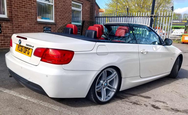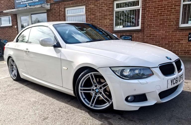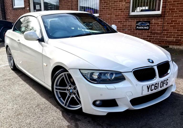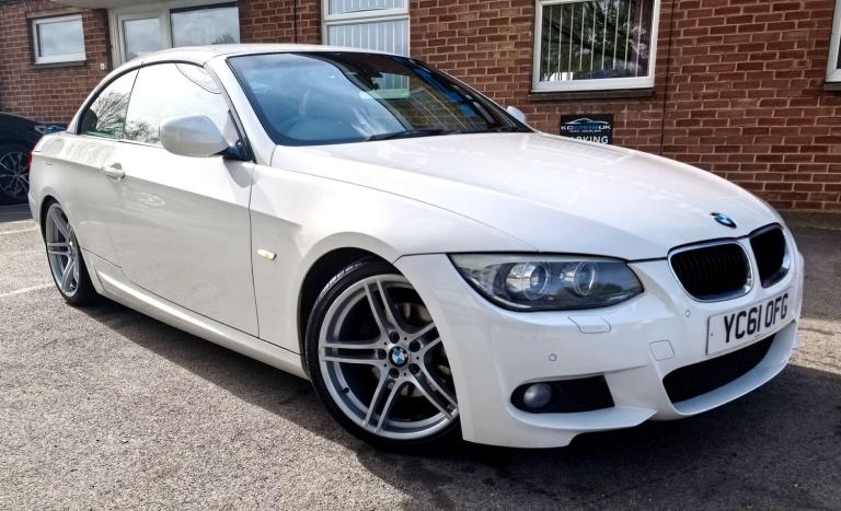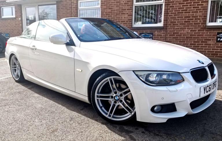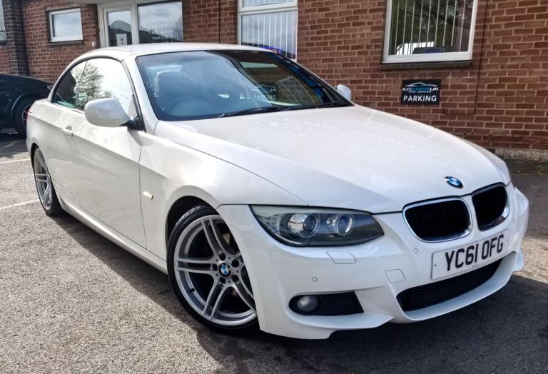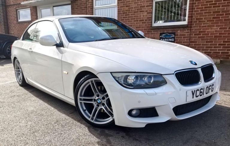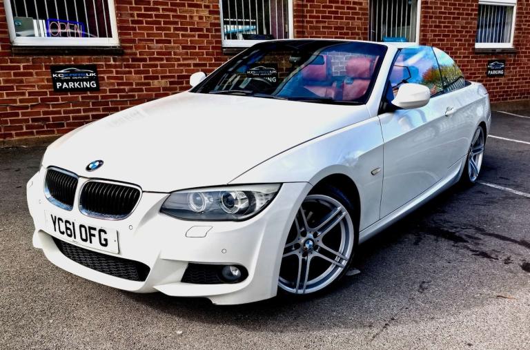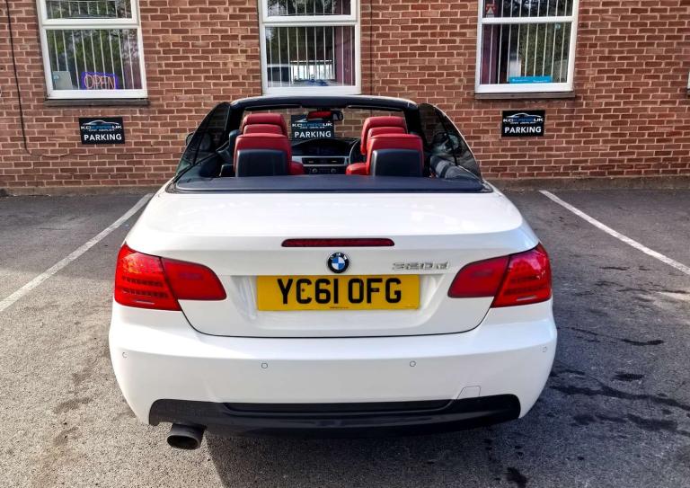 ****For more details, including 'walk around videos' of our vehicles visit our website KC KARS UK*******ALPINE WHITE - 2.0 DIESEL ENGINE (181 BHP) – POWERFUL AND EFFICIENT - CONVERTIBLE – OPEN-TOP DRIVING - MANUAL TRANSMISSION - M SPORT TRIM – SPORTY STYLING - SERVICE HISTORY (8 SERVICES, 5 MAIN DEALER) - RED LEATHER INTERIOR - CLIMATE CONTROL - INFOTAINMENT SYSTEM - BLUETOOTH CONNECTIVITY - CRUISE CONTROL - PARKING SENSORS - ALLOY WHEELS – M SPORT STYLING - ELECTRIC WINDOWS & MIRRORS - ISOFIX CHILD SEAT MOUNTS - SPLIT-FOLDING REAR SEATS - COMPETITIVE PRICE - GOOD CONDITION – MANUAL – MOT UNTIL MAY 2026 - SUPPLIED WITH A 12-MONTH MOT – SERVICE HISTORY WITH 8 SERVICES (5 MAIN DEALER) – INCLUDES UP-TO-DATE OIL & FILTER CHANGE SERVICE – LOW MILEAGE FOR AGE – ROAD TAX JUST £200 PER YEAR – 2 KEYS – 3-MONTH 'BACK TO BASE' WARRANTY – FINANCE OPTIONS AVAILABLE! WE WORK WITH FINANCE COMPANIES TO ASSIST CUSTOMERS WITH CREDIT SCORES FROM EXCELLENT TO POOR, OFFERING COMPETITIVE RATES – NATIONWIDE DELIVERY AVAILABLE - CONTACT US FOR A DELIVERY QUOTE***BMW 3 Series 2.0 320d M Sport Convertible 2dr – YC61 OFGEngine: 2.0 Diesel (181 bhp) Transmission: ManualDoors: 2 Body Style: Convertible Seating: 4Convertible • Red Leather • Service History (8 Services, 5 Main Dealer)This BMW 320d M Sport Convertible is a stylish and sporty premium car, offering the perfect blend of performance, efficiency, and open-top driving. Finished in Alpine White with striking red leather interior, it delivers both visual impact and driving enjoyment.Powered by the 2.0 diesel engine producing 181 bhp, it offers strong performance while remaining economical. The manual gearbox provides an engaging driving experience, making it ideal for those who enjoy being behind the wheel.With service history consisting of 8 services, including 5 main dealer, this vehicle has been well maintained. The standout red leather interior adds a premium and sporty feel to the cabin.Feel the power of the road with 19in Alloy Wheels - Light M Double Spoke - 313M, while turning heads with the Alpine White exterior. The interior boasts Dakota Leather in Coral Red, adding a touch of sophistication to your ride.Stay connected on the go with BMW Assist and BMW Assist Online Portal, as well as Enhanced Bluetooth Hands-Free Functionality and USB Audio Interface. The Media Package - BMW Professional Multimedia and Navigation System ensure you never lose your way.Parking is a breeze with PDC - Park Distance Control - Front and Rear, while the Rain Sensor with Automatic Headlight Activation keeps you safe in all weather conditions. Enjoy the comfort of heated front seats and Servotronic Steering for a smooth ride.Don't miss out on the opportunity to own this exceptional BMW 3 Series. Contact us today to schedule a test drive and experience luxury like never before. A stylish and sporty coupe with strong diesel performance and eye-catching specification.For more details, including 'walk around videos' of our vehicles visit our website KC KARS UK.Drives superbly and ready to drive away.