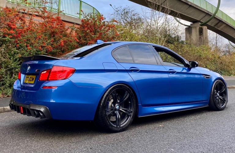 FOR SALE BMW M5 F10 THIS IS A VERY CLEAN & IMMACULATE BMW M5 WITH VERY LOW MILEAGE ON IT + ALSO COMES IN WITH FULL SERVICE HISTORY + RUNNING IN SERVICE + FULLY HPI CLEAR + HAS A STAGE 2 REMAP RUNNING 720BHP WITH DOWN PIPES TUNNED BY THE 1 & ONLY VELOCITY TUNING BEST IN THE GAME + CUSTOM EXHUST SYSTEM + SOUNDS EPIC POPS & BANGS NOT TO LOUD + FULL UNIQUE STYING WHICH INCLUDE FRONT 3D CARBON SPLITTER + 3D CARBON SIDE SKIRTS + CARBON F1 REAR DIFFUSER + CARBON REAR BOOT LIP + PRIVACY GLASS + UNMARKED SATIN BLACK WHEELS + WHEEL SPACERS TO GIVE IT THE PERFECT STANCE & BALANCING + AC SCHNITZER LOWING KIT ON THERES TO MUCH TO LIST NO TIME WASTERS PLZ THANK YOU