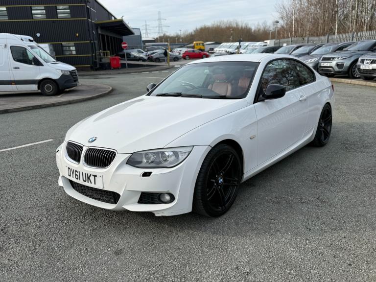 2012 61 reg BMW 318i Sport Plus Edition Coupe finished in white with 98,000 miles. Powered by the 2.0 petrol engine (1995cc) with a 6-speed manual gearbox, delivering engaging performance with the classic BMW rear wheel drive setup. Euro 5 compliant. This Sport Plus Edition model comes with desirable factory specification and M Sport styling details, including 19 inch Light M Double Spoke 313M alloy wheels, M Aerodynamic body styling, M rear spoiler and High Gloss Shadowline exterior trim, giving it a sharp and sporty appearance. Inside, the cabin features sport front seats with part electric adjustment, dual zone automatic climate control, anthracite headlining and Dark Aluminium Glacier Silver interior trim. The sport leather multifunction 3-spoke steering wheel and extended lighting package add to the premium feel, while the 60/40 split folding rear seats provide added practicality. Technology includes BMW Business Navigation with 6.5 inch colour display and iDrive controller, BMW Professional radio with CD and MP3, USB audio interface, auxiliary input and enhanced Bluetooth telephone functionality. It also benefits from cruise control, rear Park Distance Control, on board computer and voice control. Safety features include ABS, DSC, DTC, multiple airbags including curtain airbags, ISOFIX child seat preparation, tyre pressure warning system and Thatcham Category 1 alarm with remote central locking. A well maintained and well specified Sport Plus Edition coupe offering sporty driving dynamics, strong value and everyday usability.