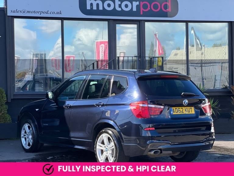 Now available at Motorpod in Newport, South Wales, this powerful and stylish BMW X3 2.0 20d M Sport xDrive Auto delivers the perfect combination of dynamic performance, luxury comfort, and all-weather capability. Equipped with a refined 2.0-litre diesel engine producing 184 PS, paired with a slick automatic gearbox and xDrive all-wheel drive, this Euro 5 (s/s) model offers strong performance, confident handling, and excellent long-distance efficiency. Finished in the highly desirable M Sport trim, this X3 features aggressive body styling, upgraded M Sport alloy wheels, and distinctive design details that enhance its premium SUV presence. Inside, the cabin is equally impressive, with M Sport interior styling, high-quality materials, and a driver-focused layout that offers comfort and practicality in equal measure. This model comes equipped with a host of premium features including dual-zone climate control, Bluetooth connectivity, cruise control, front and rear parking sensors, automatic headlights and wipers, and BMWs intuitive iDrive infotainment system. With its raised driving position, spacious interior, and responsive powertrain, the BMW X3 M Sport is ideal for those who want a versatile family SUV without compromising on driving enjoyment or premium appeal. Visit Motorpod in Newport, South Wales today to arrange your viewing or test drive. Finance options available, and part exchange welcome. At Motorpod we pride ourselves in acquiring outstanding examples directly from their owners and NOT from auctions - We happily take part exchange and offer all our customers a competitive value on their cars, we provide finance packages that cater to all circumstances and budgets (including low credit rating). Every vehicle is fully HPI checked, inspected by our fully certified technicians, serviced and MOTd. We also supply a 3 Month nationwide warranty with all our vehicles. for further info give us a call on 01633 548700 (£99 ADMIN FEE APPLIED ON ALL VEHICLE ON PURCHASE).12V Power Socket - Centre Console, 12V Power Socket - Luggage Compartment, 18in Alloy Wheels - Light M Star Spoke - 368M, ABS - Anti Lock Braking System, ASC - Automatic Stability Control, Additional Detachable Cupholder, Air Conditioning - Automatic with Two-Zone Control, Airbags - Driver, Airbags - Driver and Front Passenger Side, Airbags - First and Second Seat Row ITS Head, Airbags - Passenger, Airbags - Passenger Deactivation, Alarm System Thatcham 1 with Remote Control, Ambient Interior Lighting, Anti Roll Bars - Front and Rear, Armrest - Front with Storage Compartment, Armrest - Rear Centre, Automatically Dimming Rear View Mirror, Auxiliary Input, BMW Mobility System, BMW Online services, BMW Professional Radio - Single CD and MP3, BMW TeleServices, Bluetooth Hands Free with USB Audio Interface, Brake Force Display, Bumper - Regeneration to Original Shape - MPH Specific, CBC - Cornering Brake Control, Cathodic Dip Paintwork Preservation of Hollow Cavities Underfloor Protection, Central Locking - Doors Boot Fuel Cap via Remote Key, Child Proof Locking System - Rear Doors, Child Seat ISOFIX Attachment - Rear, Courtesy Lights - Front and Rear with Soft On-Off Dimming, Cruise Control with Brake Function, DAB Digital Radio, DBC - Dynamic Brake Control, DSC - Dynamic Stability Control - Stabilises the Vehicle in Extreme Situations - Controls Traction, DTC - Dynamic Traction Control, Deformation Zones - Front and Rear, Door Handles - Body Colour, Door Mirrors - Drivers Aspheric, Door Mirrors - Electric and Heated and Aspheric, Door Sill Finishers - M Designation, Drive Performance Control, EBD - Electronic Brake-Force Distribution, Electric Windows - Front and Rear with Open-Close Fingertip Control, Electro Mechanical Parking Brake, Engine Immobiliser, Enhanced Bluetooth Telephone Functionality with USB Audio Interface and Voice Control, Exhaust Tailpipe - Finisher in Chrome, Exterior Trim - High-Gloss Shadowline, First Aid Kit, Floor Mats - Velour, Follow Me Home Headlight Function, Footwell Lights - Front, Front Fog Lights, Glove Compartment - Illuminated, Grab Handles with Four Coat Hooks, HDC - Hill Descent Control, Head Restraints - Front and Rear, Head Restraints - Height and Angle, Headlights - Automatic Activation, Headlights - Height Adjustment, Headlights - Washer System, Headlining - Anthracite, Heated Windscreen Washer Jets, High Level Third Brake Light, Incorrect Fuelling Protection System, Interior Lighting, Interior Trim - Brushed Aluminium,