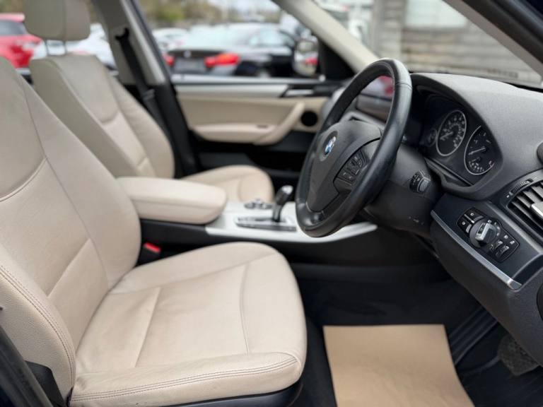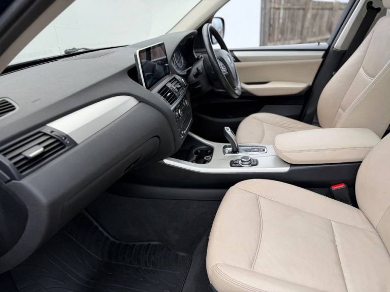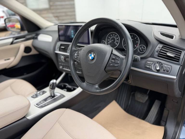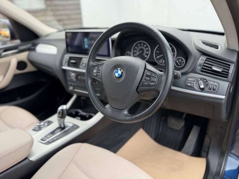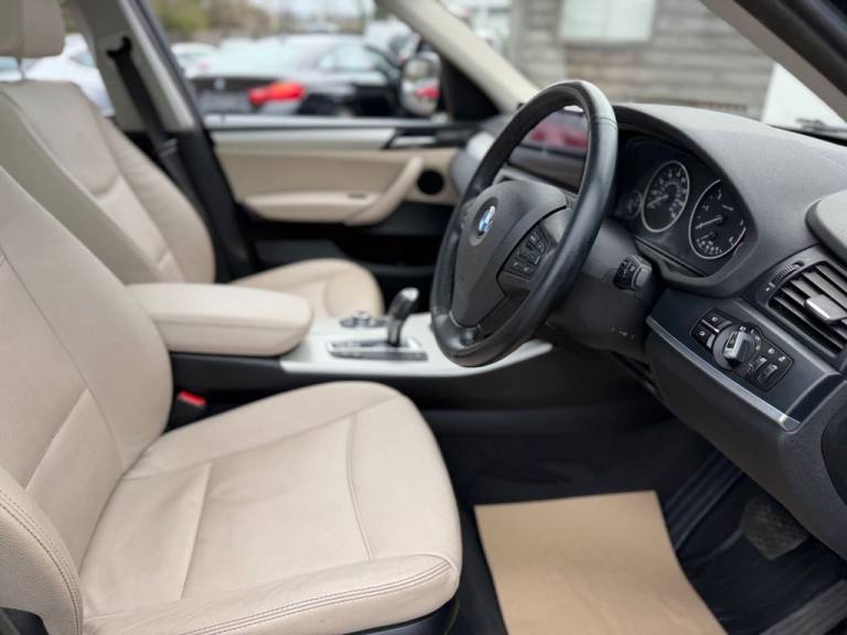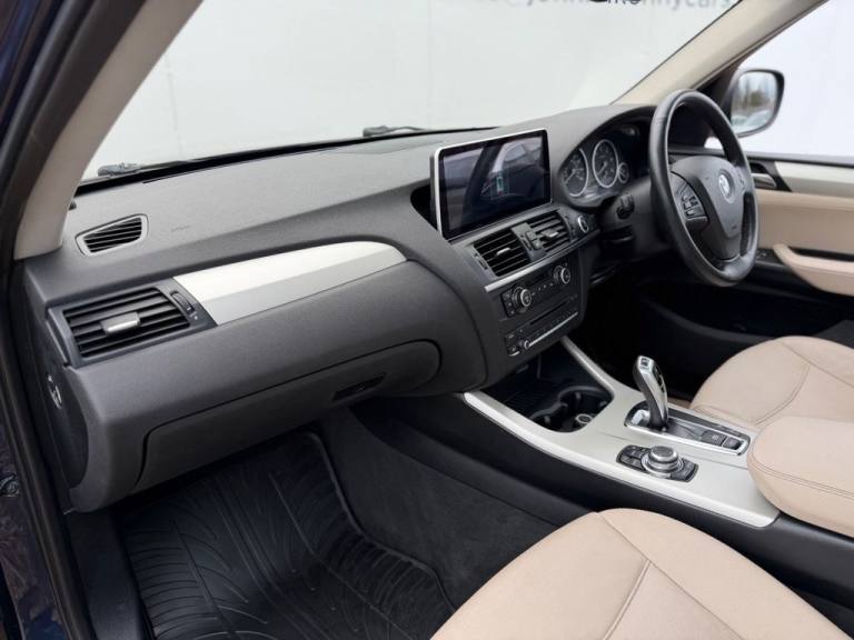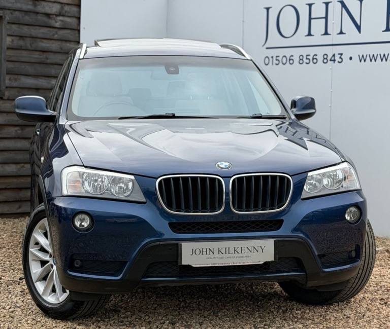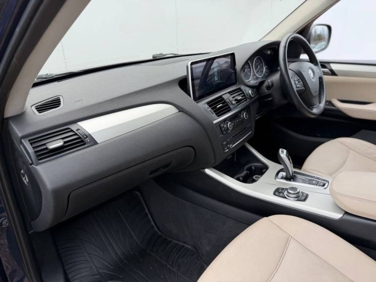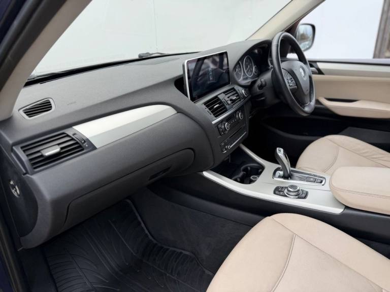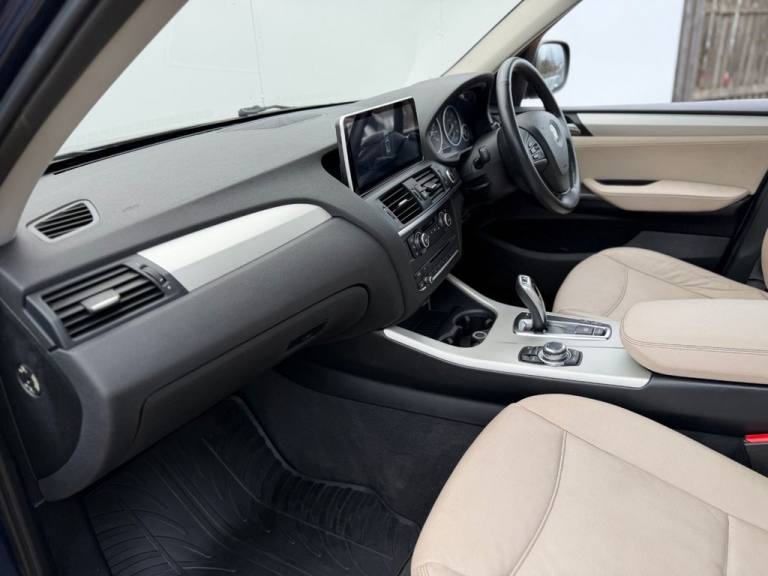 This 2012 BMW X3 20d SE boasts exceptionally low mileage for its age, having covered just 61,621 miles. This desirable four wheel drive model features a 2.0 litre diesel engine and comes with a clear vehicle history check and a 6 month warranty for your peace of mind. The SE trim includes a host of notable features such as a panoramic glass sunroof, a climate comfort package with climate control, a windscreen with a grey shade band, and parking distance control for both the front and rear. Experience impressive performance with a 0-62mph acceleration time of 8.5 seconds, all while achieving an excellent fuel economy of 50 mpg, which is better than many similar vehicles. This BMW X3 also offers low CO2 emissions and a large boot space, making it a practical choice. Furthermore, it provides a generous towing weight of 2400 kg and will be supplied with 12 months MOT for added reassurance. ALL CARS COME HPI CLEAR - CHECK OUT OUR FACEBOOK PAGE FOR REVIEWS & OFFERS.12V Power Socket - Front x2, 17in Alloy Wheels - Light V-Spoke - 304, 18in Alloy Wheels - Light V Spoke Style 307, ABS - Anti Lock Braking System, Air Conditioning - Automatic with Two-Zone Control, Airbags - Curtain, Airbags - Driver, Airbags - Driver and Front Passenger Side, Airbags - Passenger, Airbags - Passenger Deactivation, Alarm System Thatcham 1 with Remote Control, Anti Roll Bars - Front and Rear, Armrest - Front Centre, Automatically Dimming Rear View Mirror, Auxiliary Input, BMW Mobility System, BMW Online services, BMW Professional Radio - Single CD and MP3, BMW TeleServices, CBC - Cornering Brake Control, Central Locking - Doors Boot Fuel Cap via Remote Key, Child Seat ISOFIX Attachment - Rear x2, Climate Comfort Package, Climate Comfort Windscreen, Crash Sensor - Activating Central Locking Release, Cruise Control with Brake Function, Cup Holders - Centre Console, Deep Sea Blue, Deformation Zones - Front and Rear, Door Mirrors - Aspheric Electric Adjustment, Door Mirrors - Heated, DSC - Dynamic Stability Control - Stabilises the Vehicle in Extreme Situations - Controls Traction, EBD - Electronic Brake-Force Distribution, Electric Windows - Front and Rear with Open-Close Fingertip Control, Enhanced Bluetooth Telephone Functionality with USB Audio Interface and Voice Control, Extended Lighting, Exterior Trim - Black, Floor Mats - Velour, Front Fog Lights, Headlights - Automatic Activation, Headlights - Washer System, Heated Windscreen Washer Jets, iDrive Controller on Centre Console with 6.5in Colour Display, Incorrect Fuelling Protection System, Interior Trim - Satin Silver, Nevada Leather - Oyster, OBC - On-Board Computer, Panoramic Glass Sunroof, PDC - Park Distance Control - Front and Rear, PDC - Park Distance Control - Rear, Power Steering - Electric, Rain Sensor with Automatic Headlight Activation, Reading Lights - Front and Rear, Remote Audio Controls, Remote Control Locking, Reversing Assist Camera, Roof Rails - Matt Aluminium, Run Flat Tyres, Seats - 60-40 Split Folding Rear, Seats - Front - Manual Height Adjustment, Seats - Manual Adjustment for Height - Fore and Aft Position - Recline Angle, Side Impact Protection, Speaker System with Five Speakers, Steering Column with Manual Reach and Rake Adjustment, Steering Wheel - 3-Spoke Leather, Steering Wheel - Sport Leather Multifunction - 3 Spoke, Storage Compartment - Front Door Pockets, Storage Compartment - Trays in Centre Console, Sun Protection Glazing, Sun Visors with Illuminated Va