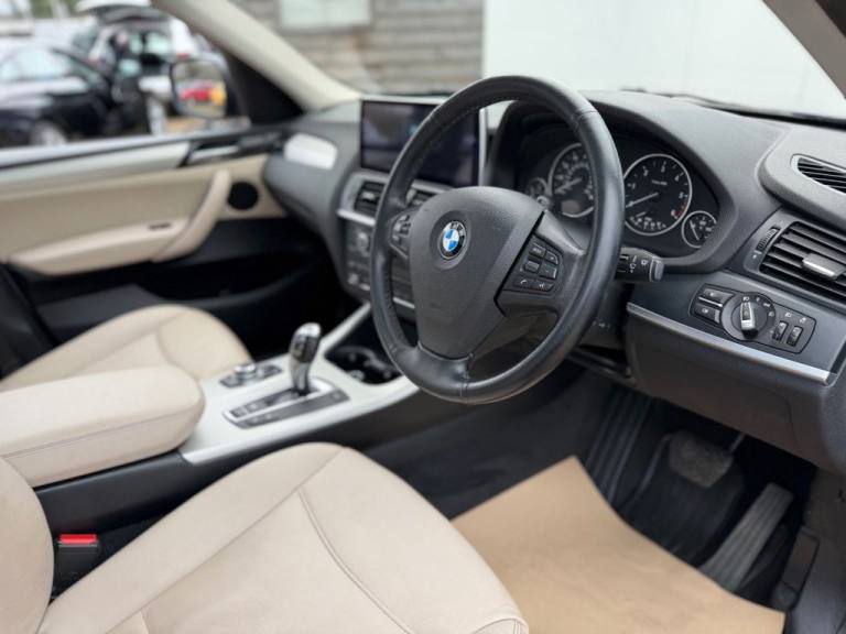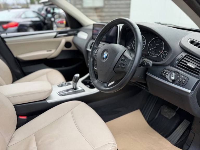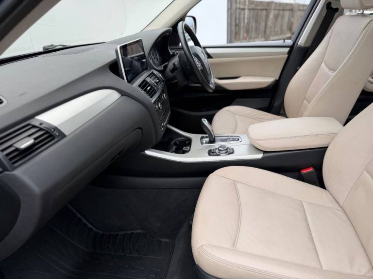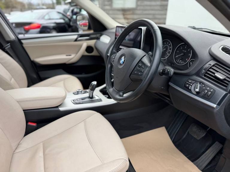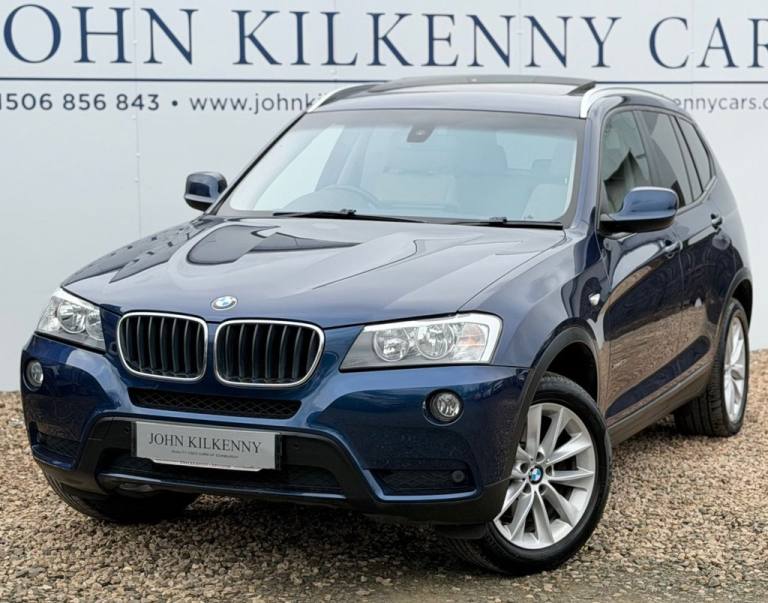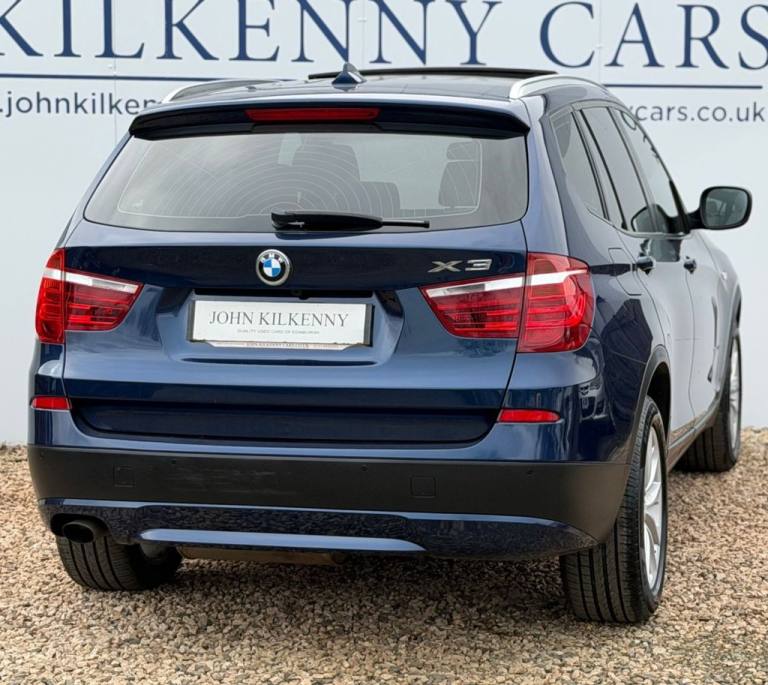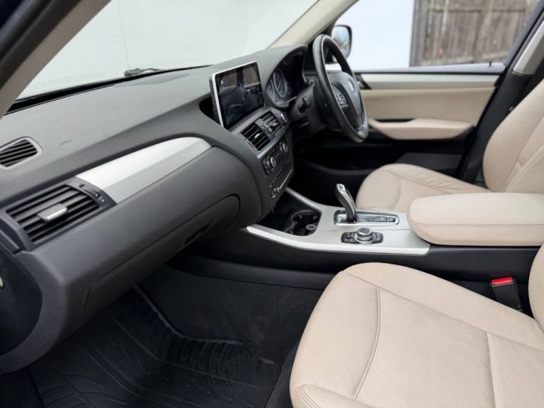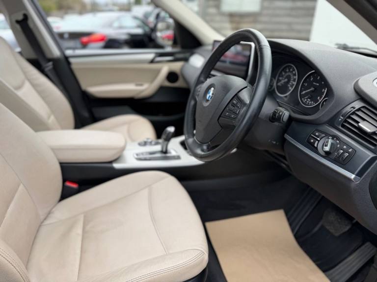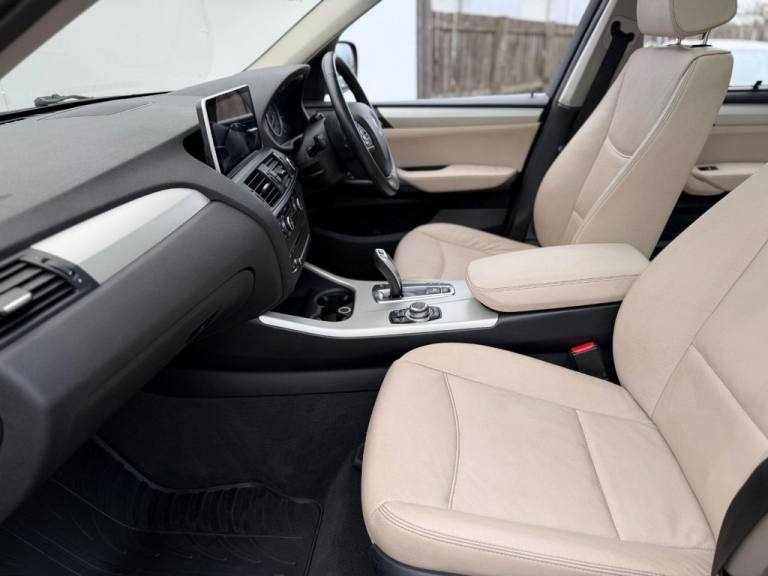 This 2012 BMW X3 20d SE boasts exceptionally low mileage for its age, having covered just 61,621 miles. This desirable four wheel drive model features a 2.0 litre diesel engine and comes with a clear vehicle history check and a 6 month warranty for your peace of mind. The SE trim includes a host of notable features such as a panoramic glass sunroof, a climate comfort package with climate control, a windscreen with a grey shade band, and parking distance control for both the front and rear. Experience impressive performance with a 0-62mph acceleration time of 8.5 seconds, all while achieving an excellent fuel economy of 50 mpg, which is better than many similar vehicles. This BMW X3 also offers low CO2 emissions and a large boot space, making it a practical choice. Furthermore, it provides a generous towing weight of 2400 kg and will be supplied with 12 months MOT for added reassurance. ALL CARS COME HPI CLEAR - CHECK OUT OUR FACEBOOK PAGE FOR REVIEWS & OFFERS.12V Power Socket - Front x2, 17in Alloy Wheels - Light V-Spoke - 304, 18in Alloy Wheels - Light V Spoke Style 307, ABS - Anti Lock Braking System, Air Conditioning - Automatic with Two-Zone Control, Airbags - Curtain, Airbags - Driver, Airbags - Driver and Front Passenger Side, Airbags - Passenger, Airbags - Passenger Deactivation, Alarm System Thatcham 1 with Remote Control, Anti Roll Bars - Front and Rear, Armrest - Front Centre, Automatically Dimming Rear View Mirror, Auxiliary Input, BMW Mobility System, BMW Online services, BMW Professional Radio - Single CD and MP3, BMW TeleServices, CBC - Cornering Brake Control, Central Locking - Doors Boot Fuel Cap via Remote Key, Child Seat ISOFIX Attachment - Rear x2, Climate Comfort Package, Climate Comfort Windscreen, Crash Sensor - Activating Central Locking Release, Cruise Control with Brake Function, Cup Holders - Centre Console, Deep Sea Blue, Deformation Zones - Front and Rear, Door Mirrors - Aspheric Electric Adjustment, Door Mirrors - Heated, DSC - Dynamic Stability Control - Stabilises the Vehicle in Extreme Situations - Controls Traction, EBD - Electronic Brake-Force Distribution, Electric Windows - Front and Rear with Open-Close Fingertip Control, Enhanced Bluetooth Telephone Functionality with USB Audio Interface and Voice Control, Extended Lighting, Exterior Trim - Black, Floor Mats - Velour, Front Fog Lights, Headlights - Automatic Activation, Headlights - Washer System, Heated Windscreen Washer Jets, iDrive Controller on Centre Console with 6.5in Colour Display, Incorrect Fuelling Protection System, Interior Trim - Satin Silver, Nevada Leather - Oyster, OBC - On-Board Computer, Panoramic Glass Sunroof, PDC - Park Distance Control - Front and Rear, PDC - Park Distance Control - Rear, Power Steering - Electric, Rain Sensor with Automatic Headlight Activation, Reading Lights - Front and Rear, Remote Audio Controls, Remote Control Locking, Reversing Assist Camera, Roof Rails - Matt Aluminium, Run Flat Tyres, Seats - 60-40 Split Folding Rear, Seats - Front - Manual Height Adjustment, Seats - Manual Adjustment for Height - Fore and Aft Position - Recline Angle, Side Impact Protection, Speaker System with Five Speakers, Steering Column with Manual Reach and Rake Adjustment, Steering Wheel - 3-Spoke Leather, Steering Wheel - Sport Leather Multifunction - 3 Spoke, Storage Compartment - Front Door Pockets, Storage Compartment - Trays in Centre Console, Sun Protection Glazing, Sun Visors with Illuminated Va