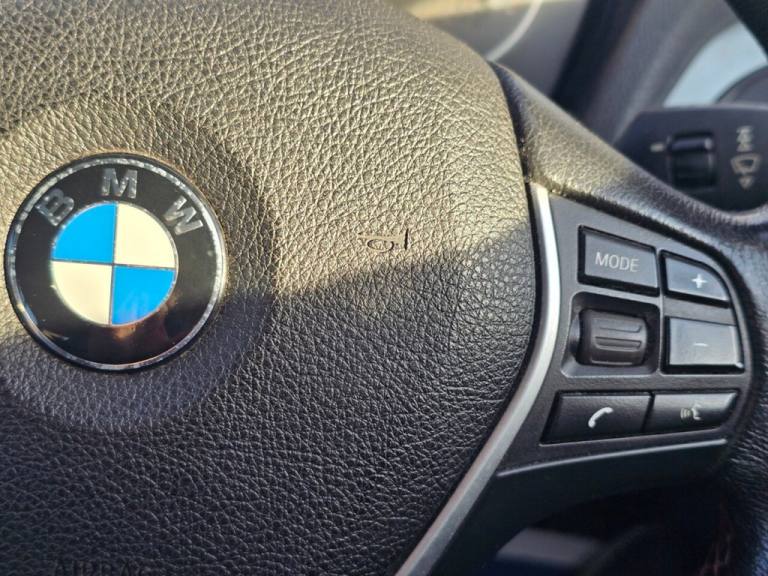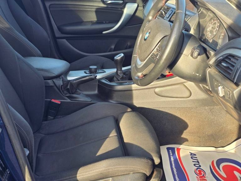 .12V Power Socket - Centre Console, 12V Power Socket - Passenger Footwell, 17in Alloy Wheels - Light Star Spoke - 379, 6.5in Colour Display Screen, ABS - Anti Lock Braking System, ASC - Automatic Stability Control, Active Differential Brake, Air Conditioning - Manual, Airbags - Curtain, Airbags - Driver, Airbags - Front Side, Airbags - Passenger, Airbags - Passenger Deactivation, Alarm System Thatcham 1 with Remote Control, Ambiance Lighting - Switchable, Ambient Interior Lighting, Armrest - Front and Rear Integrated into Door Trim, Armrest - Front with Sliding Adjustment, Auxiliary Input, BMW Online services, BMW Professional Radio - Single CD and MP3, BMW TeleServices, Belt Force Limiters - Front, Bluetooth Hands Free with USB Audio Interface, Brake Assist, Brake Drying, Brake Pad Wear Indicator - Front and Rear, Bumpers - Body Colour, CBC - Cornering Brake Control, Central Locking - Remote, Child Proof Locking System - Rear Doors, Child Seat ISOFIX Attachment - Rear x2, Comfort Go Keyless Engine Start, Crash Sensor - Activating Central Locking-Hazard Warning Lights-Fuel Cut Off, Cup Holders, DAB Digital Radio, DBC - Dynamic Brake Control, DSC - Dynamic Stability Control Plus, DTC - Dynamic Traction Control, Daytime Running Lights, Door Handles - Body Colour, Door Mirrors - Body Coloured Housing, Door Mirrors - Electric and Heated, Door Sill Finishers - Sport Designation, Drive Performance Control - ECO PRO - Comfort - Sport - Sport Plus, Dynamic Brake Lights, Electric Windows - Front and Rear with Open-Close Fingertip Control, First Aid Kit, Floor Mats - Velour, Follow Me Home Headlight Function, Enhanced Bluetooth Telephone Functionality with USB Audio Interface and Voice Control, Front Air Inlet with High-Gloss Black Finisher, Front Fog Lights, Interior Trim - Brushed Aluminium, Grab Handles - in Roof Lining x4, Halogen Headlights, Handbrake Lever - Gear Lever Knob and Gaiters in Leather, Interior Trim Finisher - Black High Gloss, Head Restraints - Rear and Folding, Headlights - Automatic Activation, PDC - Park Distance Control - Rear, Seats - Front Heated, Heat Protection Glazing with Green Tint, Heated Windscreen Washer Jets, High Level Third Brake Light, Sport Seats - Front, Steering Wheel - Black Leather - Sport - Three Spoke, Hill Start Assist, Interior Lighting, Deep Sea Blue, Interior Trim - Black High Gloss, Interior Trim - Black High Gloss with Coral Red Finisher, Track Cloth - Anthracite/Grey, Interior Trim Finisher - Coral Red, Kidney Grille