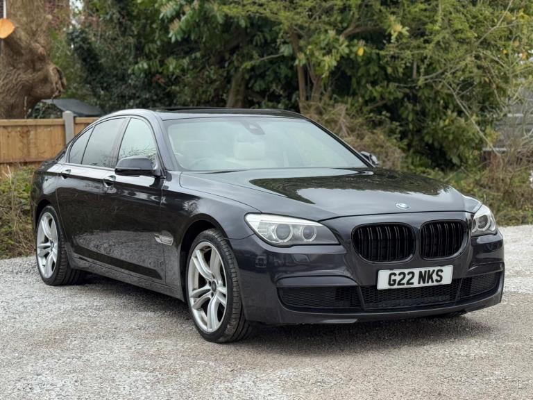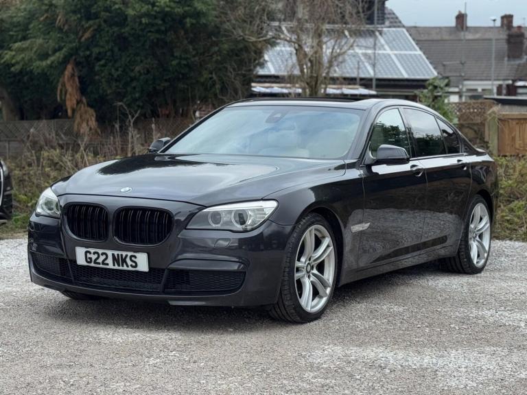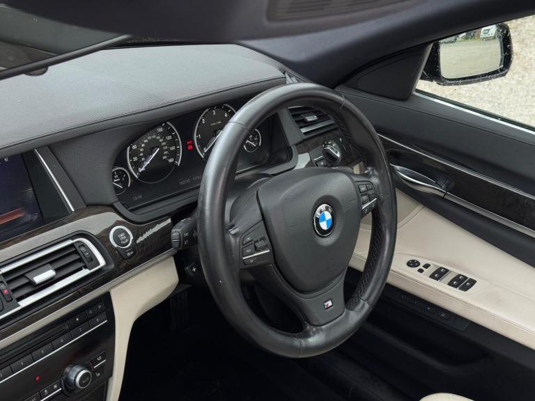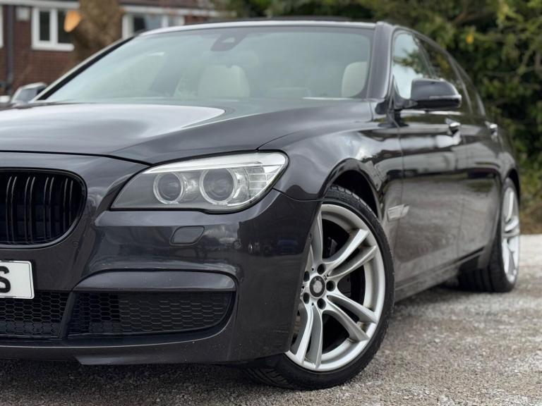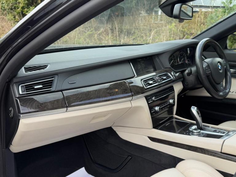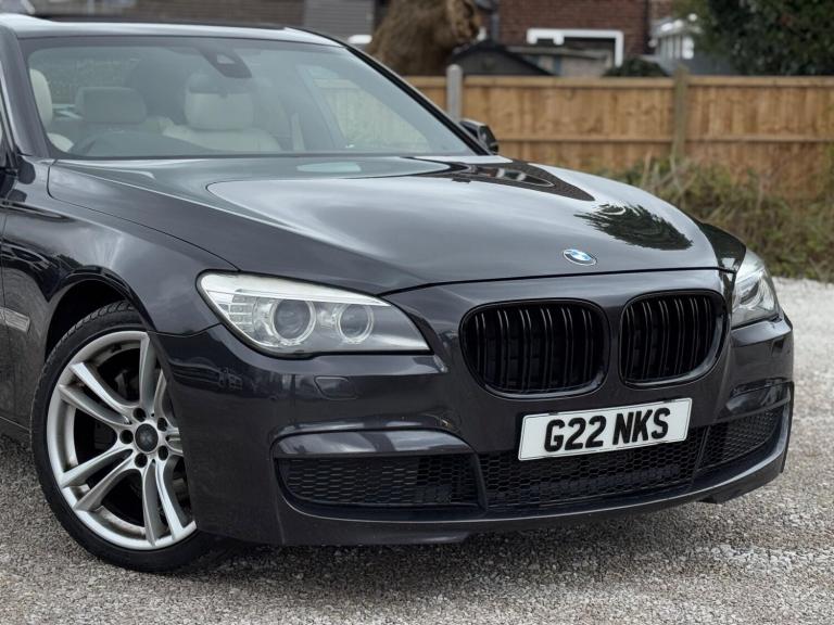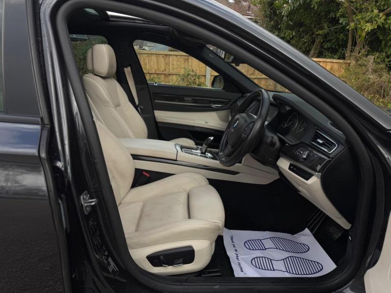SERVICE HISTORY - 10 SERVICES - 4 MAIN DEALER SERVICESLOGBOOKK2Surround-ViewRareVIN specInterior Trim - Ash Grain Anthracite Fine Wood High GlossVIN spec20in Alloy Wheels - M Light Double Spoke - 303MVIN specBootlid Operation - PoweredVIN specDakota Leather - Ivory WhiteVIN specReversing Assist CameraVIN specSun Protection GlazingVIN specFeatures:Sat navPanoramic roofHeated seatsParking cameraThis 2013 BMW 740d M Sport presents a remarkable opportunity with its exceptionally low mileage of just 102,537 miles for a vehicle of its age. As a distinguished 7 Series model, this 740d M Sport variant boasts a powerful 3.0L diesel engine, offering a compelling blend of performance and efficiency. The M Sport trim enhances its already sophisticated presence, while notable features such as Surround View with 360 degree camera parking assistance and enhanced Bluetooth telephone functionality with USB audio interface and voice control ensure a connected and convenient driving experience. Safety is also paramount, with the inclusion of a Lane Departure Warning System and Approach Control Warning.The impressive acceleration of this BMW 740d M Sport, achieving 0-62mph in a swift 5.5 seconds, clearly sets it apart from many other vehicles in its class. This rapid response, combined with the generous boot space, highlights the thoughtful engineering that makes this 7 Series a practical yet exhilarating choice. The inclusion of a USB audio interface further adds to the modern convenience offered within this well appointed saloon.