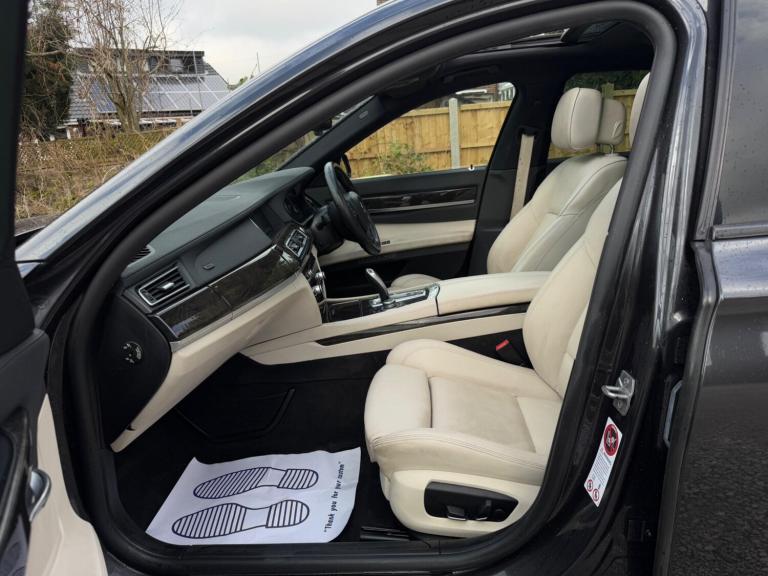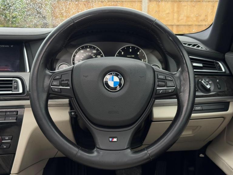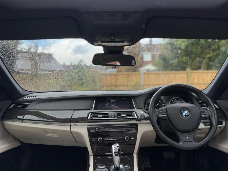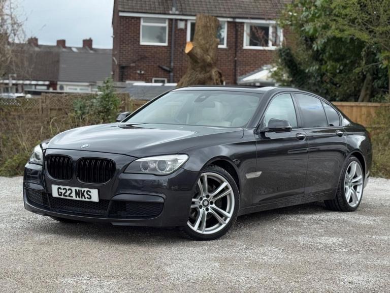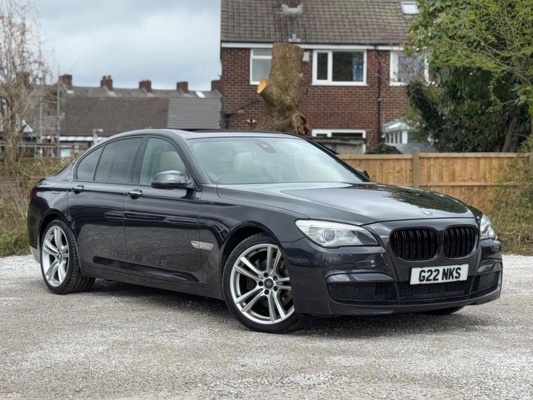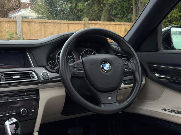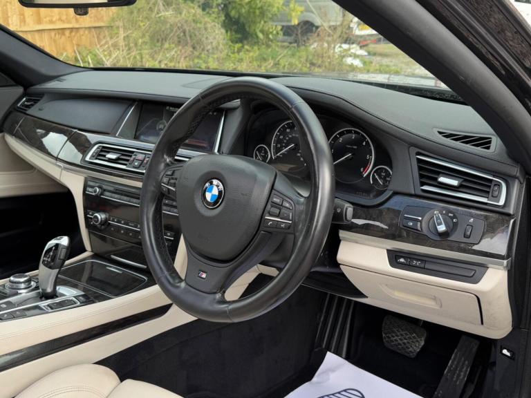 SERVICE HISTORY - 10 SERVICES - 4 MAIN DEALER SERVICESLOGBOOKK2Surround-ViewRareVIN specInterior Trim - Ash Grain Anthracite Fine Wood High GlossVIN spec20in Alloy Wheels - M Light Double Spoke - 303MVIN specBootlid Operation - PoweredVIN specDakota Leather - Ivory WhiteVIN specReversing Assist CameraVIN specSun Protection GlazingVIN specFeatures:Sat navPanoramic roofHeated seatsParking cameraThis 2013 BMW 740d M Sport presents a remarkable opportunity with its exceptionally low mileage of just 102,537 miles for a vehicle of its age. As a distinguished 7 Series model, this 740d M Sport variant boasts a powerful 3.0L diesel engine, offering a compelling blend of performance and efficiency. The M Sport trim enhances its already sophisticated presence, while notable features such as Surround View with 360 degree camera parking assistance and enhanced Bluetooth telephone functionality with USB audio interface and voice control ensure a connected and convenient driving experience. Safety is also paramount, with the inclusion of a Lane Departure Warning System and Approach Control Warning.The impressive acceleration of this BMW 740d M Sport, achieving 0-62mph in a swift 5.5 seconds, clearly sets it apart from many other vehicles in its class. This rapid response, combined with the generous boot space, highlights the thoughtful engineering that makes this 7 Series a practical yet exhilarating choice. The inclusion of a USB audio interface further adds to the modern convenience offered within this well appointed saloon.
