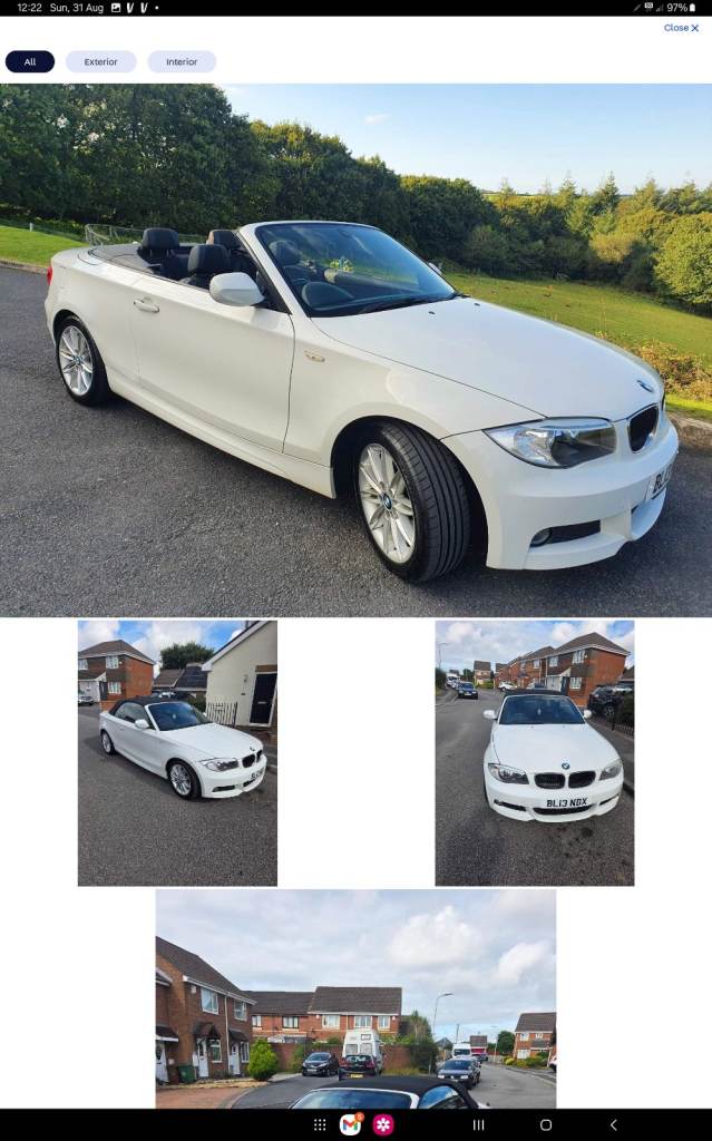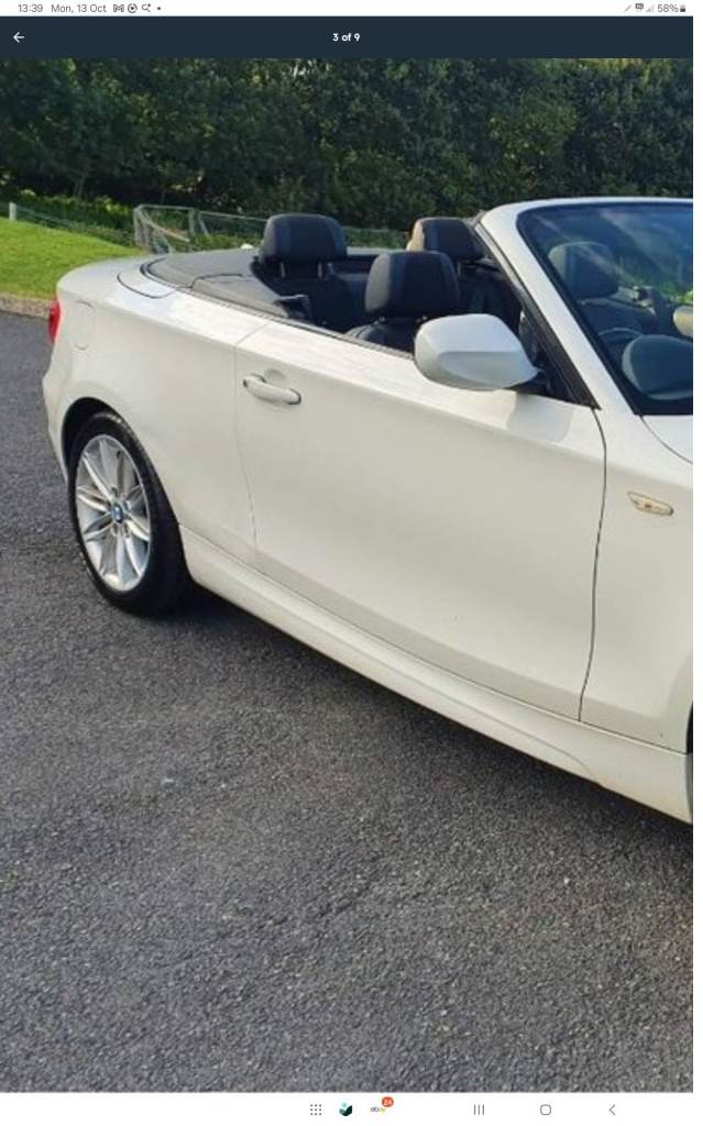 2013 M - SPORT , BMW 1 SERIES CONVERTIBLE 118i M - SPORT. IN ABSOLUTE SHOWROOM CONDITION. GET READY FOR THE SUMMER. FULL LOG BOOK PRESENT. AND IN DEFINITELY THE BEST COLOUR , DIAMOND WHITE. WITH NO DENTS OR SCRATCHES , WHATSOEVER. EVERYTHING WORKS PERFECTLY. THE ROOF IS IN , AN EXEPTIONAL BRAND NEW CONDITION. ELECTRIC ADJUSTABLE LUMBAR SUPPORT , FOR COMFORT , SAFETY REASONS , AND TIGHT CORNERING , WHICH TIGHTENS ELECTRICLY , TO HOLD YOU FIRMLY IN PLACE. VERY RELUCTANT SALE , AS WE NOW NEED A 4 DOOR , FOR OUR TWO YOUNG GIRLS. THIS IS A VERY WELL LOOKED AFTER CAR. JUST HAD THE TRACKING DONE. IT HAS ALWAYS BEEN RAN ON THE BEST BP ULTIMATE FUEL. M - SPORT SUSPENSION. IMMACULATE ENGINE , AND ENGINE BAY. POWER STEERING. FRONT AND REAR PARKING SENSORS. HALF BLACK LEATHER SEATS. ONE TOUCH FRONT AND REAR ELECTRIC WINDOWS. ELECTRIC ADJUSTABLE WING MIRRORS. AUTOMATIC DIMMING REAR VIEW MIRROR. REMOTE CENTRAL LOCKING. BMW ' PROFFESIONAL ' STEREO SYSTEM. THE ROOF IS IN BRAND NEW CONDITION , WHICH CAN BE TAKEN DOWN EITHER , BY USING THE KEY FOB , OR BY THE BUTTONS WHICH ARE INSIDE THE CAR. THE ROOF IS UNMARKED , AND WORKS PERFECTLY ! UNMARKED BMW M-SPORT ALLOY WHEELS. AIR CONDITIONING. BLUETOOTH , DUAL ZONE CLIMATE CONTROL. IT'S JUST HAD A FULL MAJOR SERVICE JUST DONE , OIL , OIL FILTER , AIR FILTER , NEW SPARK PLUGS. .SERVICE HISTORY. M.O.T UNTIL JULY 2026. THE CAR IS ABSOLUTELY MINT £3,850 OVNO.