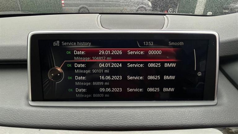 This clearly cared for BMW X5 F15 3.0d Sport automatic is presented in immaculate condition with a Highly desirable specification including Panoramic sunroof and the Advanced BMW speaker system , it comes with a comprehensive main Dealer service History and only 2 owners from new . Fully inspected and prepared in our workshop , including a fresh annual service and Transfer box service and supplied with an MOT from February 2026.. 12V Power Socket - Centre Console,12V Power Socket - Luggage Compartment,12V Power Socket - Rear of Centre Console,19in Alloy Wheels - Light M Double Spoke Style - 467,20GB HDD Memory,40-20-40 Split Folding Rear Seats,ABS - Anti Lock Braking System,ADB - Automatic Differential Brake,ASC - Automatic Stability Control,Adaptive M Sport Suspension,Air Conditioning - Automatic with Two-Zone Control,Air Microfilter,Airbags - Curtain,Airbags - Driver,Airbags - Front Side,Airbags - Passenger,Airbags - Passenger Deactivation,Alarm System Thatcham 1 with Remote Control,Ambient Interior Lighting,Armrest - Front with Storage Compartment,Automatically Dimming Rear View Mirror,Auxiliary Input,BMW Apps Interface,BMW ConnectedDrive Online Services,BMW Emergency Call,BMW Professional Radio - Single DVD and MP3,BMW TeleServices,Bluetooth Hands Free with USB Audio Interface,Brake Drying,Brake Fade Compensation,Brake Force Display,Brake Pre-Tensioning,CBC - Cornering Brake Control,Central Locking - Remote,Check Control Warning System,Child Proof Locking System - Rear Doors,Child Seat ISOFIX Attachment - Rear,Control Display - 10.2in Colour Display,Courtesy Lights - Front with Soft On-Off Dimming,Crash Sensor - Activating Central Locking-Hazard Warning Lights-Fuel Cut Off,Cruise Control with Brake Function,Cup Holders - Front and Rear,DAB Digital Radio,DBC - Dynamic Brake Control,DSC - Dynamic Stability Control Plus,DTC - Dynamic Traction Control,Deformation Zones - Front and Rear,Door Handles - Body Colour,Door Handles - Exterior Puddle Lights,Door Mirrors - Electric and Heated and Aspheric,Door Sill Finishers - BMW M3 Designation,Double-Wishbone Suspension - Front,EBD - Electronic Brake-Force Distribution,Electric Windows - Front and Rear with Open-Close Fingertip Control,Electro-Mechanical Parking Brake with Auto-Hold Function,Engine Immobiliser,Exhaust Tailpipes - Chrome Quadrilateral,Exterior Trim - High-Gloss Shadowline,First Aid Kit,Floor Mats - Velour,Follow Me Home Headlight Function,Footwell Lights - Front with LED,Glove Compartment - Lockable and Illuminated,HDC - Hill Descent Control,Head Restraints - Front and Rear,Headlights - Automatic Activation,Headlights - Washer System,Headlining - Anthracite,Heated Windscreen Washer Jets,High Level Third Brake Light,Hill Start Assist,Indicator Lenses - Clear,Interior Trim - Aluminium Hexagon,Kidney Grille - Chrome with Black Vertical Slats,LED Fog Lights - Front,Locking Wheel Bolts,Luggage Compartment - Retractable and Removable Cover,M Aerodynamic Bodystyling,M Sport Package,Multifunction Controls for Steering Wheel,Navigation System - BMW Professional Multimedia,OBC - On-Board Computer,PDC - Park Distance Control - Front and Rear,PDC - Park Distance Control - Rear,Passenger Seat Occupancy Sensor - Front,Rain Sensor with Automatic Headlight Activation,Reading Lights - Front and Rear,Real Time Traffic Information,Rear Window Wiper with Wash-Wipe System,Roof Rails - High-Gloss Shadowline,Run Flat Tyres,Seat Adjustment - Front Electric with Driver Memory,Seat Belts - Front Inertia Reel with Pyrotechnical Belt Latch Tensioner and Belt Force Limiter,Securing Rings in Luggage Compartment x4,Servotronic Steering,Side Impact Protection,Smokers Package,Speaker System with Six Speakers,Sport Seats - Front,Start-Stop Button with Keyless Operation,Steering Column with Manual Reach and Rake Adjustment,Steering Wheel - Gearshift Paddles,Steering Wheel - M Leather Multifunction,Storage Compartment - Interior Door Panels with Anti-slip Mats,Sun Visors with Illuminated Vanity Mirrors,TPWS - Tyre Pressure Warning System,Tailgate Split - Bottom Section with Manual Release,Tailgate Split - Top Section with Remote Electric Release and Soft Close Function,Tool Kit Located in Luggage Compartment,Voice Control - Phone,Windows - Heat Insulated Green Tinted,Xenon Headlights,iDrive Controller with Shortcut Buttons,Panoramic Glass Sunroof,Speaker System - BMW Advanced,Reversing Assist Camera,Enhanced Bluetooth Telephone Preparation with USB Audio Interface,Sun Protection Glazing,Seats - Front Heated,Door Mirrors - Folding - Automatically Dimming,Extended Storage,ConnectedDrive Services Package,Interior Trim - American Oak High Gloss,High-Beam Assistant,Exterior Trim - Matt Aluminium,Roof Rails - Matt Aluminium,Dakota Leather - Ivory White
