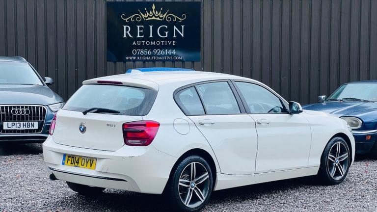 Reign Automotive Are Proud To Present This 2014 Pearlescent White BMW 1 Series, 17"" Alloy Wheels, Front Fog Lights, Rear Parking Sensors, Run Flat Tyres. Service Records : Backed Up With Paperwork & History From Norman Motors & Independent Garages As Follows : 07/07/2017 @ 22228 03/12/2019 @ 50156 22/06/2021 @ 63786 06/06/2022 @ 72351 05/06/2023 @88104 - Startech Poole ( Full Service, Catalytic Convertor Gasket, Rocker Cover Gasket Oil Filter Housing & Vacuum Pumps Replaced With Full Diagnostic & £2036 Receipt For Works Carried Out 30/02/2024 @ 86445 02/09/2024 @ 96131 - Discs & Pads Replaced 03/11/2025 @ 104800 Reign Automotive Carried Out Oil & Filter Change Interior: Black & Red Cloth Upholstery With Matching Interior Trim, Central Media Screen With Navigation, Bluetooth Telephony & Multimedia Cable Connection For Playback, Multifunctional Steering Wheel With Cruise Control/Limiter, Source Media Controls, I Drive System With Vehicle Settings & Trip Computer, Air Conditioning, IsoFix Rear Bench. This Example Has Had 1 Owner, Benefits From Full History & Has Been Maintained Over The Years, Tax Is £195, MoT Expiry Is 23 June 2026. Insurance Group * 18 * Reg* FD14 OYV * *Full Details : [Website URL removed] * All of Our Vehicles Come With 3 Months Warranty First Or AA Warranty For Full Peace Of Mind (up to 36 Month Extension Available With Our Warranty Partners), **Unless Otherwise Stated Or Agreed ** All Vehicles At Point Of Sale Are Valeted Before Handover** Nationwide Delivery Available On All Vehicles @ £1.50 Per Mile (1 Way + Drivers Fee Of £40 ) Part Exchange welcome. Open Monday to Saturday, 830 - 5 ** Sundays Viewing By Appointment Only*** All Major Credit & Debit Cards Accepted. Please visit our Website [Website URL removed] Secure this vehicle today for £250 Deposit T&C's Apply! All our vehicles are HPI clear, Have A Pre Delivery Inspection Which Consists Of 81 Point Check Throughout The Vehicle, Serviced If Required & MoT If Less Than 6 Months ** See Our 5***** Reviews On Google, Buy with confidence Through Us.