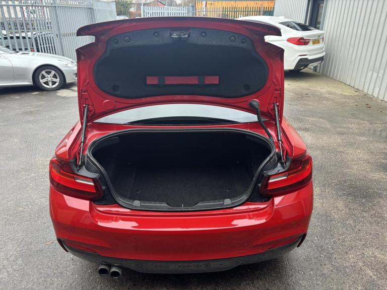 BMW 2 Series 2.0 225d M Sport Coupe Auto Euro 6 (s/s) – 218 PS2014 104,905 miles Diesel Automatic A superb example of the powerful and refined BMW 225d M Sport Coupe, finished in stunning Melbourne Red Metallic with Dakota Black Leather interior. Producing an impressive 218 PS, this vehicle delivers exceptional performance while maintaining excellent fuel economy. This car has been meticulously cared for and maintained. All of our vehicles undergo thorough road testing, inspection, and preparation to the highest standards by our on-site BMW-trained technicians prior to advertisement. You can buy with confidence knowing your new BMW has been expertly prepared by brand specialists. Key Features & Specification M Sport Package M Sport Suspension M Aerodynamics Package BMW LA M Double Spoke 461 Alloy Wheels Sport Automatic Gearbox Xenon Headlights with Headlight Cleaning System Front Fog Lights Sun Protection Glazing Dakota Black Leather Interior Heated Front Sports Seats M Leather Multifunction Steering Wheel Navigation System Business DAB Radio Bluetooth with Enhanced Smartphone Connectivity Cruise Control with Braking Function Park Distance Control (PDC) Automatic Air Conditioning Rain Sensor Interior Trim Aluminium Hexagon High Gloss Shadow Line Anthracite Headlining Electric Windows & Mirrors Alarm System Run-Flat Tyres with Tyre Pressure Display Intelligent Emergency Call Active Pedestrian Protection And much more – this is a very high specification vehicle. Why Buy From Us? Prepared to the highest standards Highly rated on AutoTrader Indoor viewing area available Large selection of BMWs in stock – visit our website Finance options available 3 months warranty included Extended warranty packages available Free delivery within 60 miles Nationwide delivery available at competitive rates Part exchange welcome No-pressure sales approach Out-of-hours viewings are available by appointment. This BMW 225d offers the perfect balance of performance, comfort, and efficiency. A fantastic opportunity to own a well-maintained, high-specification M Sport Coupe. For further information or to arrange a viewing, please do not hesitate to contact us.