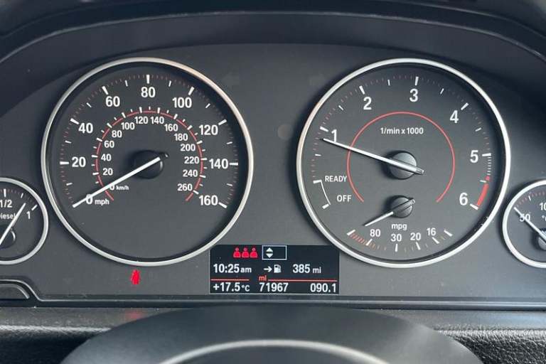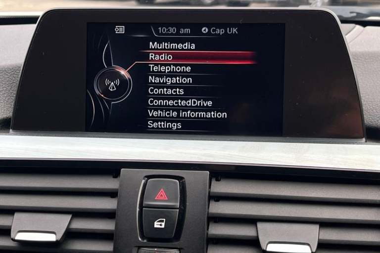 Automatic tailgate operation, BMW Teleservices, Brake force display, Brake pad wear indicator warning light, Check control system, Cruise control with brake function + speed limiter, Digital clock, Door/boot open warning light, Lights on warning, Oil temperature gauge, On board computer, On board diagnostics, Operation warning of all exterior lights, Outside temperature display, Push button starter, Service interval indicator, 'Guide me home' headlamps, 2 speed adjustable intermittent wipers with wash/wipe function, Auto dimming rear view mirror, Automatic headlight beam throw control, Body colour bumpers, Body colour door handles, Body colour door mirrors, Body colour roof mouldings, Chrome exhaust tailpipe, Clear indicator lenses, Daytime running lights, Dynamic brake lights, Electric adjustable door mirrors, Electric front and rear windows with one touch/convenient open/close function, Front fog lights, Front ornamental grille with black kidney bars and chrome bezel, Green tinted heat insulating glass, Heated rear window with automatic switch off, Heated windscreen washer jets, High gloss shadow line, Independent opening for tailgate window, Rain sensor + automatic driving lights control, Rear wash/wipe, Shark fin roof aerial, 12V sockets in front centre console and passenger footwell, 2 bag hooks in luggage compartment, 2 x folding cupholders in instrument panel above glovebox, 3 rear seat head restraints, 4 foldable grab handles - rear with clothes hook, 4 lashing points