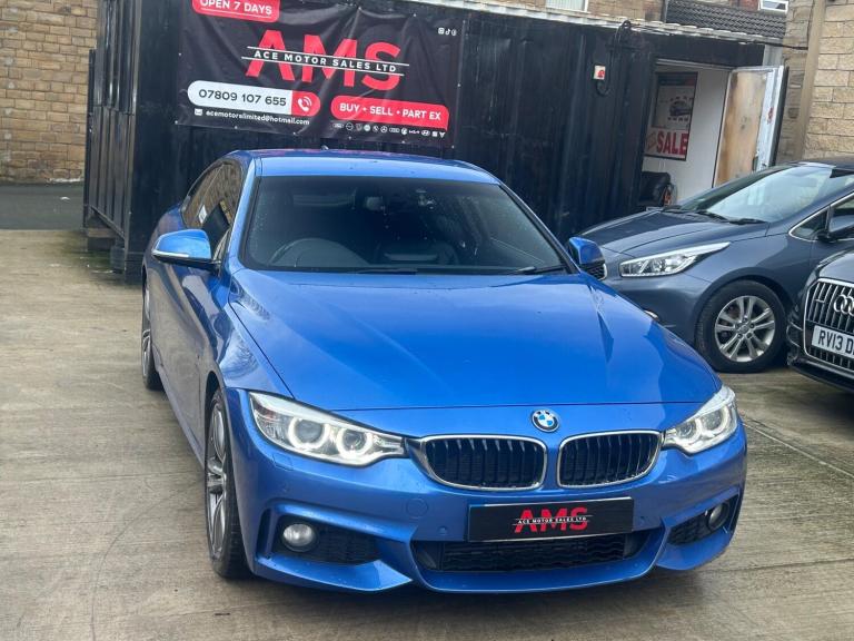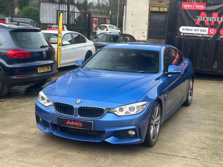 2014 BMW 420d M Sport Automatic 139k Miles BMW Service History Stunning Example! Top Of The Range Model!Ace Motor Sales Ltd are proud to offer this beautiful BMW 420D for sale. The vehicle is finished in metallic Estoril Blue accompanied by the 19 inch M Sport alloy wheels and the stunning black leather interior. Drives like a dream with an ample amount of power, comfort and performance. Great condition inside and out. Very well maintained example with BMW on board service history. HPI CLEAR. X2 Keys. Some of the spec included: Memory seats, Electric seats, 8 speed gearbox with paddle shifts, Pro Nav multimedia system, Wide screen, Digital Cluster, M Sport plus pack, Front & Rear parking sensors, Xenon headlights, ProNav, Cruise control, DAB, High gloss shadow line, Black leather heated seats, M Sport plus aerodynamic styling pack. Plus many more optional extras. Low Cost Nationwide Delivery! We Take Any Car In Part Exchange! Reserve This Car For Just £99! Visit our website at ACEMOTORSALES.UK to view our latest stock! Contact The Sales Office To Make Any Further Enquiries Or To Book A Viewing/Test Drive.
