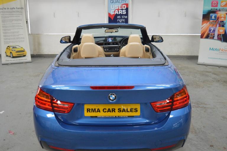 BMW 2.0 420D M SPORT AUTOMATIC 2dr DIESEL CONVERTIBLE. A UNIQUE ONE OWNER EXAMPLE WITH JUST 17000 MILES ON THE CLOCK, THIS 4 SERIES CONVERTIBLE EXUDES STYLE, POWER AND PERFORMANCE. IN ESTORIL BLUE THE BODYWORK IS ABSOLUTELY FANTASTIC WITH NO MARKS, DINGS OR DENTS AND THE INTERIOR IS SPOTLESS, JUST LIKE NEW. THIS REALLY IS A ONE IN A MILLION WITH THE MILES, ONE OWNER AND COMPREHENSIVE SERVICE HISTORY AND NEEDS TO BE SEEN TO BE FULLY APPRECIATED. FEATURES INCLUDE AN ELECTRIC HARD TOP ROOF WHICH WORKS FAULTLESSLY THROUGH THE SIMPLE PUSH OF A BUTTON, DYNAMIC TRACTION AND DRIVE PERFORMANCE CONTROL, HILL START ASSIST, M SPORT AERODYNAMICS BODYSTYLING, EXCELLENT FUEL ECONOMY, 181 BHP, DAYTIME RUNNING LIGHTS, FRONT AND REAR PARK ASSIST, FRONT FOGS, UNMARKED ALLOYS WITH RECENT TYRES, LEATHER INTERIOR, HEATED AND POWERED FRONT SEATS WITH AIR SCARF AND SET MEMORY POSITIONS ON DRIVERS, DUAL ZONE CLIMATE CONTROL, AIR CONDITIONING, MULTI-FUNCTIONAL STEERING WHEEL, COLOUR SCREEN OPERATED BY CENTRE CONSOLE CONTROLLER, CD/DAB RADIO, BLUETOOTH TELEPHONE CONNECTIVITY, SATELLITE NAVIGATION, CRUISE CONTROL AND SPEED LIMITER, AUX/USB INTERFACE, ENGINE STOP/START BUTTON, ECO/SPORT MODES, ELECTRIC WINDOWS AND MIRRORS, AUTO STOP/START, REMOTE CENTRAL LOCKING AND 2 x KEYS. WITH ITS SPORTY APPEAL AND SLEEK DESIGN THIS IS A REAL GEM AND FURTHERMORE IT IS ULEZ AND CAZ COMPLIANT. AS WE ARE AN AA CARS DEALER THIS VEHICLE COMES WITH A FULL AA HISTORY CHECK AND ALSO 12 MONTHS AA BREAKDOWN COVER. EXTENDED AA WARRANTY AVAILABLE. WE ARE ALSO A MEMBER OF THE AA DEALER PROMISE SCHEME. NEW MOT ISSUED ON PURCHASE. WE PRIDE OURSELVES ON THE PRESENTATION OF OUR VEHICLES WHICH ARE FULLY VALETED AND PREPARED TO THE VERY HIGHEST OF STANDARDS. AS A RESULT WE FIRMLY BELIEVE THAT OUR FORECOURT IS UNRIVALLED AND OUR REPUTATION FOR SELLING PREMIUM USED CARS IS SECOND TO NONE. WALK AROUND VIDEO AND DELIVERY OPTIONS ARE AVAILABLE UPON REQUEST.