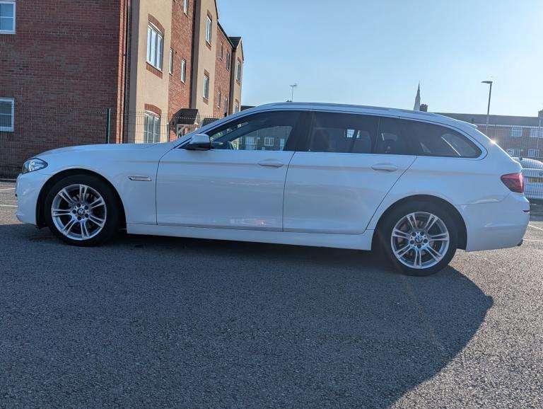 2014 BMW 5 Series 2.0 520d SE Touring Auto Euro 6 - 6 Months AA Warranty Included - Long MOT - Full Leather - ULEZ A premium and spacious estate that blends executive comfort with impressive efficiency, this BMW 520d SE Touring is perfect for families, long distance motorway drivers, and anyone looking for practicality without compromising on driving quality. With strong performance, a smooth automatic gearbox, and BMW build quality throughout, it offers excellent value for money. ** Performance and Economy ** Powered by a 2.0 litre diesel engine producing 181 bhp, this 520d delivers strong and effortless performance while maintaining excellent fuel economy. The automatic transmission provides smooth gear changes, making it ideal for both city driving and long motorway journeys. Euro 6 compliant and ULEZ compliant, it offers lower emissions and more affordable city driving. ** Features and Technology ** BMW Business Advanced Navigation, Enhanced Bluetooth with USB audio interface, Front and rear park distance control, Xenon headlights with automatic activation, Heated front seats, Dakota black leather interior, DAB digital radio, Powered tailgate, Cruise control with brake function. ** Comfort and Practicality ** As a Touring model, this 5 Series offers a large and versatile boot space, perfect for families, work equipment, or long trips. The 40 20 40 split folding rear seats increase flexibility, while the self levelling rear air suspension ensures a composed and comfortable ride even when fully loaded. Dual zone climate control, part electric front seats, multifunction leather steering wheel, and a high quality cabin finish make every journey enjoyable. ** Safety and Security ** Equipped with ABS, DSC dynamic stability control, multiple airbags including curtain and side airbags, ISOFIX child seat preparation, hill start assist, dynamic traction control, Thatcham approved alarm system, and BMW emergency call for added peace of mind. ** Ownership and Condition ** This BMW has covered 142000 miles, which is considered higher mileage for its age but it has been well maintained and still drives beautifully. The MOT is valid until 18/07/2026, giving you a long MOT for added reassurance. Presented in Alpine White with black Dakota leather, it remains a stylish and practical executive estate. ** AA Benefit and Warranty ** A 6 month AA warranty included, which can be extended 12 month free AA breakdown cover £75 gift card