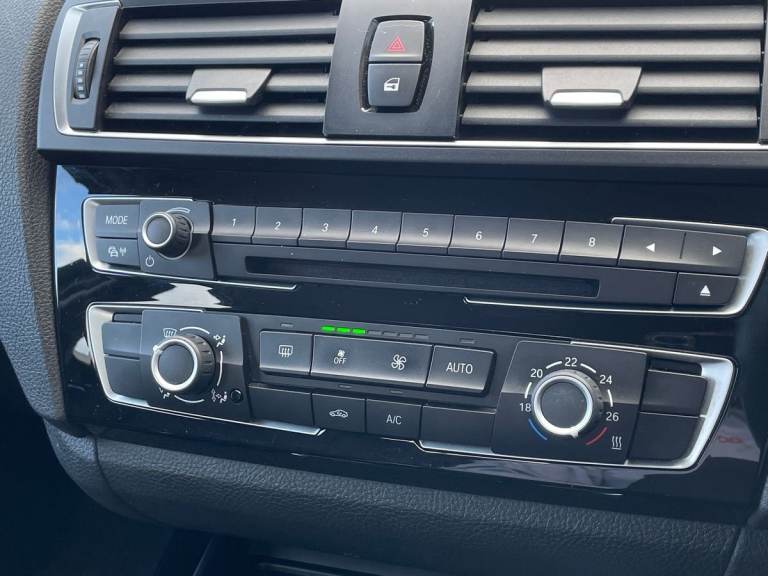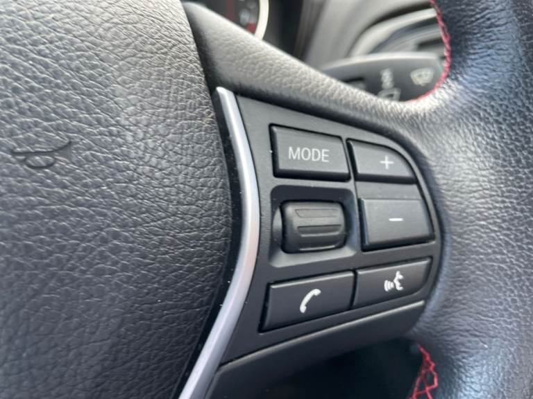 ..Driver Convenience,Brake Pad Wear Indicator,Check Control Warning System,Drive Performance Control - ECO PRO - Comfort - Sport and Sport Plus,iDrive Controller - 8 Favourite Buttons,Lights-on Audio Warning,OBC - On-Board Computer,Optimum Shift Indicator,Outside Temperature Display,TPMS - Tyre Pressure Monitoring SystemEntertainment,12V Power Socket - Centre Console,12V Power Socket - Passenger Footwell,12V Power Socket - Rear of Centre Console,6.5in Colour Display Screen,Auxiliary Input,Bluetooth Hands Free Facility,BMW Emergency Call,BMW Navigation System,BMW Professional Radio - Single CD and MP3,BMW TeleServices,DAB Digital Radio,Power Socket - 12V in Luggage Compartment,Shark Fin Aerial,Speakers x6,TMC - Traffic Information for Lifetime of Vehicle,USB Audio InterfaceExterior,17in Alloy Wheels - Light Double Spoke Star - 655,BMW Mobility System,Bumper - Rear with Black High Gloss Finisher,Bumpers - Body Colour,Door Handles - Body Colour,Door Mirrors - Body Coloured,Door Mirrors - Electric and Heated,Door Mirrors - Integrated Indicator Side Repeaters,Electric Windows - Front and Rear with Open-Close Fingertip Control,Exhaust Tailpipe - Chrome - Single - Round,Front Air Inlet with High-Gloss Black Finisher,Heat Protection Glazing with Green Tint,Heated Windscreen Washer Jets,Indicator Lenses - Clear,Kidney Grille - Extra Wide High Gloss Black Vertical Slats,Locking Wheel Bolts,Roof Mouldings - Body Colour,Run Flat Tyres,Welcome LightingInterior,Air Conditioning - Automatic - Single Zone,Armrest - Front and Rear Integrated into Door Trim,Armrest - Front with Sliding Adjustment,Cup Holders x2,Door Pockets on Rear Doors,Door Sill Finishers - BMW Designation,Extended Storage,Floor Mats - Velour,Gear Knob - Leather,Glove Compartment,Glove Compartment - Opener with Chrome Trim,Grab Handles - in Roof Lining x4,Handbrake - Leather,Head Restraints - Rear and Folding,Instrument Cluster - Sports with Red Highlight,Interior Lighting - Front and Rear Centre,Interior Trim - High-Gloss Black with Coral Red Finisher,Luggage Compartment - Lashing Eyes x2,Luggage Compartment - Light,Model Designation Deletion - Side,Multifunction Controls for Steering Wheel,Non Smokers Package,Personal Profile,Rain Sensor,Seats - Driver Manual Adjustment,Seats - Passenger Manual Adjustment,Seats - Split Rear 60-40,Sport Seats - Front,Start-Stop Button with Comfort Go Keyless Engine Start,Steering Column with Manual Reach and Rake Adjustment,Steering Wheel - Leather - Sports with Red