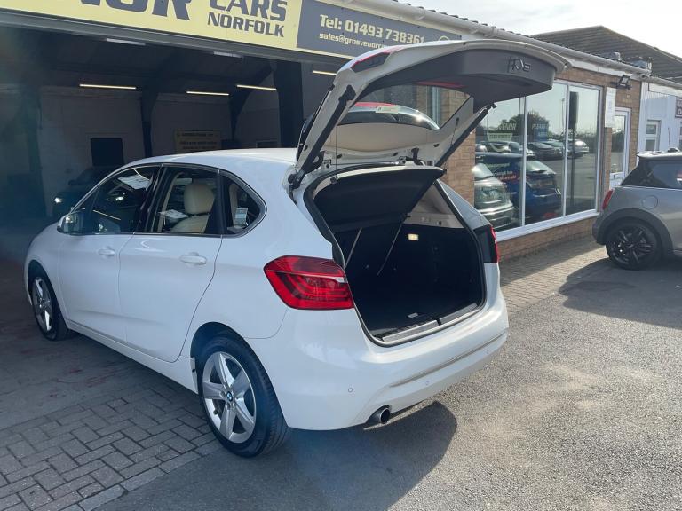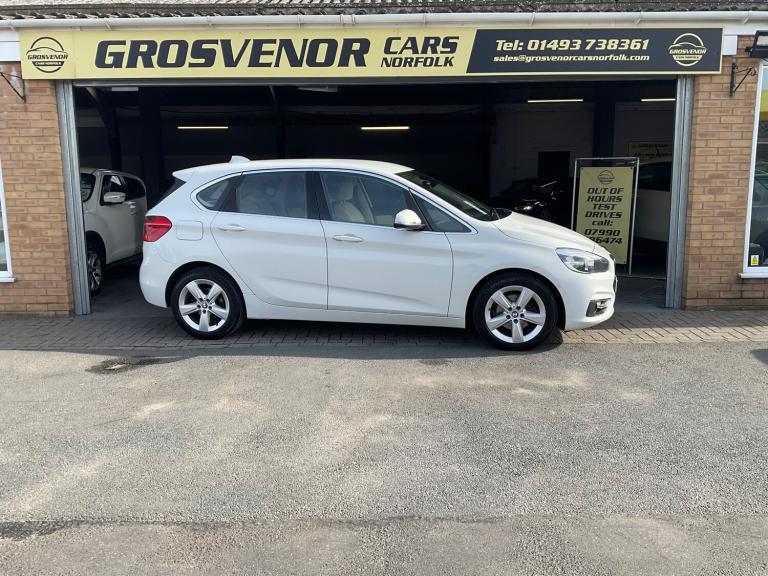 This 2015 BMW 2 Series Active Tourer is a reliable MPV with a powerful 2.0 218d Diesel engine and automatic transmission, producing 150 ps and is Euro 6 compliant, making it ULEZ compliant as well. With 48000 miles on the clock, this spacious vehicle comfortably seats 5 passengers with 3 seats and 4 doors, perfect for family trips. The MOT is valid until 30/11/2026, providing peace of mind for the buyer. The Alpine White exterior is complemented by 17in Alloy Wheels and Electric Folding Door Mirrors, while the interior features Electric Folding and Automatically Dimming mirrors and a Space Saver Spare Wheel. Whether for city driving or long trips, this BMW 2 Series Active Tourer is a sturdy and efficient choice for anyone in need of a reliable and stylish MPV. Buy with confidence at Grosvenor Cars Norfolk all our customers have the added peace of mind that all our vehicles are supplied with a minimum of 8 months mot, sales service, pre delivery inspection & minimum 3 months parts & labour warranty for total peace of mind which can also be extended to 6 or 12 months for a small fee. We deliverer a trusted service from one of the longest standing indoor dealerships in the town with outstanding google reviews. Part exchange welcome & finance available. We offer both PCP and Hire Purchase agreements, please call us for a free quotation or more information. All our vehicles have vast specifications, in most cases, far too much too list, so please always check the vehicles exact specification prior to purchase. We always have at least 30 vehicles in stock to choose from. For more information, please call 01493 738361 or visit our website [Website URL removed] Features Include: , 12v power socket - centre console, 12v power socket - passenger footwell, 12v power socket - rear of centre console, 6.5in colour display screen, auxiliary input, bmw emergency call, bmw navigation, bmw professional radio - single cd and mp3, bmw teleservices, bluetooth hands free with audio streaming, bluetooth hands free with usb audio interface, dab digital radio, power socket - 12v in luggage compartment, shark fin aerial, tmc - traffic information for lifetime of vehicle, usb audio interface, 17in alloy wheels - multi spoke style - 481, bmw mobility system, bumper - rear with black high gloss finisher, bumpers - body colour, door handles - body colour, door mirrors - body coloured, door mirrors - electric and heated, electric windows - front and rear with open-close