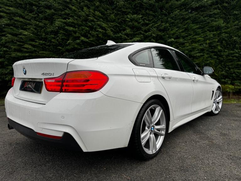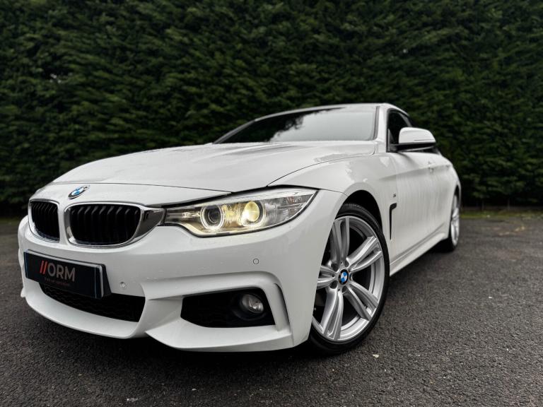ORM Motors are proud to present our simply stunning 2015 BMW 4 Series Gran Coupe 420i M Sport finished in the best colour - alpine white in excellent condition throughout. ULEZ compliant so you can drive in city centres and clean air zones throughout the UK. 1 YEARS MOT - NO ADVISORIES. This low mileage example has covered just 54k miles from new with and has just been serviced for sale by a highly reputable BMW specialist. Extremely well kept and loved example - must be seen to be appreciated. During our extensive preparation process - we have just had the wheels freshly powder coated in silver sparkle and the car has just been professionally detailed - ready for its new owner to drive awaySpec includes 19 inch style 422m wheels, black heated leather seats, xenon headlights, pro nav bigger screen, electric tailgate, cruise control, front fogs, parking sensors and ice cold air conditioningA perfect daily driver. The car was previously Cat S back in 2021 and was repaired to an extremely high standard and been on the road since. The car is priced accordingly due to this SAVE THOUSANDS OFF THE RECOMMENDED RETAIL PRICE. 6 Months Warranty Included. UK Breakdown Cover Included. If you are interested in this car or any other cars we have in stock please do not hesitate to get in contact with us