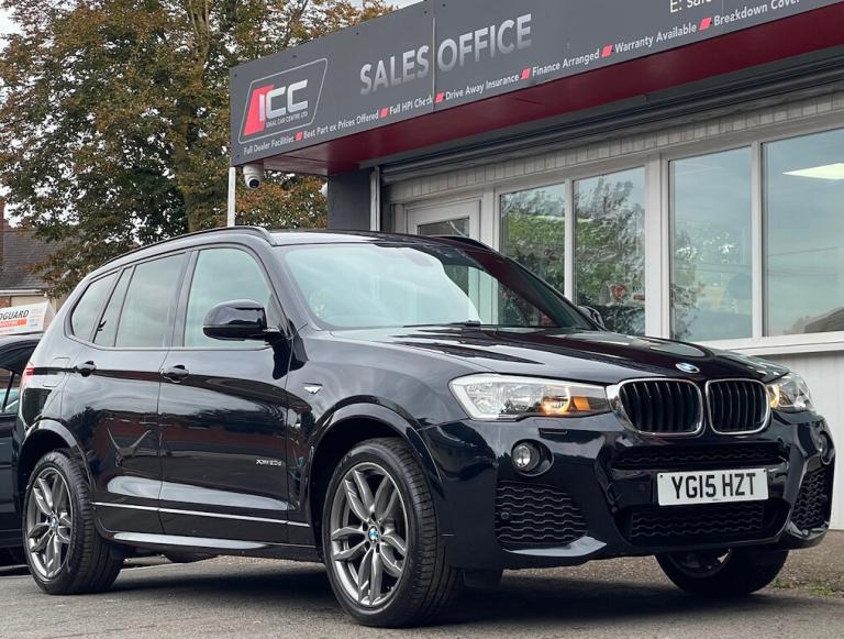General Vehicle Information Year: 2015 Make: BMW Model: X3 M SPORT Engine Size: 2.0L Transmission: AUTOMATIC Body Style: SUV Fuel: DIESEL MPG: 57.6 BHP: 187 Registration: YG15HZT Current Mileage: 57,595 Number of previous owners: 2 Number of keys:2 V5 Doc: Present MOT Expiration Date: New 12 month MOT Service History: Present Road Tax per year: £195.00 Euro Emission Standard: EURO 6 Don't let it get away! Hold this vehicle with a fully refundable £99 deposit reserve online or call and speak to our sales manager READY TO DRIVE AWAY Vehicle Specification: Top 5 Features: LED HEADLIGHTS MULTI-FUNCTION STEERING WHEEL FULL LEATHER SEATS HEATED SEATS CRUISE CONTROL Exterior Spec: BLACK GRILLE PRIVACY GLASS ROOF RACK FOG LIGHTS REAR HEATED WINDSCREEN SPOILER SHARK FIN ANTENNA Interior Spec: PADDLE SHIFTERS DAB RADIO ELECTRIC HANDBRAKE service history: Vehicle Purchase Price: £13,495.00 Full Dealer Facilities Buy with confidence All of our vehicles undergo a comprehensive multi-stage quality and safety assurance inspection, ensuring each vehicle meets our high preparation standards before they go on sale. Every aspect of your vehicle is inspected, including: Vehicle Exterior Bodywork, Vehicle Interior Condition, Brake Discs, Pads, Shoes & Drums, Oil Leaks, Gearbox Operation, Steering, Suspension, Engine Performance, Exhaust Condition, Wheel Balance/Tracking Tyre Depths & Pressures, Electrical Systems, Road Test, Many more. Will also come with a up to date service and new 12 month MOT if required. Buy a car online from the comfort of your home No matter where you are, we’ve made it really easy to buy a car online in 3 simple steps. 1:Choose your car Reserve online for £99 or speak to our contact center you can also request a personalized video. 2:Paperwork and payment made easy Complete your deal online, including part-exchange and any finance. 3:Choose your delivery option Contactless Click & Collect and home delivery available. FOR MORE INFO PLEASE CALL OUR SALES TEAM We are open 6 days a week Monday- Saturday 9:00am till 6:00pm. Appointments only Click and Collect Service Available Open to Inspection and Viewing HPI Checks Done on all Vehicles Nationwide Delivery Available England, Scotland and Wales Extended Warranty Available up to 6,12 or 24 Months Warranty policies to suit our individual needs. Talk to one of our highly trained sales Managers to decide what suits you best. Driveaway Cover Available Part Exchange Available Brake down cover Available For more information please call our office on [Phone number removed] or 01902497727 or visit our website / social media @idealcarcentreltd for more photos and info.. 12V Power Socket - Centre Console,12V Power Socket - Luggage Compartment,19in Alloy Wheels - Light M Double-Spoke Style 622M,ABS - Anti Lock Braking System,ASC - Automatic Stability Control,Additional Detachable Cupholder,Air Conditioning - Automatic with Two-Zone Control,Air Microfilter,Airbags - Driver,Airbags - Driver and Front Passenger Side,Airbags - First and Second Seat Row ITS Head,Airbags - Passenger,Airbags - Passenger Deactivation,Alarm System Thatcham 1 with Remote Control,Ambient Interior Lighting,Anti Roll Bars - Front and Rear,Armrest - Front with Storage Compartment,Automatically Dimming Rear View Mirror,Auxiliary Input,BMW Emergency Call,BMW Mobility System,BMW Navigation System,BMW Professional Radio - Single CD and MP3,BMW TeleServices,Bluetooth Hands Free with USB Audio Interface,Bootlid Operation - Powered,Brake Drying,Brake Fade Compensation,Brake Force Display,Brake Pre-Tensioning,CBC - Cornering Brake Control,Central Locking - Doors Boot Fuel Cap via Remote Key,Child Proof Locking System - Rear Doors,Child Seat ISOFIX Attachment - Rear,Courtesy Lights - Front and Rear with Soft On-Off Dimming,Crash Sensor - Activating Central Locking-Hazard Warning Lights-Fuel Cut Off,Cruise Control with Brake Function,DAB Digital Radio,DBC - Dynamic Brake Control,DSC - Dynamic Stability Control - Stabilises the Vehicle in Extreme Situations - Controls Traction,DTC - Dynamic Traction Control,Deformation Zones - Front and Rear,Door Handles - Body Colour,Door Mirrors - Drivers Aspheric,Door Mirrors - Electric and Heated and Aspheric,Door Sill Finishers - M Designation,Drive Performance Control,EBD - Electronic Brake-Force Distribution,Electric Windows - Front and Rear with Open-Close Fingertip Control,Electro Mechanical Parking Brake,Embellishers for Instrument Panel - Black High-Gloss,Engine Immobiliser,Exhaust Tailpipe - Finisher in Chrome,Exhaust Tailpipes - Twin Chrome,Exterior Trim - High-Gloss Shadowline,First Aid Kit,Floor Mats - Velour,Follow Me Home Headlight Function,Footwell Lights - Front,Front Fog Lights,Glove Compartment - Illuminated,Grab Handles with Four Coat Hooks,HDC - Hill Descent Control,Head Restraints - Front and Rear,Head Restraints - Height and Angle,Headlights - Automatic Activation,Headlights - Height
