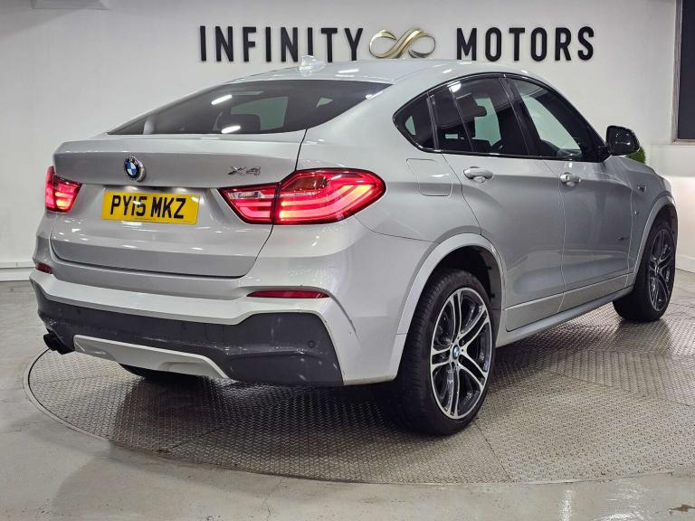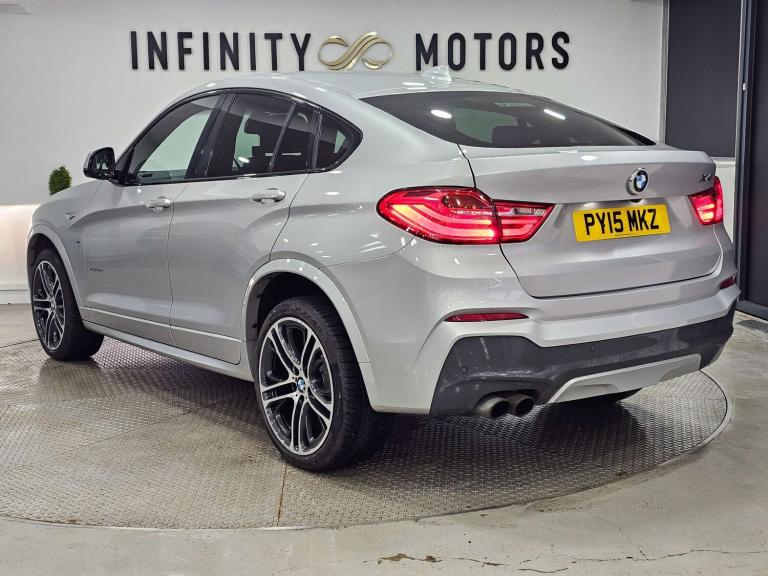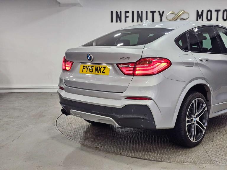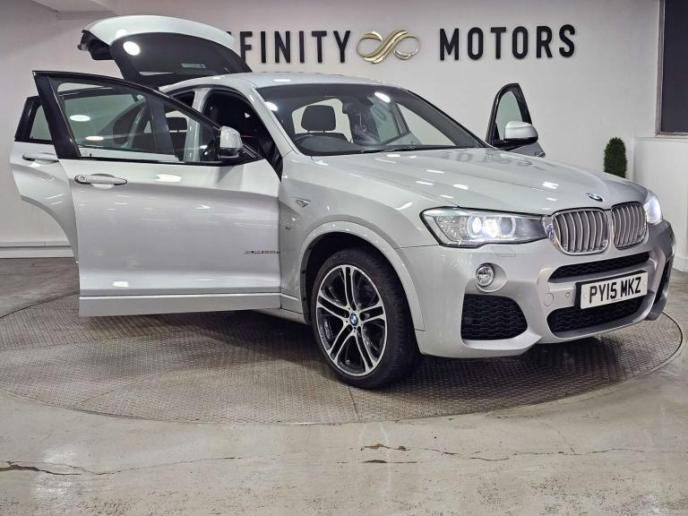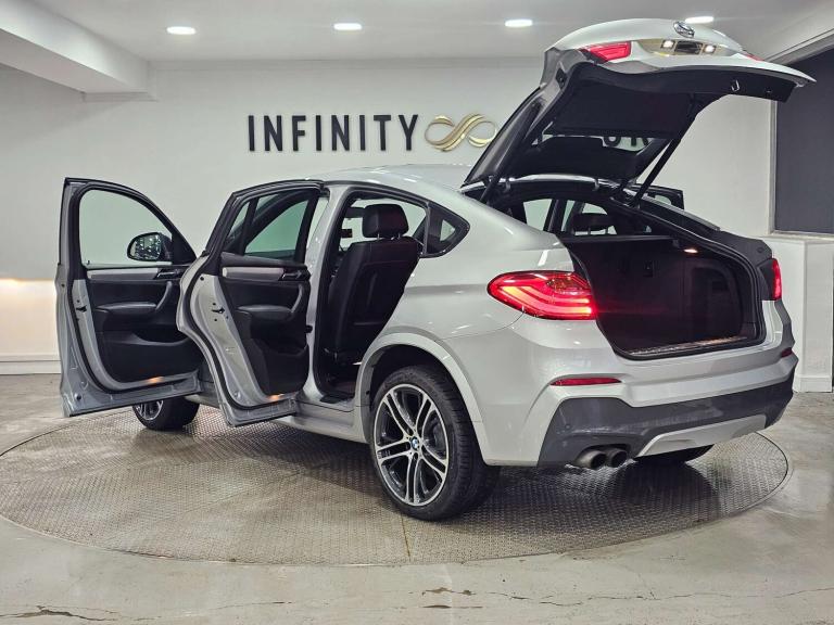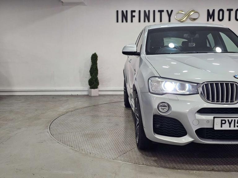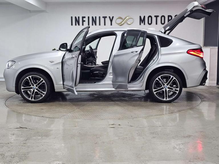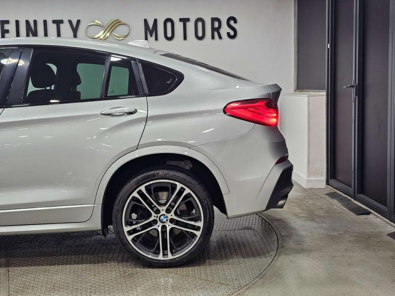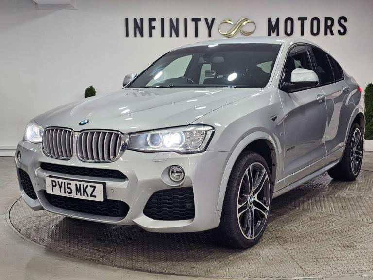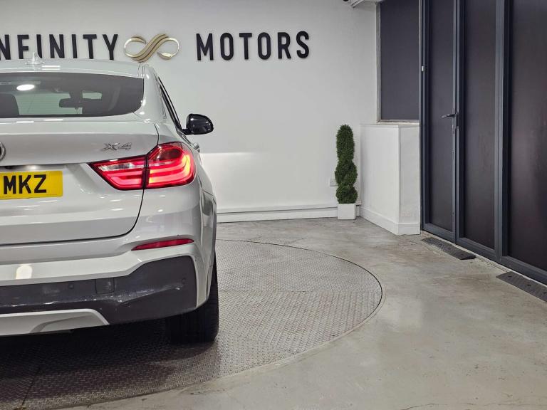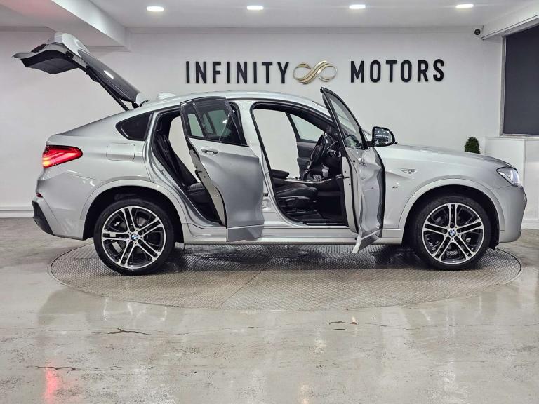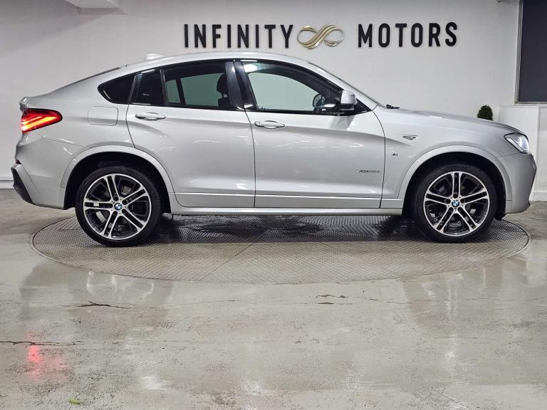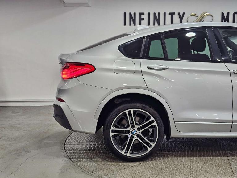 Infinity Motors presents the stunning BMW X4 3.0 xDrive 30d M Sport Auto 4WD 5dr. This exceptional vehicle has had 3 owners and is finished in a sleek Silver colour, making it a true head-turner on the road.Spec: Leather interior, Newly refurbished 20 inch multispoke alloys, Bluetooth, Cruise control, Satnav, Parking sensors, Heated seats, Xenon headlights, Reversing Camera and much more (please see EXTRA FEATURES section for full list)History: It will come with a standard three month engine and gearbox warranty - comes with service history. Serviced at the following intervals: 11,264 miles, 19,928 miles, 30,591 miles, 58,705 miles, 88,628 miles, 91,104 miles, 91,200 miles. HPI clear. Additional services: Extendable warranty up to 2 years available, nationwide delivery (T&Cs apply), finance available, bespoke virtual viewings can be arranged at request, viewing by appointment only. Please speak to a member of our team for any additional charges. All of our cars now come with free MOT's for life*• Terms and conditions apply.**please call to verify the exact specifications and features of the car**