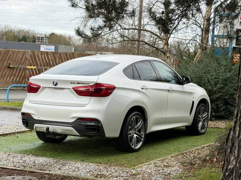The BMW X6 Takes BMWs Ever Popular X5 Platform and Makes it More Aggressive, Sleeker and with Body Lines to Impress. In Addition to the Sporty Looks it Delivers on Specification too with Luxury and Technology in Equal Measures. The Exterior Presented in Mineral White Offers Twin Chrome Opposing Tailpipes, Front and Rear Parking Sensors, Privacy Glass, 21 Inch Alloy Wheels, a Tow bar and a Power Tailgate. To the Interior we Find Heated Dakota Black Leather Seats, Cruise Control, Dual Digital Climate Control, Keyless Start, a Black Headlining, Electric Windows, Electric Wing Mirrors, Automatic Headlights and Automatic Windscreen Wipers. The Vehicles Infotainment System Delivers Radio/CD, Bluetooth Audio, Bluetooth Telephone Preparation, Reverse Camera and Satellite Navigation. This Vehicle also Benefits from BMW Service History with a Fulk BMW Service just Completed 2 Keys and an MOT Until April 2026 Competitive finance options are available, and part exchange vehicles are welcome. A complimentary three months warranty is subject to age and mileage restrictions. Extended Warranties for 6, 12 and 24 months are available to purchase, which include breakdown assistance and unlimited repairs up to the value of the car. Please ask for pricing. Information provided has been taken from 3rd party sources, and we cannot ensure the accuracy of details and features. Please check yourself and ask a salesperson for more information..12V Power Socket - Front x2, 12V Power Socket - Luggage Compartment, 20in Alloy Wheels - Light M Double Spoke Style - 468M, 40-20-40 Split Folding Rear Seats, ABS - Anti Lock Braking System, Adaptive M Sport Suspension, Air Conditioning - Automatic with Two-Zone Control, Airbags - Curtain, Airbags - Driver, Airbags - First and Second Seat Row ITS Head, Airbags - Front Side, Airbags - Passenger, Airbags - Passenger Deactivation, Alarm System Thatcham 1 with Remote Control, Armrest - Front with Storage Compartment, ASC - Automatic Stability Control, Automatically Dimming Rear View Mirror, Auxiliary Input, Bluetooth Hands Free Facility, BMW Apps Interface, BMW ConnectedDrive Online Services, BMW Emergency Call, BMW Professional Radio - Single CD and MP3, BMW TeleServices, Brake Drying, Brake Fade Compensation, Brake Force Display, Brake Pre-Tensioning, CBC - Cornering Brake Control, Central Locking - Remote, Child Proof Locking System - Rear Doors, Child Seat ISOFIX Attachment - Rear x2, City Collision Mitigation, Crash Sensor - Activating Central Locking-Hazard Warning Lights-Fuel Cut Off, Cruise Control with Brake Function, Cup Holders - Front and Rear, DAB Digital Radio, Dakota Leather - Black with Black Interior, Daytime Running Lights, DBC - Dynamic Brake Control, Deformation Zones - Front and Rear, Door Handles - Body Colour, Door Handles - Exterior Puddle Lights, Door Mirrors - Ferric Grey Housing, Door Mirrors - Folding - Automatically Dimming, Door Sill Finishers - M50d Designation, Driving Assistant, DSC - Dynamic Stability Control Plus, DTC - Dynamic Traction Control, EBD - Electronic Brake-Force Distribution, Electric Windows - Front and Rear with Open-Close Fingertip Control, Electro-Mechanical Parking Brake with Auto-Hold Function, Exhaust Tailpipes - Stainless Steel with Black Chrome Finishers Left and Right, Exterior Trim - High-Gloss Shadowline, First Aid Kit, Floor Mats - Velour, Follow Me Home Headlight Function, Forward Collision Warning System, Glove Compartment - Lockable and Illuminated, HDC - Hill Descent Control, Head Restraints - Front and Rear, Headlights - Automatic Activation, Headlining - Anthracite, Heated Windscreen Washer Jets, High Level Third Brake Light, Hill Start Assist, iDrive Controller with Shortcut Buttons, Interior Trim - Aluminium Hexagon, Internet Access, Kidney Grille - Matt Aluminimum with Black Vertical Slats, Lane Departure Warning System, LED Fog Lights - Front, Locking Wheel Bolts, Mineral White, Multifunctio