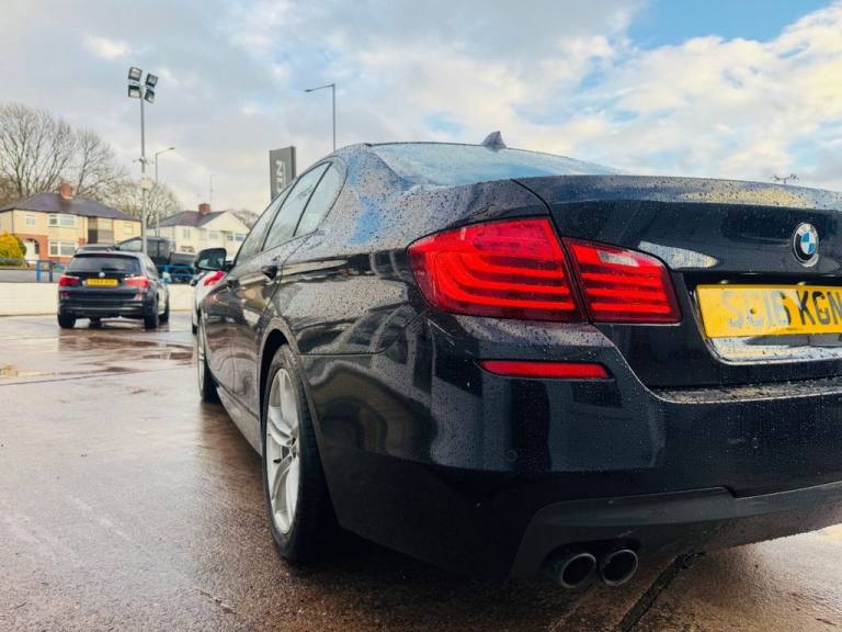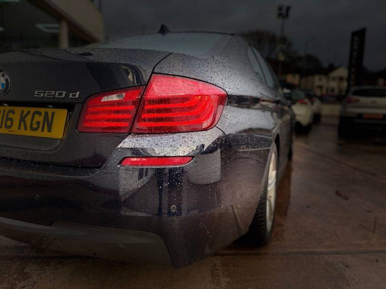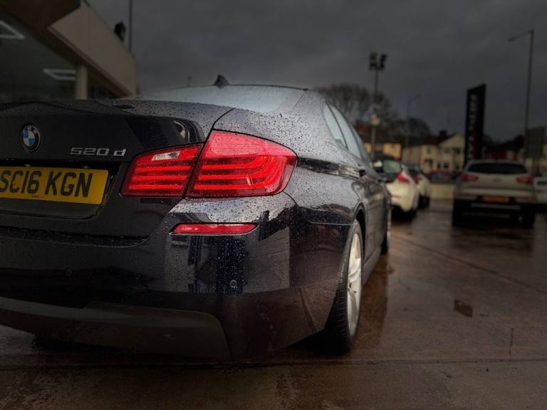 BMW 5 Series 2.0 520d M Sport Saloon 4dr Diesel Auto Euro 6 (s/s) (190 ps) Registration: SC16KGN 98,000 miles Service History Carbon Black A smart and well-presented BMW 520d M Sport saloon offering strong diesel performance, refined driving manners and executive comfort. Powered by the efficient 2.0 litre diesel engine producing 190 ps and paired with a smooth automatic gearbox, this 5 Series delivers effortless motorway cruising with excellent fuel economy. Fully Euro 6 compliant and ULEZ friendly. Key Features 2.0 litre diesel engine producing 190 ps Automatic transmission M Sport styling and interior enhancements Euro 6 - ULEZ compliant Drive mode select Touchscreen infotainment system with navigation Bluetooth and media connectivity Dual zone climate control Sport seats and M Sport steering wheel LED headlights Spacious and refined executive saloon layout Optional Equipment Carbon Black metallic paint Remote Services Warranty Warranty packages available for additional cost. HPI & Finance HPI clear. Finance available with flexible packages. Part exchange welcome. Dealer Statement Nationwide delivery available. Get in touch for a walk-around video, test drive or more information. *Preparation fee £199 added to the list price of the vehicle. The BMW 5 Series is ideal for drivers seeking a comfortable and capable executive saloon, offering excellent long-distance comfort, strong efficiency and a premium driving experience. With M Sport styling and smooth automatic performance, it remains a superb choice for both business and everyday use..12V Power Socket - Front, 12V Power Socket - Rear of Centre Console, 18in Alloy Wheels - Light M Double Spoke Style - 613M, 6.5in Colour Display Screen, Air Conditioning - Automatic - Dual Zone Control, Airbags, Alarm System - Thatcham 1 with Remote Control and Engine Immobiliser, All Round Anti-Corrosion System with Partial Hot Galvanising - Phosphate Treatment and Cathodic Dip Paintwork - Preservation of Hollow Cavities - Underfloor Protection, Armrests - Front and Rear - Centre with Storage Compartments, Automatic Start-Stop Button, Automatically Dimming Rear View Mirror, Auxiliary Input, BMW ConnectedDrive Online Services, BMW ConnectedDrive Services, BMW Emergency Call, BMW Professional Radio - Single CD and MP3, BMW TeleServices, Battery in Luggage Compartment with Jump Start Facility in Engine Bay, Bluetooth Hands Free with USB Audio Interface, Brake Callipers - Aluminium - Front and Rear, Brake Pad Wear Indicator, Check Control Warning System, Child Locking System - Rear Doors, Child Seat ISOFIX Attachment - Two in Rear, Courtesy Lights - Front and Rear with Soft On-Off Dimming, Crash Sensor, Cruise Control with Brake and Speed Limiting Function, Cup Holders - Front and 2x Rear, DAB Digital Radio, DSC - Dynamic Stability Control Plus, Daytime Running Lights, Deformation Zones - Front and Rear, Door Sill Finishers - M Designation, Double-Wishbone Suspension - Front, Drive Performance Control with ECO PRO - Comfort and Sport Modes, Dynamic Brake Lights, EPS - Electric Power Steering with Servotronic, Electric Windows - Front and Rear with Open-Close Fingertip Control - Anti-Trap Facility and Comfort Closing Function, Electro Mechanical Parking Brake, Exhaust Tailpipes - Single - Left and Right - Dark Chrome, Exterior Mirrors - Aspheric - Heated with Electric Adjustment, Exterior Parts in Body Colour - Bumpers-Side Sills-Door Handles-Exterior Mirror Housing, Exterior Trim - High Gloss Shadowline, Favourite Buttons, First Aid Kit and Warning Triangle, Floor Mats - Velour, Fogging Sensor - Front Windscreen, Footwell Lights - Front, Full Black Panel Display, Glove Box, Headlight Range Control - Electric, Headlight Wash, Headlining - Anthracite, Incorrect Fuelling Protection System, Indicator Lenses - Clear, Integral Rear Axle, Interior Trim - Aluminium Hexagon, Keyless Starting of Engine Ignition, Kidney Grille - Chrome with Chrome Fronted and Black Sided Vertical Slats, LED Fog Lights - Front, Locking Wheel Bolts, Loudspeaker System with Six Speakers, L