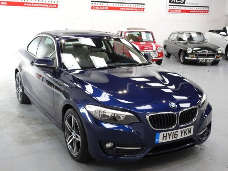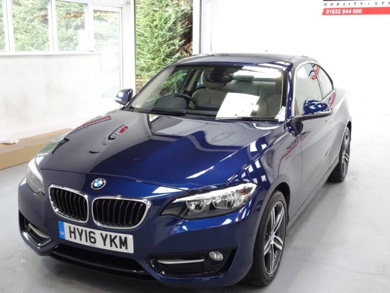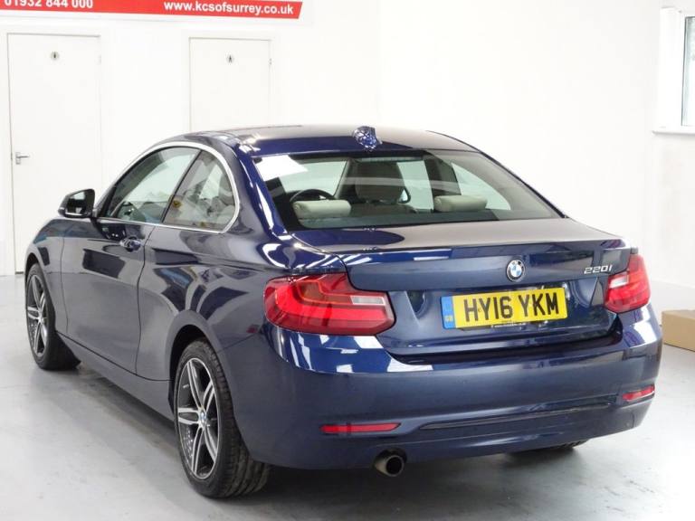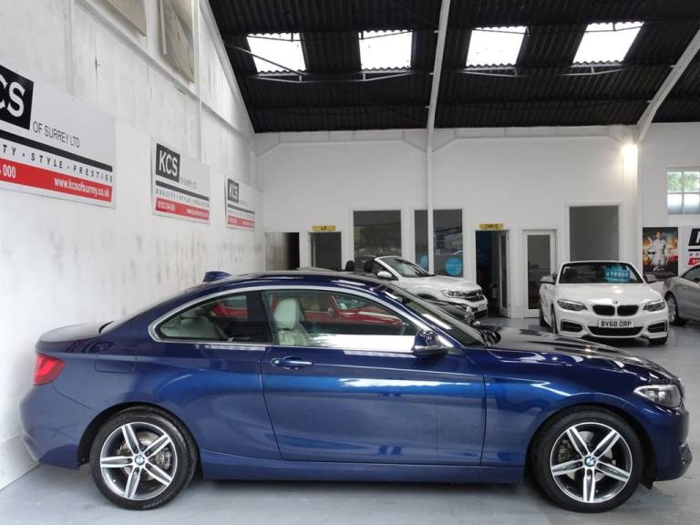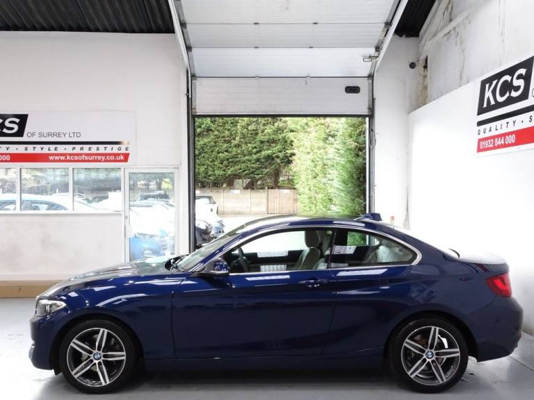 This vehicle may not always appear on Autotrader due to our rotating listings. For a full up to date stock list please visit our website. Before you RESERVE, a quick call to our team on 01932 844000 will confirm availability and make sure the vehicle is ready for you. FINANCE THIS VEHICLE WITH US. We Provide Affordable Finance Options with Low Competitive Rates. INDOOR SHOWROOM. We Have Been at This Exact Same Location for OVER 25 YEARS. Please Read Our Online EXCELLENT REVIEWS. KCS Of Surrey are delighted to offer this BMW 220i Sport Coupe . Finished in Blue with Oyster Dakota Leather Sports Seats. This model has all the benefits of the Sport specification with a host of refinements to include. Navigation System / Parking Sensors / Heated Front Seats / Bluetooth Hands Free Phone Connection / Multi Function Steering Wheel / DAB Digital Radio . This Vehicle is supplied with a complete Multi-Point Inspection Mechanical Check. Contact our sales team to discuss all our finance options & arrange an appointment to view & test drive. RESERVE THIS VEHICLE With NO OBLIGATION & View More Photos On Our Website We Are 5 Minutes from J11 M25. We are 10 Minutes from M3 & A3. We are 20 Minutes from Heathrow Airport..Navigation System , Heated Front Seats , Parking Sensors , Bluetooth Phone Connection , DAB Radio , Automatically Dimming Rear View Mirror, Dakota Leather - Oyster with Dark Oyster Highlight with Black Interior, Deep Sea Blue, Door Mirrors - Folding - Automatically Dimming, Enhanced Bluetooth Telephone Preparation with USB Audio Interface and Voice Control, Exterior Trim - Chromeline, Interior Trim - Fineline Stream Wood, PDC - Park Distance Control - Front and Rear, Seats - Front Heated