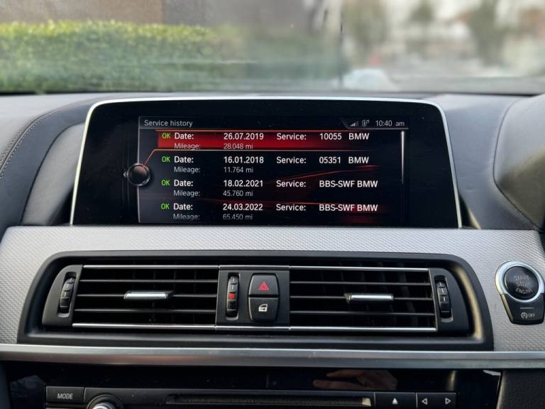 HERE WE HAVE A STUNNING BMW 640 BACKED WITH ITS FULL SERVICE HISTORY INCLUDING A RECENT SERVICE AND 12 MONTHS MOT, VERY WELL MAINTAINED, LOVELY SPEC++CINNAMON BROWN LEATHER INTERIROR++REAR HEATED SEATS++FRONT HEATED SEATS++360 CAMERA++PRO NAV++6WB VIRTUAL DASH++ELECTRIC MEMEORY SEATS++BLUETOOTH++ELECTRIC FOLDING MIRRORS++12 MONTHS AA BREAKDOWN COVER INCLUDED, WARRANTY INCLUDED, FINANCE AVAILABLE APPLY WITHIN, HPI CLEAR, 2 KEYS.19in Alloy Wheels - Light M Double Spoke Style - 351M, 20GB HDD Memory, 60-40 Split-folding Rear Seat with Through-loading, Air Conditioning - Automatic with Two-zone Control with Extended Features, Airbags, Alarm System - Thatcham 1 with Remote Control and Engine Immobiliser, Ambient Interior Lighting, Armrests - Front and Rear - Centre with Storage Compartments, Automatic Start-Stop Button, Automatically Dimming Rear View Mirror, Auxiliary Input Point for Auxiliary Playing Devices, Battery in Luggage Compartment with Jump Start Facility in Engine Bay, BMW ConnectedDrive Online Services, BMW ConnectedDrive Services, BMW Emergency Call, BMW Professional Radio with Single CD Player - MP3 and DVD Playback Compatibility, BMW TeleServices, Brake Callipers - Black - Front and Rear, Brake Pad Wear Indicator, Check Control Warning System, Child Seat ISOFIX Attachment - Two in Rear, Concierge Service, Contrast Stitching, Control Display - 10.2in High-resolution Flat Screen Colour Display, Courtesy Lights - Front and Rear with Soft On-Off Dimming, Cruise Control with Brake and Speed Limiting Function, Cup Holders - Front and Rear, DAB Digital Radio, Dakota Leather - Cinnamon Brown with Black Interior, Daytime Driving Lights - Four White LED Corona Rings, Deformation Zones - Front and Rear, Door Sill Finishers - BMW Designation - Chrome Plated - Illuminated, Double-Wishbone Suspension - Front, Drive Performance Control with ECO PRO - Comfort and Sport Modes, DSC - Dynamic Stability Control Plus, Dynamic Brake Lights, Dynamic Safety, Electric Windows - Front and Rear with Open-Close Fingertip Control - Anti-Trap Facility and Comfort Closing Function, Electro Mechanical Parking Brake, Enhanced Bluetooth Telephone Preparation with Wireless Charging, EPS - Electric Power Steering with Servotronic, Exhaust Tailpipes - Single - Left and Right - Dark Chrome, Exterior Mirror Housing in Body Colour - Mirror Base and Bottom Part of Mirror Housing in Black, Exterior Mirrors - Aspheric - Heated with Electric Adjustment, Exterior Mirrors - Folding - Automatically Dimming with Integrated Side Turn Indicators, Exterior Parts in Body Colour - Bumpers-Side Sills-Door Handles, Exterior Trim - High Gloss Shadowline, Favourite Buttons, First Aid Kit and Warning Triangle, Floor Mats - Velour, Fogging Sensor - Front Windscreen, Footwell Lights - Front, Front Air Inlet Surrounds - Chrome, Front Fog Lights - LED with High Gloss Black Accent, Glove Box, Head Restraints - Front Anti-Whiplash