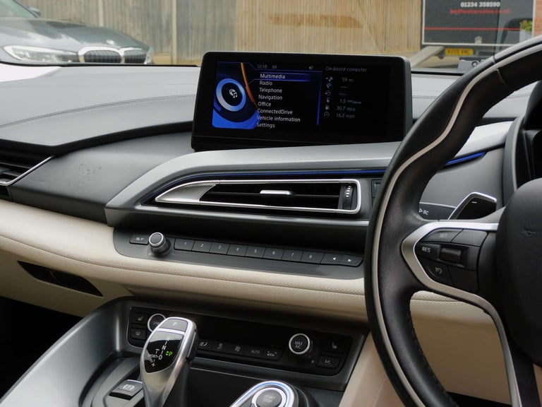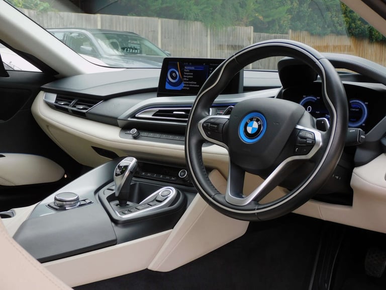 We are pleased to offer this stunning BMW i8 Coupe finished in a Matt grey wrap. Powered by a 1.5 litre petrol hybrid engine producing 357 bhp with an automatic 6 speed gearbox. This vehicle also has 3 previous owners and comes with 2 keys and full service history. Included with the sale is 6 months premium warranty, 12 months MOT, 12 months breakdown cover & a fresh service. We offer very competitive £0 deposit finance options starting at 8.9% with Evolution Funding. We accept all part exchanges and offer FREE delivery up to 100 miles in our Brian James enclosed trailer.*We’d say the wrap condition is a 8/10, we would recommend coming to view the vehicle in person. It’s a stunning car but there are 1 or 2 blemishes to the wrap**The spec on this vehicle is; 20-inch Turbine style spoke alloy wheels, Harman Kardon sound system, Keyless entry & keyless start, Heated front seats, Head up display, 360-degree camera with park assist, Electric front seats, Dual automatic climate control, edrive exterior sound package, Auto lights & auto wipers, Paddle shift gear change, Cruise control, Satellite navigation system, DAB digital radio, Bluetooth with media connectivity, Electric parking brake.If you have any questions please do not hesitate to contact us! Thanks for viewing.