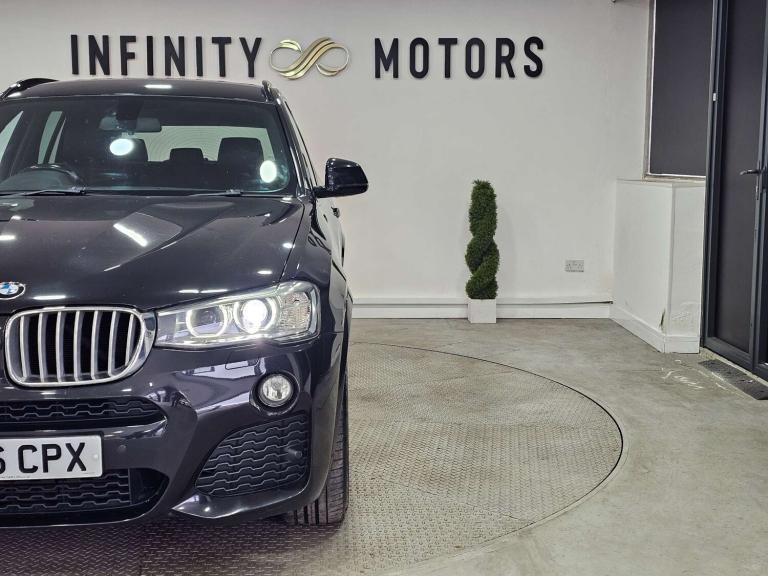 Infinity Motors presents the stunning BMW X3 in sleek Black Sapphire finish. This top-of-the-line model comes fully loaded with extras including 20-inch Alloy Wheels, Enhanced Bluetooth Telephone Preparation, Harman Kardon Speaker System, and Xenon Headlights for a truly luxurious driving experience.Spec:- Leather interior - 20 inch multispoke alloys- Bluetooth, Cruise Control, Parking sensors, Satnav, Xenon headlights, Front and Rear Heated seats, Powered boot and much more (please see EXTRA FEATURES section for full list)History: It will come with a standard three month engine and gearbox warranty. Comes with service history. Serviced at the following intervals: 55,183 miles, 71,726 miles, 88,708 miles. HPI clear. Additional services: - Extendable warranty up to 2 years available- Nationwide delivery (T&Cs apply)- Finance available- Bespoke virtual viewings can be arranged at request- Viewing by appointment only. Please speak to a member of our team for any additional charges. All of our cars now come with free MOT's for life*• Terms and conditions apply.**please call to verify the exact specifications and features of the car**