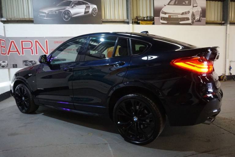 28/10/2016 66 Reg BMW X4 3.0d X Drive 8 speed automatic. Genuine 116K miles with full BMW service history (10 BMW services on the Idrive system) 2 Owners, 2 Keys, Totally unmarked Carbon Black Metallic with full Black heated M Sport leather interior, 21" Alloy wheels, Pro media, Sun protection glass, electric folding door mirrors, Just been serviced, MOT expires March 2026, Looks and drives fantastic. VIEWINGS BY APPOINTMENT ONLY. Part exchange a pleasure, warranties available, Please read our 5 Star dealer reviews for total peace of mind and buying confidence. PLEASE CALL BEFORE YOU TRAVEL TO AVOID DISAPPOINTMENT, 01949 850220 or 07973 309021. Email [Email address removed. Click Email button to contact us.] .Exterior Mirrors - Automatically Dimming, Loudspeaker System - Harman Kardon, M Sport Design Package, Media Package - BMW Professional, 20in Alloy Wheels - Light M Double-Spoke, 20in Alloy Wheels - Light M Double-Spoke Style 310M, Air Conditioning - Automatic - Dual Zone, Airbags, Alarm System - Thatcham 1 with Remote Control and Engine Immobiliser, Aluminium Effect, Ambient Lighting, Anti Roll Bars - Front and Rear, Armrest - Front with Storage Compartment, Armrest - Rear Centre, Automatically Dimming Rear View Mirror, Auxiliary Input Point for Auxiliary Playing Devices, B Pillar - Black Mat, BMW ConnectedDrive Online Services, BMW Emergency Call, BMW Navigation System, BMW TeleServices, Bluetooth Hands Free with USB Audio Interface, Brake Force Display, Central Locking for Doors Boot and Fuel Flap Activated via Remote Key or Cabin Switch, Child Locking System - Rear Doors, Child Seat ISOFIX Attachment - Rear, Courtesy Lights - Front and Rear with Soft On-Off Dimming, Cruise Control with Brake Function, Cup Holders - Centre Console with Roll Cover, DAB Digital Radio, DSC - Dynamic Stability Control with Extended Contents, Deformation Zones - Front and Rear, Door Handles - Body Colour, Door Sill Finishers - M Designation, Door Sill Finishers - xLine Designation, Drive Performance Control - ECO PRO - Comfort - Sport - Sport Plus, Electric Windows - Open and Close Fingertip Control, Electro Mechanical Parking Brake, Embellishers for Instrument Panel - Black High-Gloss, Exhaust - Dual with Chrome Finisher, Exterior Mirrors in Body Colour, Exterior Trim - High-Gloss Shadowline, Exterior Trim - Satin Aluminium, First Aid Kit and Warning Triangle, Floor Mats - Velour, Follow Me Home Headlight Function, Footwell Lights - Front, Glove Compartment - Illuminated, Grab Handles with Coat Hooks, HDC - Hill Descent Control, Head Restraints - Front and Rear, Headlights - Height Adjustment, Headlights - Washer System, Headlining - Anthracite, Heated Windscreen Washer Jets, High Level Third Brake Light, Incorrect Fuelling Protection System, Interior Trim - Brushed Aluminium, Kidney Grille - Chrome with Satin Aluminium Vertical Slats, LED Fog Lights - Front, Luggage Compartment - Illuminated with Four Lashing Eyes in Boot Floor, Luggage Compartment - Retractable and Removeable Cover, M Aerodynamic Bodystyling, M Leather Steering Wheel with Gearshift Paddles, M Sport Package, Model Designation, OBC - On-Board Computer, PDC - Park Distance Control - Front and Rear, Power Stee