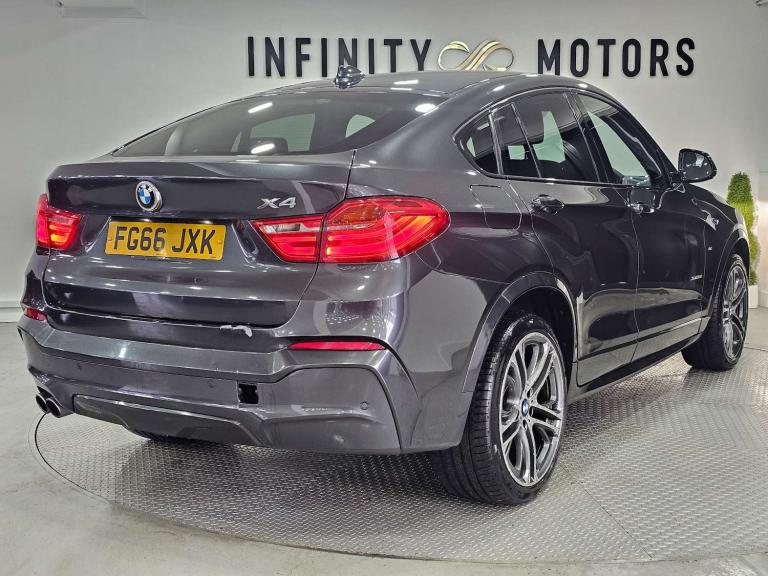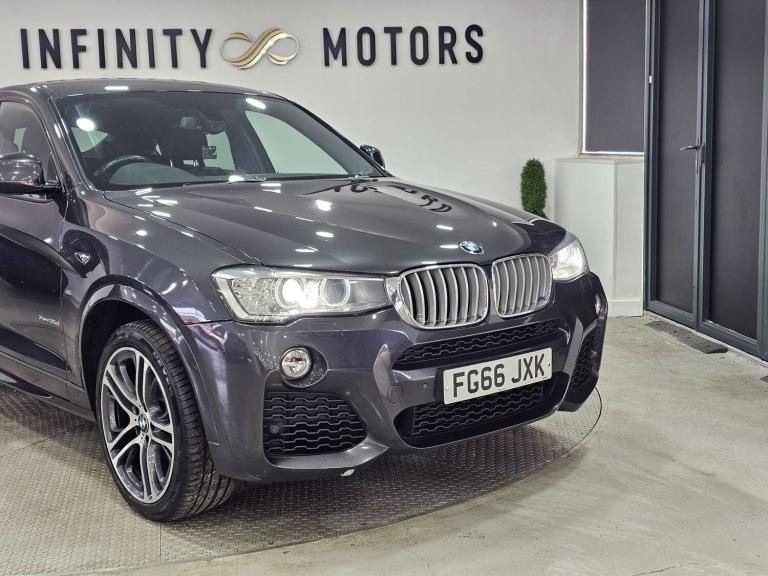 Infinity Motors presents the stunning Bmw X4 3.0 X4 xDrive 35d M Sport Auto 4WD 5dr, a true masterpiece on wheels. With a sleek Grey finish and a host of luxurious extras, this vehicle is sure to turn heads wherever you go.Spec: Leather interior, 20 inch multispoke alloys, Bluetooth, Cruise control, Parking sensors, Satnav, Heated seats, Xenon headlights and much more (please see EXTRA FEATURES section for full list)History: It will come with a standard three month engine and gearbox warranty. HPI clear. Additional services: Extendable warranty up to 2 years available, nationwide delivery (T&Cs apply), finance available, bespoke virtual viewings can be arranged at request, viewing by appointment only. Please speak to a member of our team for any additional charges. All of our cars now come with free MOT's for life*• Terms and conditions apply.**please call to verify the exact specifications and features of the car**