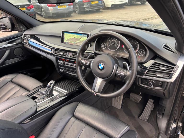 Proudly presenting a rare opportunity to acquire a fully loaded, Meticulously Maintained and Stunning Looking BMW X5 3.0 30D M Sport Auto xDrive Euro 6 Editon. A Unique and rare Example Boasting a Huge Specification With over 12,000 of Options Above The Standard Spec.Meticulously maintained with a fully documented service history from new all by BMW main dealer showing 10 services with BMW in total. Matching Premium Continental tyres all round. Comes complete with the exterior M Performance styling pack. Just Undergone Our Specialist Multi-Stage Full Vehicle Detail and now ready to go for same day drive away. Spec Includes: Sapphire Black metallic paint, M performance Body-Styling & Interior Design, LED Xenon headlights, High-gloss Shadow-line exterior pack, 20'' Gloss black Alloy Wheels, Privacy glass, BMW Individual Paino Blackk inlays, Comfort Seats, keyless engine start with stop-start function, Rear Privacy Glass, 360 degrees surround camera including reverse camera and sound aid, heated Leather Steering Wheel, Lane-change warning system, cold weather package, Black Sports Leather Interior, front and rear Heated Seats With Electric front bolsters, electric and 3 way memory function seats, Advanced Media Feat: CD+MP3+USB+AUX+D.A.B Radio+DVD, Bluetooth Mobile Handsfree, Connected Services Drive With Online & Mobile Care Assistant, Internet, Advanced iDrive & Onboard Computer, Cruise Control, Driver Performance Control with Dynamic sports, variable off-road and Eco-Pro mode, Auto Light & Auto Wipers, Electric folding door mirrors and Lots More. Ensuring complete peace of mind this vehicle comes with 3 months parts and labour Warranty, Low-Cost Finance Options Part/Ex Welcome - Reserve With a Small Deposit - Nationwide delivery available