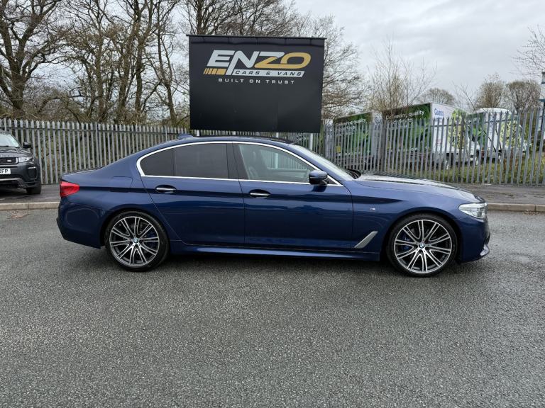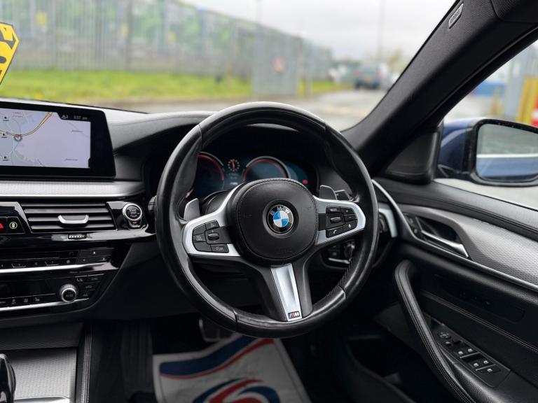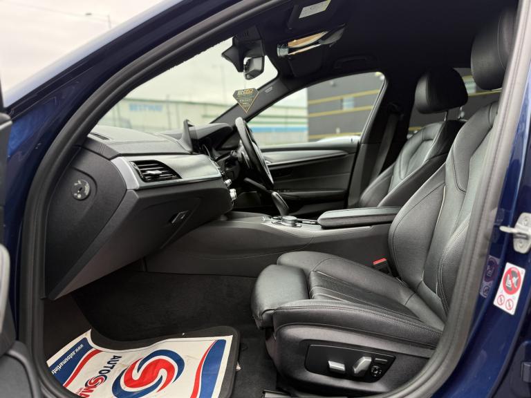 This 2017 17 reg BMW 530D M Sport comes in Mediterranean Blue with 150,000 miles. It is powered by a 3.0L diesel engine paired with an automatic gearbox, delivering strong performance with excellent comfort and efficiency. Key features include 19in M Sport alloy wheels, M aerodynamic body styling, high gloss shadowline trim, LED headlights, and sun protection glazing. The interior is finished with black Dakota leather, heated front seats, electric seats with driver memory, ambient lighting, digital cockpit, and dual-zone climate control. Technology includes BMW Professional Navigation with 10.25in display, Bluetooth with wireless charging, DAB radio, WiFi hotspot preparation, and premium Harman Kardon sound system. Driver assistance features: front and rear parking sensors, reversing camera, cruise control with brake function, drive modes, and tyre pressure monitoring system. Safety features: Active Guard, DSC stability control, multiple airbags, ISOFIX points, and Thatcham alarm system. A high spec M Sport saloon with strong performance and comfort. Runs and drives very well. £10,995. Nationwide delivery available.