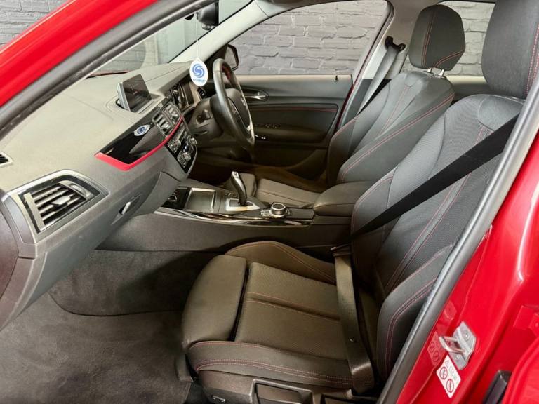 2017 67 BMW 1 SERIES 2.0 TURBO DIESEL 118D SPORT 150 PS AUTOMATIC EURO 6 - ULEZ COMPLIANT. A WELL PRESENTED EXAMPLE ON OFFER IN MELBOURNE RED METALLIC WITH VERY LOW MILES OF JUST 13849, FULL BMW SERVICE HISTORY ON THE I DRIVE, ONLY 2 OWNERS FROM NEW AND 2 REMOTE KEYS!! SPECIFICATIONS INCLUDE ALLOY WHEELS, 8 SPEED AUTO GEARBOX, REAR PARKING SENSORS, SATELLITE NAVIGATION, TINTED GLASS, AIR CONDITIONING, AUTO CLIMATE CONTROL, AUTOMATIC LIGHTS, AUTOMATIC WIPERS, AUX & USB PORTS, BLUETOOTH, DAB RADIO, MEDIA CONNECTIVITY, CRUISE CONTROL WITH SPEED LIMITER AND TRACTION CONTROL. SUPPLIED WITH 12 MONTHS MOT INCLUDING A PRE DELIVERY SERVICE AND INSPECTION. WE CAN OFFER BESPOKE FINANCE PACKAGES AND PART EXCHANGE FACILITIES. FOR MORE INFORMATION PLEASE CONTACT ELMBANK MOTOR COMPANY IRVINE. 2.0 TURBO DIESEL - 8 SPEED AUTOMATIC - VERY LOW MILEAGE - 150 PS - ULEZ COMPLIANT. Alloy Wheels & Metallic Paint, Satellite Navigation & Cruise Control, Auto Digital Climate Control, Rear Park Assist & Tinted Glass, Bluetooth & DAB Radio, 12V Power Socket - Centre Console, 12V Power Socket - Passenger Footwell, 17in Alloy Wheels - Light Double Spoke Star - 655, Active Differential Brake - ADB Sport - Electronic Differential Lock in DSC-Off Mode, Air Conditioning - Automatic - Single Zone, Airbags, Alarm System - Thatcham 1 with Remote Control and Engine Immobiliser, Ambient Lighting - Switchable BMW Classic Orange - Cold White - LED, Armrest - Front with Sliding Adjustment, BMW ConnectedDrive Online Services, BMW ConnectedDrive Services, BMW Emergency Call, BMW Navigation System, BMW Professional Radio - Single CD and MP3, BMW TeleServices, Battery Age Recognition Function, Battery Safety Cut Off, Bluetooth Hands Free with USB Audio Interface, Brake Pad Wear Indicator - Front and Rear, Bumper - Rear with High Gloss Black Finisher, Bumper System Front and Rear - Replaceable Deformation Elements for Impacts Up to 9mph, Central Locking Switch - Doors - Fuel Filler Cap - Luggage Compartment, Check Control Warning System for Monitoring of Lights and Door-Luggage Compartment Open Warning, Child Proof Locking System - Rear Doors, Child Seat ISOFIX Attachment for the Two Outer Rear Seats, Condition Based Service, Crash Sensor - Activating Central Locking Release - Hazard Warning Lights - Battery Safety Cut Off - Interior Lighting, Cupholders Two with Sliding Cover and Inlay Mat, DAB Digital Radio, DSC - Dynamic Stability Control Plus, Daytime Driving Lights, Direction Indicator - Side Repeaters - Integrated in Exterior Mirrors, Direction Indicator Lights - Clear Lenses, Door Sill Finishers - BMW Designation - Front, Drive Performance Control - ECO PRO - Comfort - Sport - Sport Plus Modes, Dynamic Brake Lights, ECO PRO Mode, Electric Windows - Front and Rear with Open-Close Fingertip Control - Anti-Trap Facility and Comfort Closing Function, Exhaust Tailpipe - Chrome - Dual - Round - Left, Extended Storage, Exterior Mirrors Electrically Adjustable, Exterior Parts in Body Colour, First Aid Kit and Warning Triangle, Floor Mats - Velour, Front Air Inlet with High-Gloss Black Finisher, Front Fog Lights, Glove Compartment, Glovebox - Handle with Chrome Surround, Grab Handles - Integrated in Roof Linings - Four, Halogen Headlights, Handbrake and Gear Knob - Leather, Head Restraints - Rear and Folding, Heat Protection Glazing with Gre