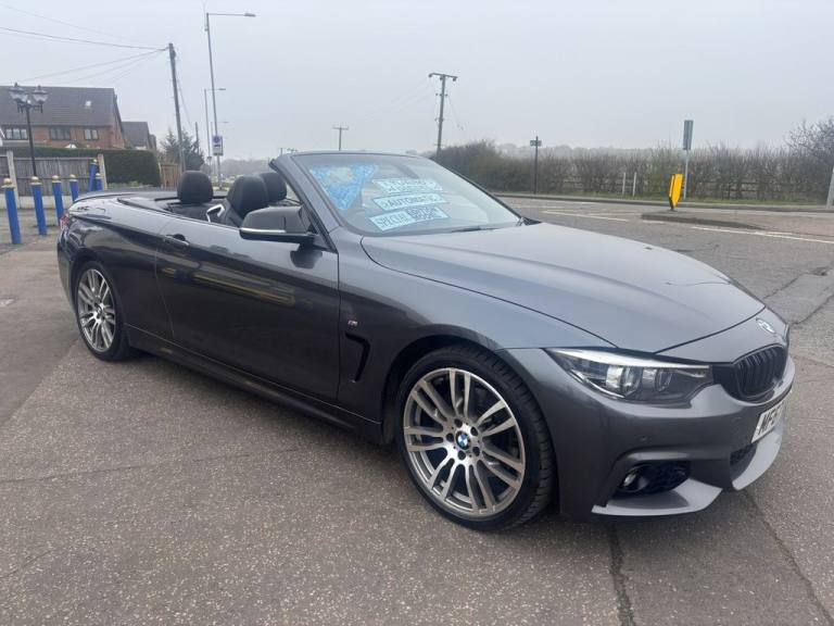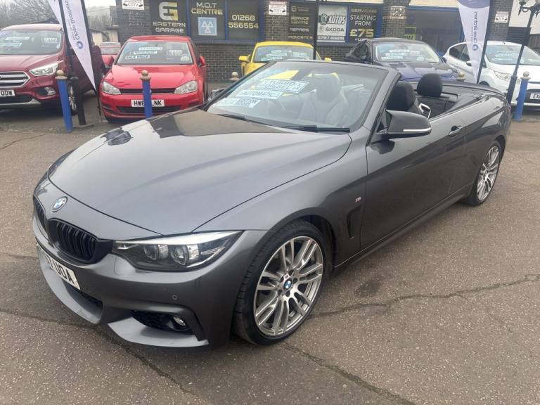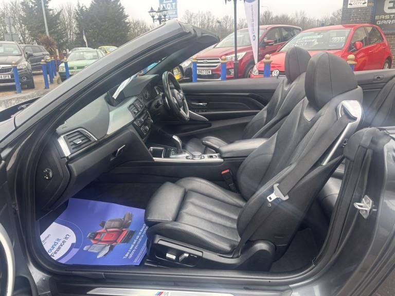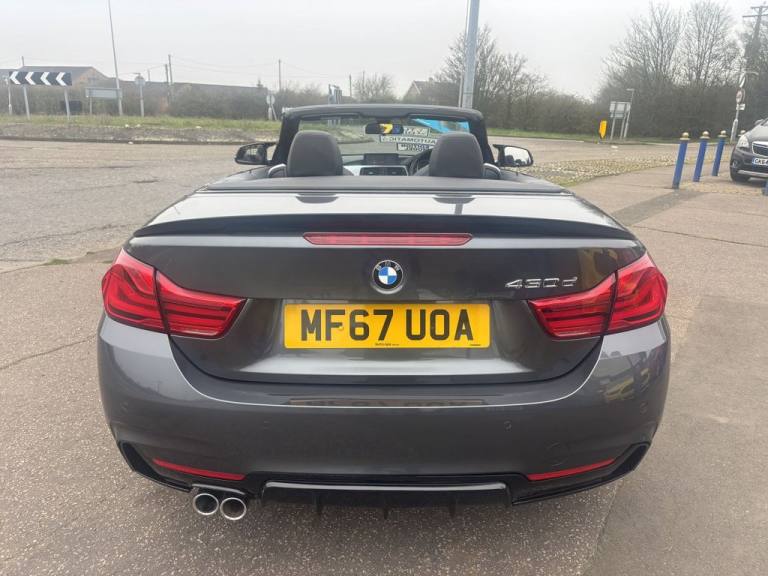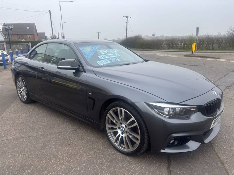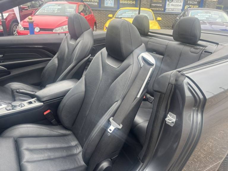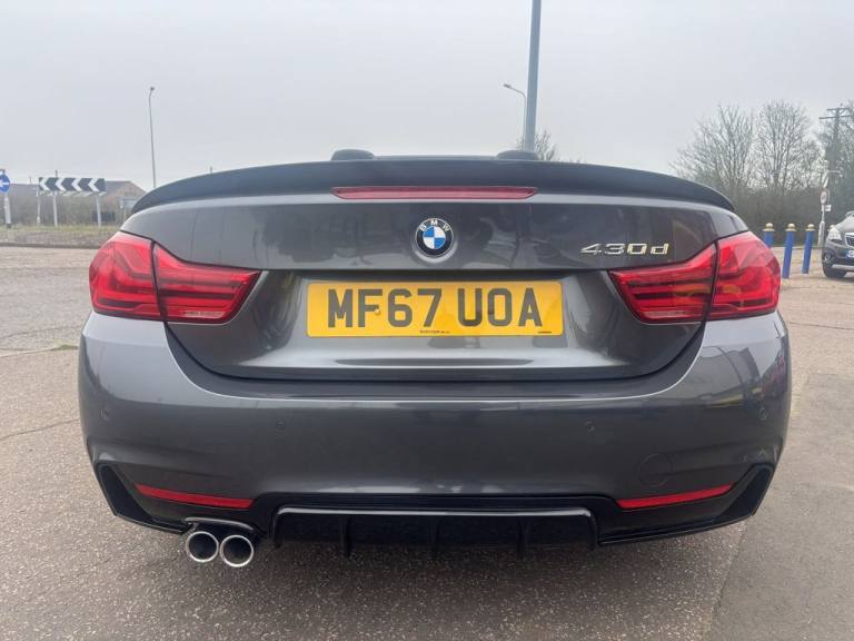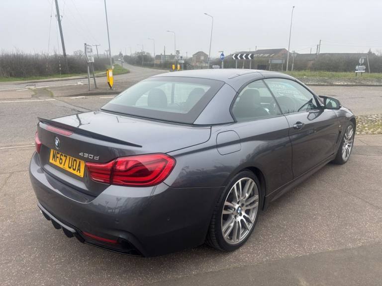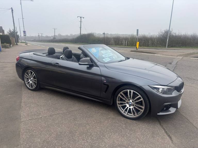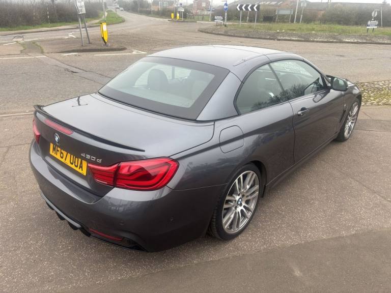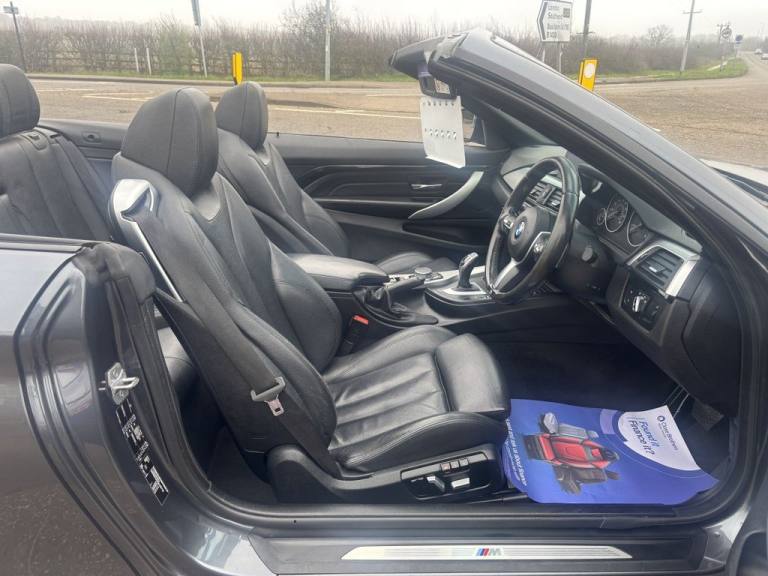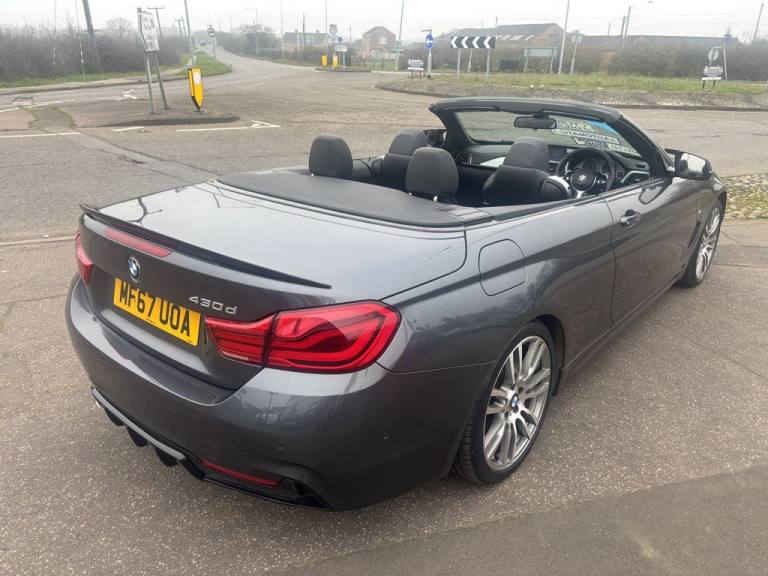 Finished in mineral grey,Turn heads with this 430d M Sport Convertible- a perfect mix of power,style and open air driving excitement,M sport styling-sporty,sharp and aggressive,Sat Nav,Excellent service history,.12V Power Socket in Front Centre Console and Passenger Footwell, 18in Alloy Wheels - M Double Spoke - 400M, 19in Alloy Wheels - M Star Spoke - 403M, 6.5in Colour Display Screen, Access to BMW Connected Plus (12 Month Subscription From New), Air Breather - Black High Gloss, Air Conditioning - Automatic with Two-Zone Control, Air Conditioning and Radio Control Panel in High Gloss Black, Airbags, Alarm System - Thatcham 1 with Remote Control and Engine Immobiliser, Ambient Lighting - Switchable BMW Classic Orange - Cold White - LED, Armrest - Front - Folding with Storage Compartment, Battery Safety Cut Off, Bluetooth Hands-Free Facility with USB Audio Interface and Audio Streaming, BMW ConnectedDrive Online Services, BMW Emergency Call, BMW TeleServices, Boot Lid Lock with Soft Close Function, Bottle Holders Integrated into Door Trim Storage Compartments - Front - Up to 1 litre, Brake Pad Wear Indicator - Front and Rear, Bumper System Front and Rear - Replaceable Deformation Elements for Impacts Up to 9mph, Central Locking Switch - Doors - Fuel Filler Cap - Luggage Compartment, Centre Console - Panel Highlight in Chrome, Check Control Warning System for Monitoring of Lights and Door-Luggage Compartment Open Warning, Child Seat ISOFIX Attachment - Rear with Passenger Airbag Deactivation, Condition Based Service, Crash Sensor, Cruise Control with Brake Function, Cup Holders - Two in Front with Sliding Lid, DAB Digital Radio, Dakota Leather - Black with Black Interior, Direction Indicator - Side Repeaters - Integrated in Exterior Mirrors, Direction Indicator Lenses - LED, Door Sill Finishers - M Designation, DSC - Dynamic Stability Control Plus, Dynamic Brake Lights, Electric Windows - Front with Open-Close Fingertip Control - Anti-Trap Facility and Comfort Closing Function, EPS - Electric Power Steering, Exhaust Tailpipes - Dual Left - with Chrome Finisher, Extended Lighting, Exterior Mirrors - Heated - Electrically Adjustable, Exterior Parts in Body Colour, Exterior Trim - High-Gloss Shadowline, First Aid Kit and Warning Triangle, Floor Mats - Velour, Full Black Panel Display, Glove Compartment, Glove Compartment - Opener with Chrome Trim, Handbrake Lever - Gear Knob in Leather, Heat Protection Glazing with Green Tint, High Level Third Brake Light, iDrive Controller - 8 Favourite Buttons, Incorrect Fuelling Protection System, Instrument Cluster, Interior Lighting - Front Centre Over Interior Mirror with Soft-Light and Rear Centre, Interior Trim - Aluminium Hex