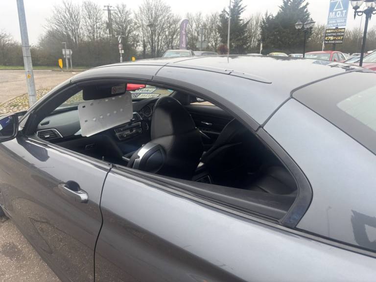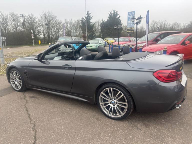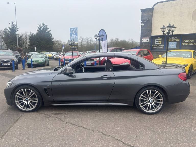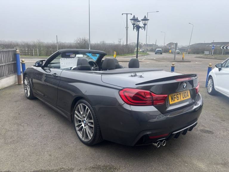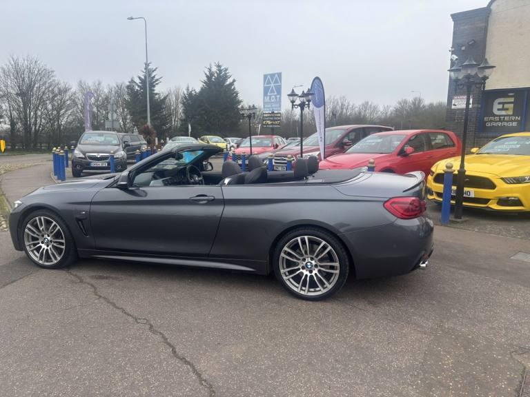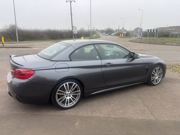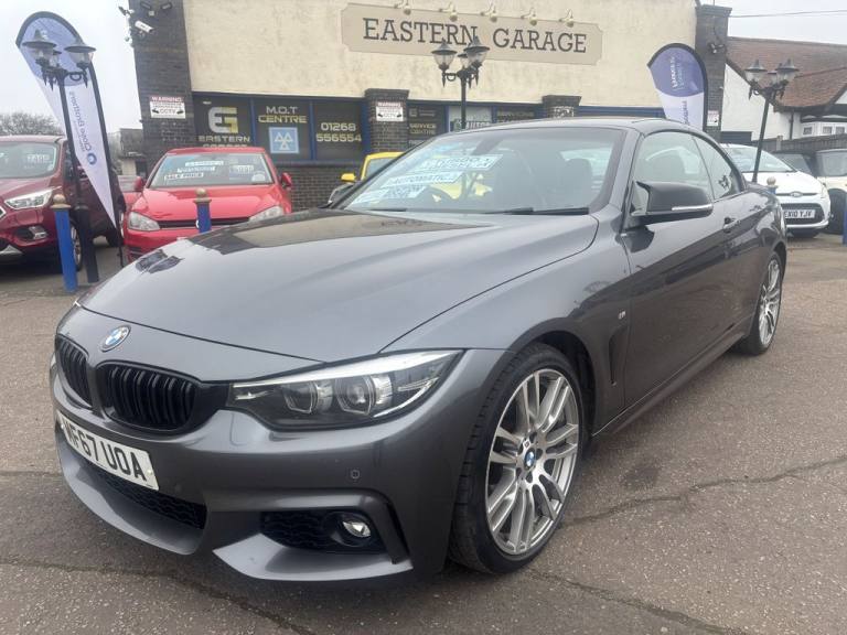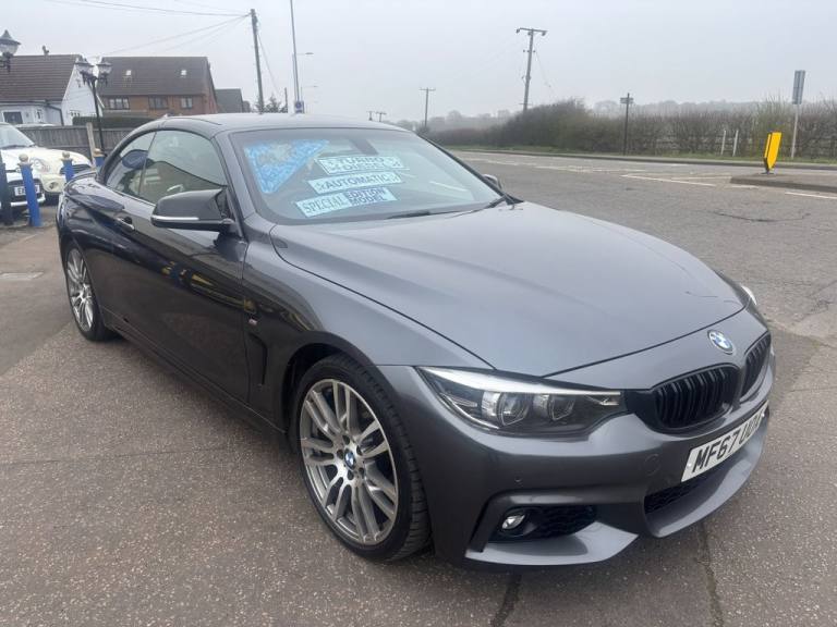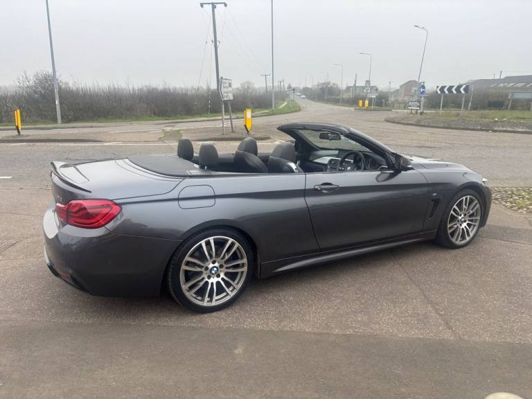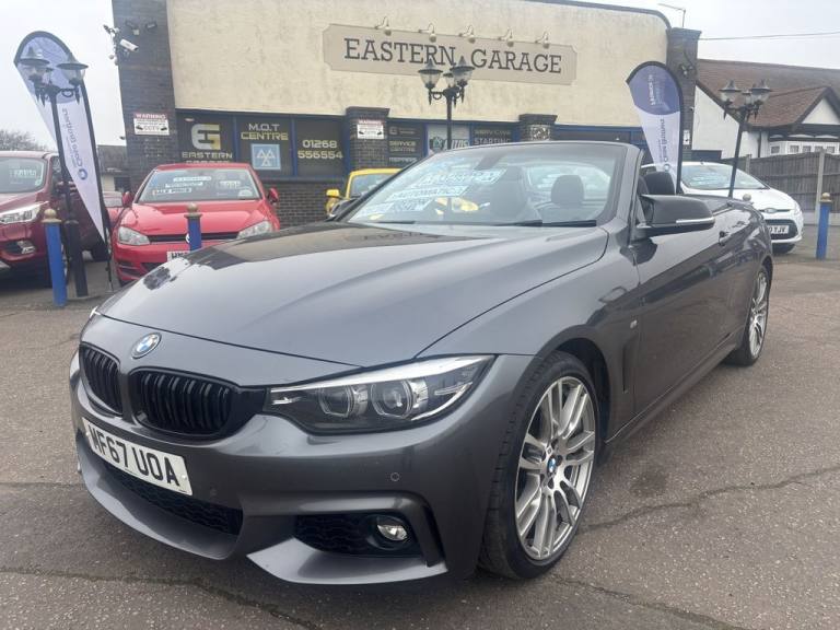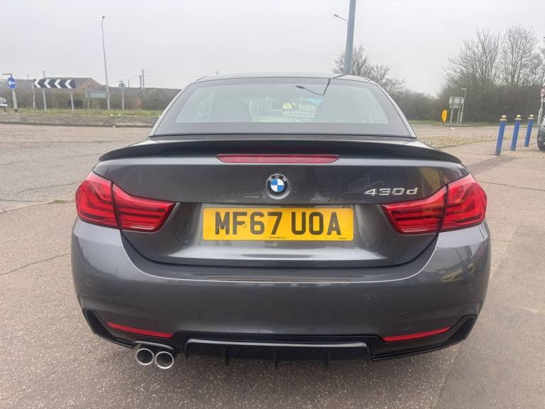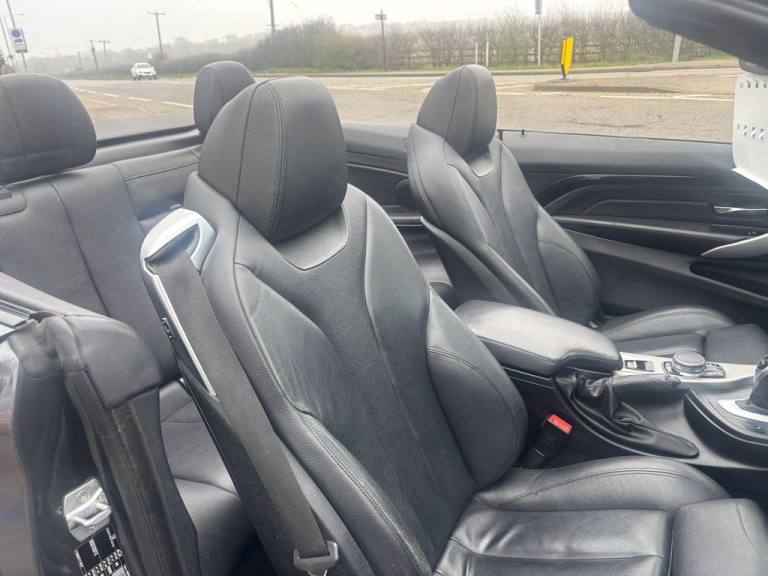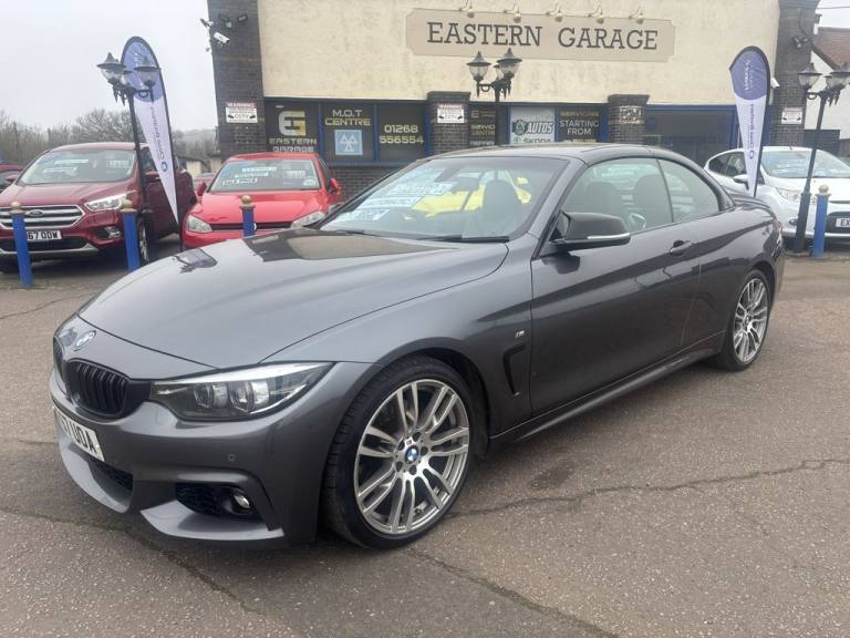 Finished in mineral grey,Turn heads with this 430d M Sport Convertible- a perfect mix of power,style and open air driving excitement,M sport styling-sporty,sharp and aggressive,Sat Nav,Excellent service history,.12V Power Socket in Front Centre Console and Passenger Footwell, 18in Alloy Wheels - M Double Spoke - 400M, 19in Alloy Wheels - M Star Spoke - 403M, 6.5in Colour Display Screen, Access to BMW Connected Plus (12 Month Subscription From New), Air Breather - Black High Gloss, Air Conditioning - Automatic with Two-Zone Control, Air Conditioning and Radio Control Panel in High Gloss Black, Airbags, Alarm System - Thatcham 1 with Remote Control and Engine Immobiliser, Ambient Lighting - Switchable BMW Classic Orange - Cold White - LED, Armrest - Front - Folding with Storage Compartment, Battery Safety Cut Off, Bluetooth Hands-Free Facility with USB Audio Interface and Audio Streaming, BMW ConnectedDrive Online Services, BMW Emergency Call, BMW TeleServices, Boot Lid Lock with Soft Close Function, Bottle Holders Integrated into Door Trim Storage Compartments - Front - Up to 1 litre, Brake Pad Wear Indicator - Front and Rear, Bumper System Front and Rear - Replaceable Deformation Elements for Impacts Up to 9mph, Central Locking Switch - Doors - Fuel Filler Cap - Luggage Compartment, Centre Console - Panel Highlight in Chrome, Check Control Warning System for Monitoring of Lights and Door-Luggage Compartment Open Warning, Child Seat ISOFIX Attachment - Rear with Passenger Airbag Deactivation, Condition Based Service, Crash Sensor, Cruise Control with Brake Function, Cup Holders - Two in Front with Sliding Lid, DAB Digital Radio, Dakota Leather - Black with Black Interior, Direction Indicator - Side Repeaters - Integrated in Exterior Mirrors, Direction Indicator Lenses - LED, Door Sill Finishers - M Designation, DSC - Dynamic Stability Control Plus, Dynamic Brake Lights, Electric Windows - Front with Open-Close Fingertip Control - Anti-Trap Facility and Comfort Closing Function, EPS - Electric Power Steering, Exhaust Tailpipes - Dual Left - with Chrome Finisher, Extended Lighting, Exterior Mirrors - Heated - Electrically Adjustable, Exterior Parts in Body Colour, Exterior Trim - High-Gloss Shadowline, First Aid Kit and Warning Triangle, Floor Mats - Velour, Full Black Panel Display, Glove Compartment, Glove Compartment - Opener with Chrome Trim, Handbrake Lever - Gear Knob in Leather, Heat Protection Glazing with Green Tint, High Level Third Brake Light, iDrive Controller - 8 Favourite Buttons, Incorrect Fuelling Protection System, Instrument Cluster, Interior Lighting - Front Centre Over Interior Mirror with Soft-Light and Rear Centre, Interior Trim - Aluminium Hex