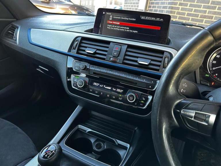 Media Package - BMW Professional,PDC - Park Distance Control - Front and Rear,Interior Comfort Package,Enhanced Bluetooth Telephone Preparation with USB Audio Interface and Voice Control,Seat Heating for Driver and Front Passenger,Automatically Dimming Rear View Mirror,Full Black Panel Display,Hexagon Cloth-Alcantara - Anthracite with Black Interior, 12V Power Socket - Centre Console, 12V Power Socket - Passenger Footwell, 18in Alloy Wheels - M Double Spoke in Ferric Grey - 461M, Active Differential Brake - ADB Sport - Electronic Differential Lock in DSC-Off Mode, Air Conditioning - Automatic - Single Zone, Airbags, Alarm System - Thatcham 1 with Remote Control and Engine Immobiliser, Ambient Lighting - Switchable BMW Classic Orange - Cold White - LED, Armrest - Front with Sliding Adjustment, Battery Age Recognition Function, Battery Safety Cut Off, Bluetooth Hands Free with USB Audio Interface, BMW ConnectedDrive Online Services, BMW ConnectedDrive Services, BMW Emergency Call, BMW Navigation System, BMW Professional Radio - Single CD and MP3, BMW TeleServices, Brake Pad Wear Indicator - Front and Rear, Bumper System Front and Rear - Replaceable Deformation Elements for Impacts Up to 9mph, Central Locking Switch - Doors - Fuel Filler Cap - Luggage Compartment, Check Control Warning System for Monitoring of Lights and Door-Luggage Compartment Open Warning, Child Proof Locking System - Rear Doors, Child Seat ISOFIX Attachment for the Two Outer Rear Seats, Condition Based Service, Crash Sensor - Activating Central Locking Release - Hazard Warning Lights - Battery Safety Cut Off - Interior Lighting, Cupholders Two with Sliding Cover and Inlay Mat, DAB Digital Radio, Direction Indicator - Side Repeaters - Integrated in Exterior Mirrors, Direction Indicator Lights - Clear Lenses, Door Sill Finishers - M Designation, Drive Performance Control - ECO PRO - Comfort - Sport - Sport Plus Modes, DSC - Dynamic Stability Control Plus, Dynamic Brake Lights, ECO PRO Mode, Electric Windows - Front and Rear with Open-Close Fingertip Control - Anti-Trap Facility and Comfort Closing Function, Exhaust Tailpipe - Chrome, Extended Storage, Exterior Mirrors Electrically Adjustable, Exterior Parts in Body Colour, Exterior Trim - High Gloss Shadowline, First Aid Kit and Warning Triangle, Floor Mats - Velour, Gearshift Lever with M Designation - Short-Shift, Glove Compartment, Glovebox - Handle with Chrome Surround, Grab Handles - Integrated in Roof Linings - Four, Handbrake and Gear Knob - Leather, Head Restraints - Rear and Folding, Headlining - Anthracite, Heat Protection Glazing with Green Tint, High Level Third Brake Light, Incorrect Fuelling Protection System, Instrument Cluster - Sports with Red Highlight, Interior Lighting - Front Centre Over Interior Mirror and Rear Centre, Interior Trim - Aluminium Hexagon with Estoril Blue Finisher, Kidney Grille - Extra Wide High Gloss Black Vertical Slats, Lashing Eyes in Luggage Compartment at Sill x2, LED Fog Lights - Front, LED Headlights, Lights-On Warning by Audio Warning Signal When Ignition is Switched Off, Locking Wheel Bolts, Luggage Compartment - Light, Luggage Compartment Access via BMW Roundel, M Aerodynamic Bodystyling, M Logo Designation Chrome - Side, M Sport Multi-Function Leather Steering Wheel - Three-Spoke, M Sport Package, M Sport Suspension, Model Designation, Multifunction Controls for Steering Wheel, Non Smokers Package, OBC - On-Board Computer, Oil Temperature Display via On-Board Computer Shown in Central Screen in Instrument Cluster, Optimum Shift Indicator, Personal Profile, Power Steering - Electric, Rain Sensor with Automatic Headlight Activation, Real Time Traffic Information, Rear Fog Light - Offside, Rear Seat Headrests - Outer Headrests Folding, Rear Window Aerial, Remote Control Including Integrated Key - 2, Remote Control with Integrated Key with Insert in Blue, Reversing Light in Rear Cluster - Nearside, Run Flat Tyres, Seat Belt Security Check for Driver and Fr.This 2017 BMW 1 Series 118i M Sport is presented with a clear vehicle history check, offering peace of mind for its next owner. This Euro 6 compliant model boasts a responsive 1.5 litre petrol engine, delivering an engaging driving experience. The M Sport trim enhances its sporty appeal, while the interior offers a range of desirable features. These include seat heating for both the driver and front passenger, ensuring comfort in all conditions. Parking is made simpler with front and rear Park Distance Control, and the enhanced Bluetooth telephone preparation with USB audio interface and voice control keeps you connected. Inside, you'll also find an Interior Comfort Package with climate control and a striking full black panel display.The BMW 1 Series 118i M Sport offers a compelling blend of performance and practicality. Its acceleration from 0 to 62 miles per hour in just 8.5 seconds demonstrates its sprightly nature, making it a lively choice for everyday driving. This performance, combined