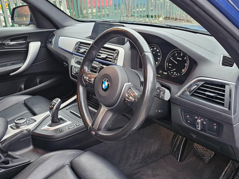 This 2017 BMW 1 Series 2.0 120d M Sport Hatchback has covered 75067 miles and is powered by a diesel engine. With 5 seats and 5 doors, this ULEZ compliant vehicle comes with an MOT valid until 05/12/2026. In a sleek Hatchback body style, it boasts features such as Estoril Blue exterior, Sun Protection Glazing, and Cruise Control with Brake Function. Equipped with PDC - Park Distance Control - Front and Rear, as well as Enhanced Bluetooth Telephone Preparation with USB Audio Interface and Voice Control, this car is both stylish and practical. Whether you're cruising through the city or hitting the open road, this 1 Series offers both performance and comfort. UK delivery available. Part exchange welcome. Extended warranty options available. Trading standards approved dealership. AA standards approved dealership. Autotrader highly rated dealership. Features Include: , 12v power socket - centre console, 12v power socket - passenger footwell, bmw connecteddrive online services, bmw connecteddrive services, bmw emergency call, bmw navigation system, bmw professional radio - single cd and mp3, bmw teleservices, bluetooth hands free with usb audio interface, dab digital radio, real time traffic information, rear window aerial, shark fin, 18in alloy wheels - m double spoke in ferric grey - 461m, direction indicator - side repeaters - integrated in exterior mirrors, direction indicator lights - clear lenses, electric windows - front and rear with open-close fingertip control - anti-trap facility and comfort closing function, exhaust tailpipe - chrome, exterior mirrors electrically adjustable, exterior parts in body colour, exterior trim - high gloss shadowline, heat protection glazing with green tint, kidney grille - extra wide high gloss black vertical slats, locking wheel bolts, m aerodynamic bodystyling, m logo designation chrome - side, m sport package, model designation, rear fog light - offside, reversing light in rear cluster - nearside, run flat tyres, tyres - reduced rolling resistance, active differential brake - adb sport - electronic differential lock in dsc-off mode, airbags, alarm system - thatcham 1 with remote control and engine immobiliser, battery safety cut off, bumper system front and rear - replaceable deformation elements for impacts up to 9mph, child proof locking system - rear doors, child seat isofix attachment for the two outer rear seats, crash sensor - activating central locking release - hazard warning lights - battery safety cut