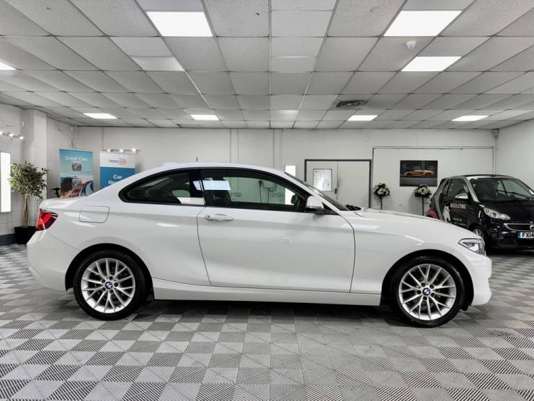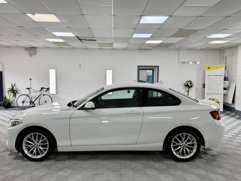 Lovely BMW 2 Series Coupe, Finished In Metallic Alphine White With Contrasting Black interior. Vehicle Comes With Service History Including A New Service, A New 12 Months MOT And 6 Months Nation Wide Warranty. Finance Arraged .12V Power Socket - Centre Console, 12V Power Socket - Passenger Footwell, 17in Alloy Wheels - Light Y Spoke - 380, 3.5mm Auxiliary Input Point for Auxiliary Playing Devices, Active Differential Brake - ADB Sport - Electronic Differential Lock in DSC-Off Mode, Air Conditioning - Automatic - Single Zone, Airbags, Alarm System - Thatcham 1 with Remote Control and Engine Immobiliser, Armrest - Front with Sliding Adjustment, BMW ConnectedDrive Online Services, BMW Emergency Call, BMW Navigation, BMW Professional Radio with Single CD Player - with MP3 Playback Compatibility, BMW TeleServices, Battery Age Recognition Function, Battery Safety Cut Off, Bluetooth Hands-Free Facility with USB Audio Interface and Audio Streaming, Brake Pad Wear Indicator, Bumper System - Front and Rear, Central Locking Switch - Doors - Fuel Filler Cap - Luggage Compartment, Check Control Warning System for Monitoring of Lights and Door-Luggage Compartment Open Warning, Child Seat ISOFIX Attachment for the Two Outer Rear Seats, Coat Hooks - Integrated into Rear of B Pillar, Condition Based Service, Crash Sensor, Cup Holders x2, DAB Digital Radio, DSC - Dynamic Stability Control Plus, Daytime Driving Lights, Direction Indicator - Side Repeaters - Integrated in Exterior Mirrors, Direction Indicator Lights - Clear Lenses, Door Mirrors - Electric and Heated, Door Sill Finishers - BMW Designation - Front - Black, Drive Performance Control with ECO PRO - Comfort and Sport Modes, Dynamic Brake Lights, ECO PRO Mode, EPS - Electric Power Steering, Electric Windows - Front and Rear with Open-Close Fingertip Control - Anti-Trap Facility and Comfort Closing Function, Engine Cover with BMW Roundel and TwinPower Turbo Designation, Exhaust Tailpipe - Chrome - Single - Round - Left, Exterior Parts in Body Colour, First Aid Kit and Warning Triangle, Floor Mats - Velour, Front Fog Lights, Glove Box, Halogen Headlights, Handbrake Lever and Gear Lever in Leather, Heat Protection Glazing with Green Tint, High Level Third Brake Light, Instrument Cluster, Interior Lighting - Front Centre Over Interior Mirror and Rear Centre, Interior Trim - Satin Silver, Kidney Grille - Chrome with Black Vertical Bars, LED Rear Light Bars, Lashing Eyes in Luggage Compartment at Sill x2, Lights-On Warning by Audio Warning Signal When Ignition is Switched Off, Locking Wheel Bolts, Luggage Compartment - Light, Luggage Compartment Access via BMW Roundel, Model Designation, Multifunction Controls for Steering Wheel, OBC - On-Boar
