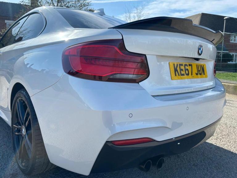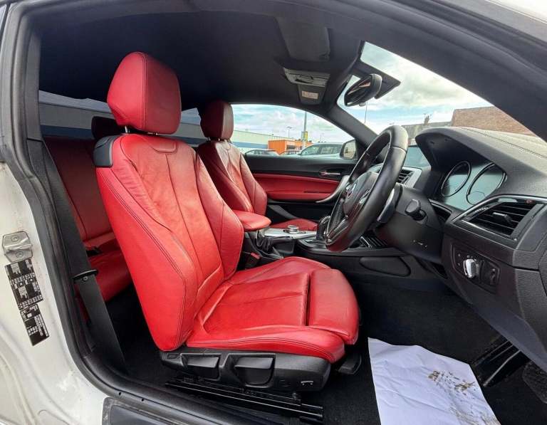 Mot till:20/09/2026. full can be arranged, 10 service stamps from BMW, bmw uk and 2 former OWNERS FROM NEW, led white side lights, cruise control , stop start air-conditioning automatic headlights front and rear fog light, advanced technology, multimedia connectivity aux USB Bluetooth, parking sensors, This 2017 BMW 2 Series 220i M Sport boasts a full dealership service history and a clear vehicle history check, offering peace of mind for its next owner. This stylish coupe features the desirable M Sport trim, powered by a 2.0 litre Euro 6 compliant petrol engine. Inside, you'll find the Interior Comfort Package, complete with climate control, and the M Sport Plus Package, which includes a premium branded sound system. For convenience, this model is equipped with a reversing assist camera and parking assistance, alongside enhanced Bluetooth telephone preparation with USB audio interface and voice control, all managed through the Media Package BMW Professional. This BMW 2 Series 220i M Sport offers excellent efficiency, achieving a notable 48 miles per gallon, which indicates it is more economical than many similar vehicles. Furthermore, its low insurance group and low CO2 emissions highlight its cost effectiveness and environmental consideration compared to other cars in its class. stock code:107014, 110gbp doc fees applies, low finance rates available on our newer cars in house. Specification information is supplied by CAP,HPI and may vary to the actual car.