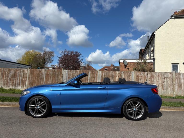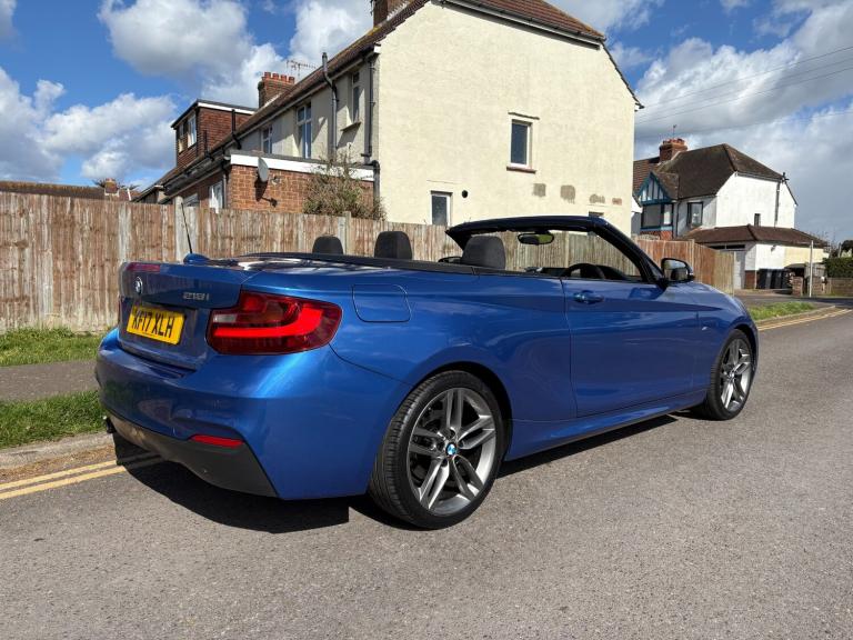 (Viewings strictly by appointment only) BMW 218i M Sport Auto Convertible 56k Miles 2017-17, 3 Former Keepers, 2 Keys, New MOT running through to 1st April 2027 with no advisories, 4 New Tyres, Full Service History - Oil & Air Filter Service just carried out now at 56k Miles, All 4 Alloys Refurbished and unmarked, Sat Nav, Bluetooth, Auto Lights, DAB Radio, Parking Sensors, Remote Central Locking, Electric Windows & Mirrors, Climate Control, Multiple Air Bags, Electric Power Folding Roof, ULEZ Compliant, Drives Beautifully, Good Condition, HPI Clear £12,995
