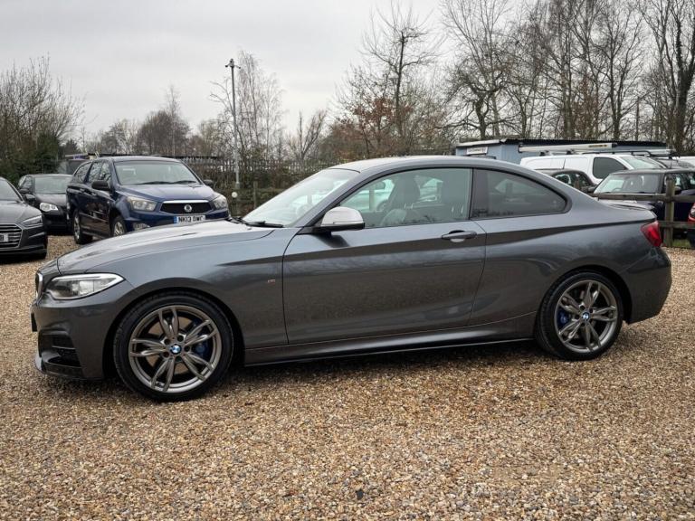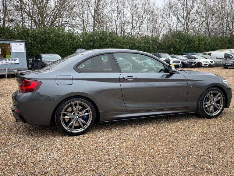 This 2017 BMW 2 Series M240i offers an exceptional combination of performance and economy with its remarkably low mileage of just 49,000 miles. Powered by a potent 3.0 litre petrol engine, this Euro 6 compliant model delivers exhilarating acceleration, reaching 0 to 62mph in a swift 4.6 seconds. Inside, you'll find the desirable Media Package with BMW Professional, heated seats for both driver and front passenger, and a premium Harman Kardon loudspeaker system for an immersive audio experience. The Driver Comfort Package, including front and rear parking sensors, makes manoeuvring effortless. Beyond its impressive performance, this M240i stands out with its excellent fuel economy of 40 mpg and low CO2 emissions, making it a more economical choice than many comparable vehicles. Its low insurance group rating further enhances its appeal, offering peace of mind and reduced running costs. This BMW 2 Series M240i represents a compelling package for those seeking a sporty yet practical and efficient driving experience. GOOD SERVICE HISTORY (RECENT FULL SERVICE), 2 KEYS & MOT UNTIL SEPT 26 (NO ADVISORIES) WELL LOOKED AFTER EXAMPLE!