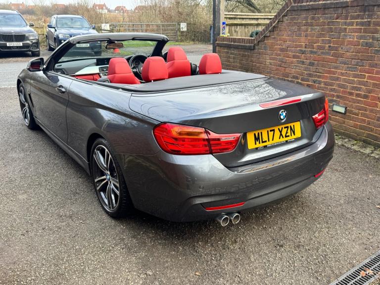 Direct Car Sales are excited to offer a 2017 BMW 4 SERIES for sale. This grey vehicle is a diesel model, with a 1995cc engine. The car has a great service history and has had only two former keepers. The vehicle is equipped with enhanced Bluetooth preparation, including USB connectivity, and a Harman Kardon sound system, providing a high-quality audio experience. The M Sport Plus package adds a sporty touch, while the Wind Deflector and Convertible Comfort Package enhance the driving experience. The car also features heated seats and a heated steering wheel, as well as a Warm Air Collar for added comfort.The interior boasts coral red leather seats, and the exterior features Mineral Grey Metallic paint. The M Sport braking system provides excellent stopping power. We offer low-rate finance options and part-exchange is welcome. The vehicle comes with a three-month warranty for added peace of mind. If you're looking for a luxury driving experience, this BMW 4 SERIES is definitely worth considering.